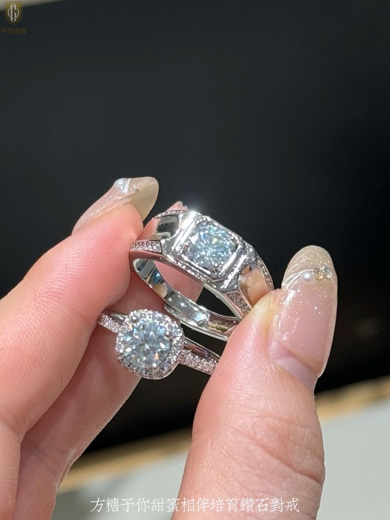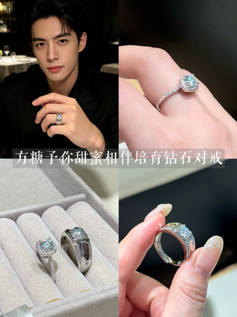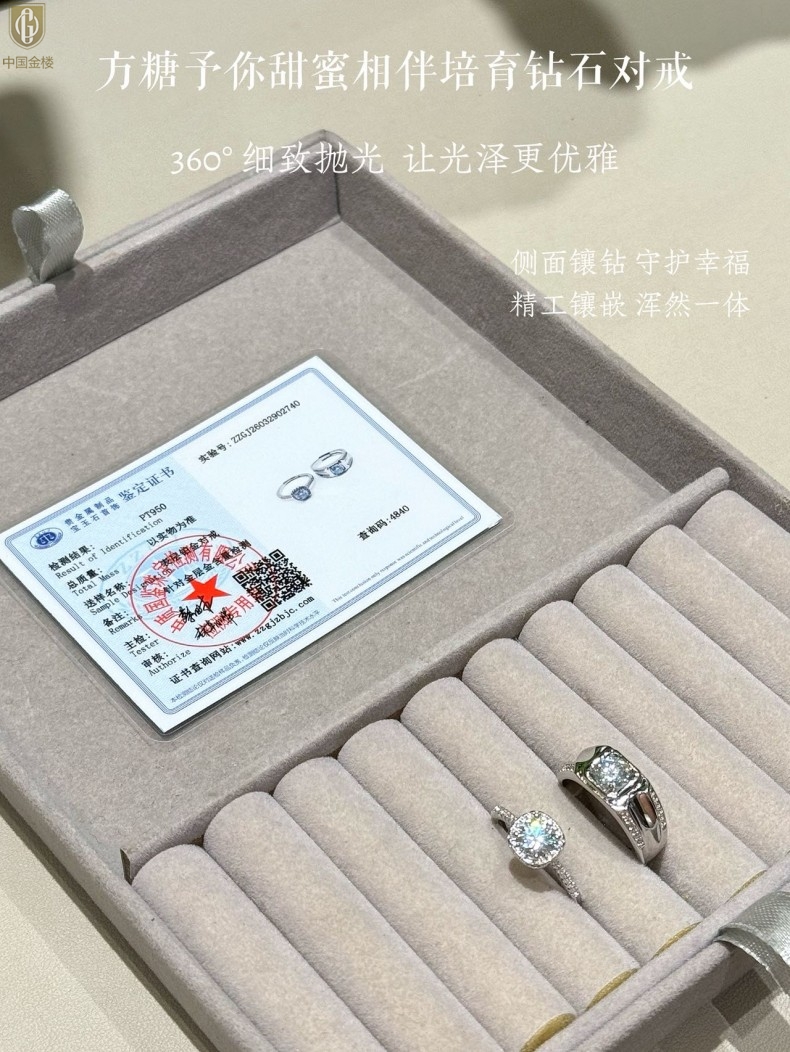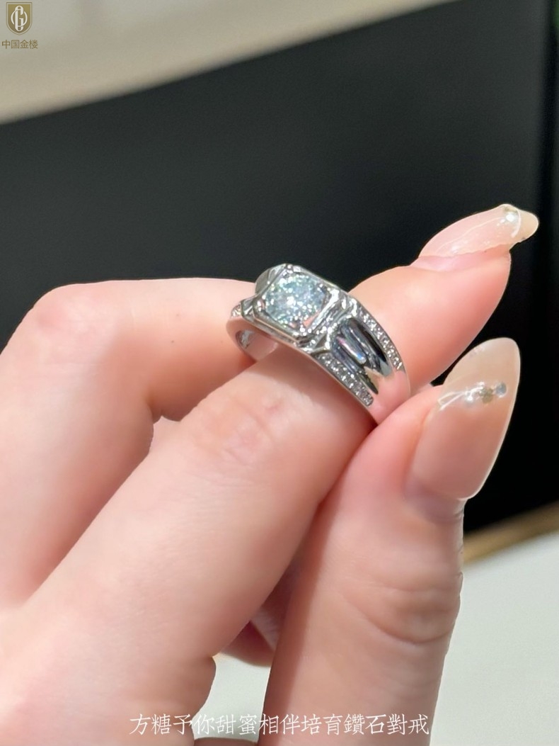 【品名】中国金楼方糖予你甜蜜相伴培育钻石对戒