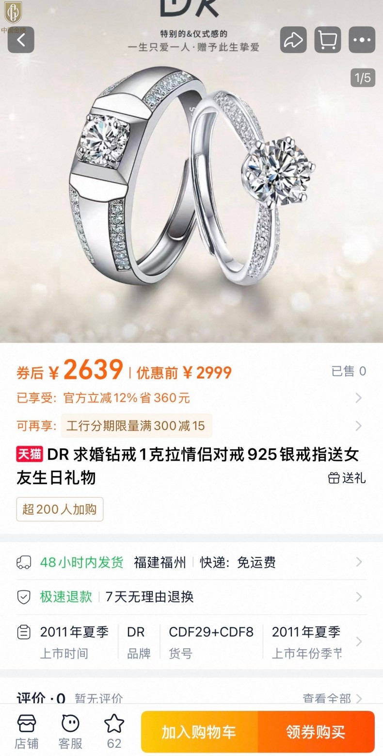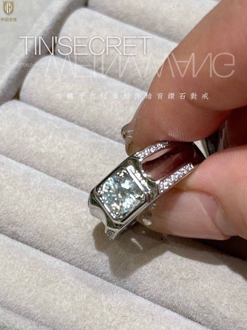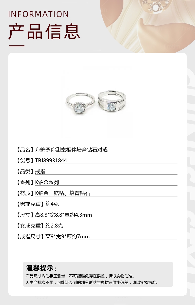 【品名】中国金楼方糖予你甜蜜相伴培育钻石对戒