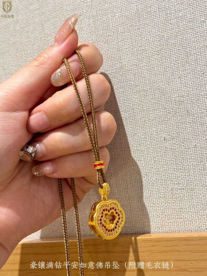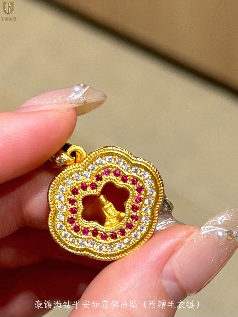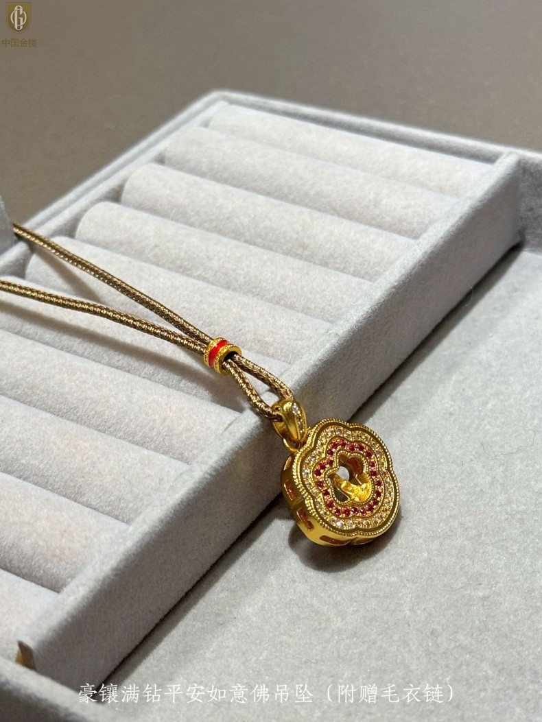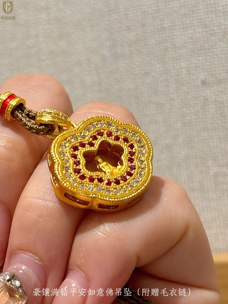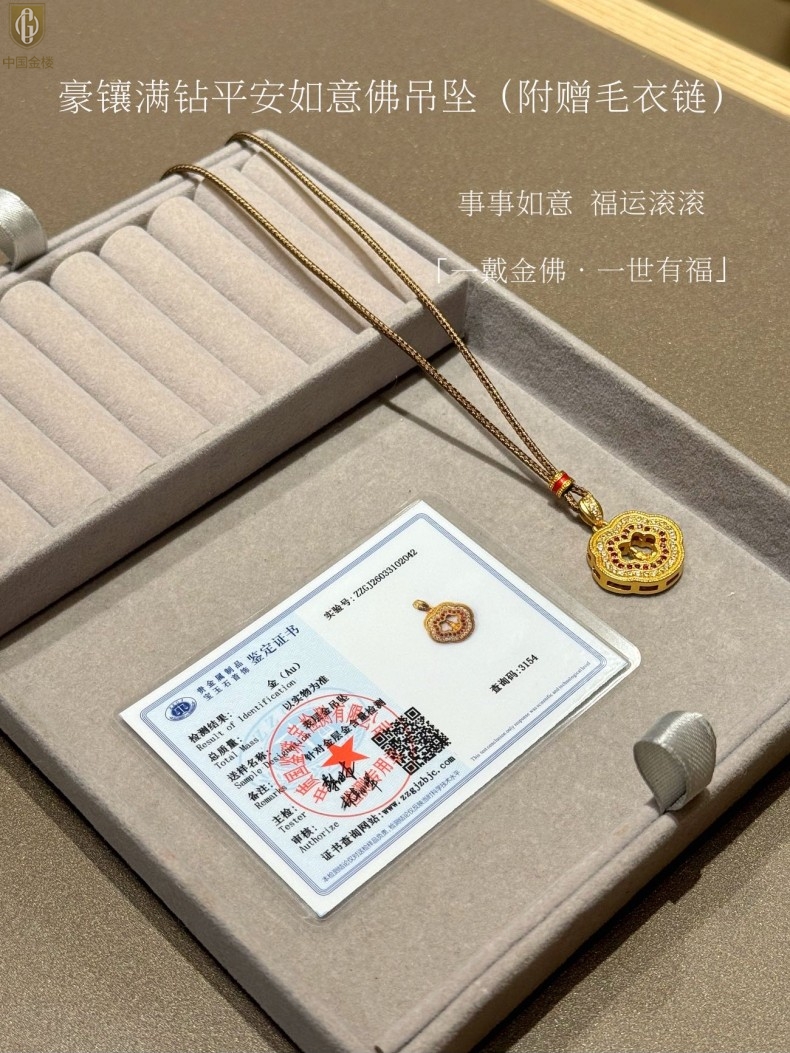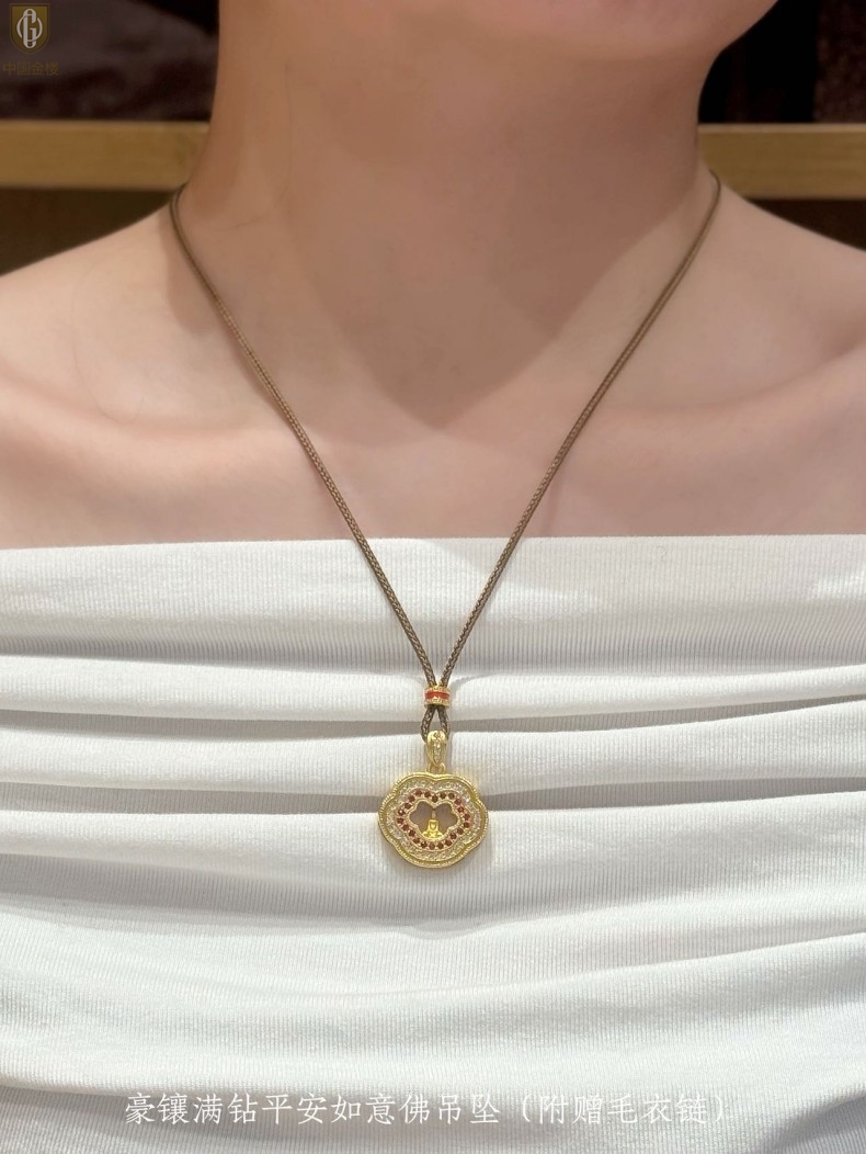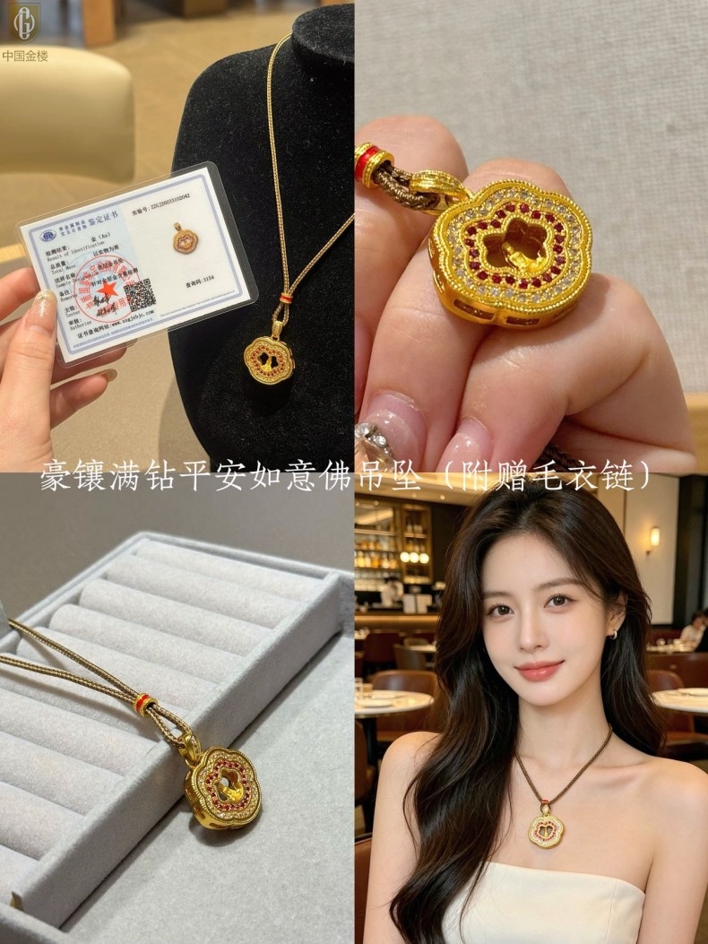 【品名】中国金楼豪镶满钻平安如意佛吊坠(附赠毛衣链)