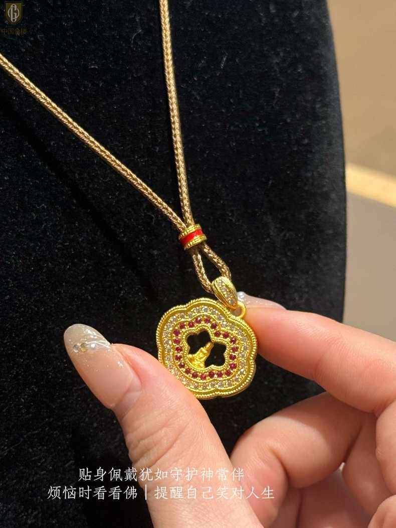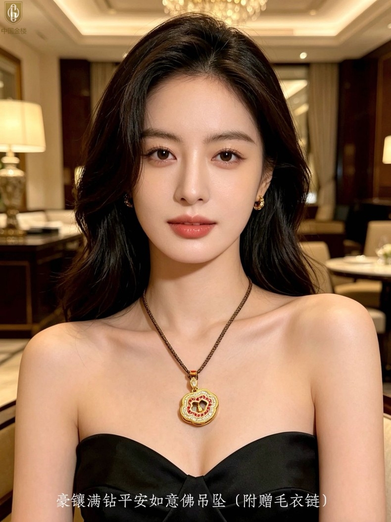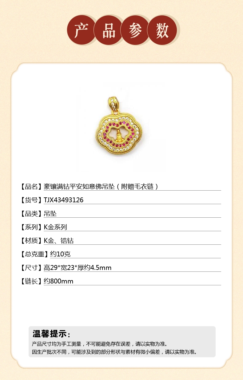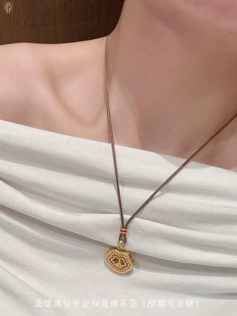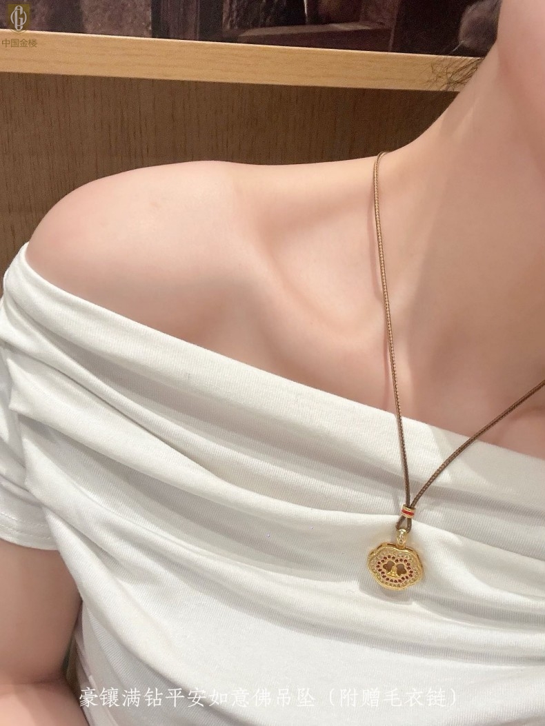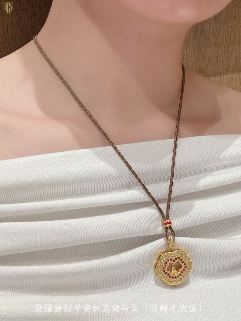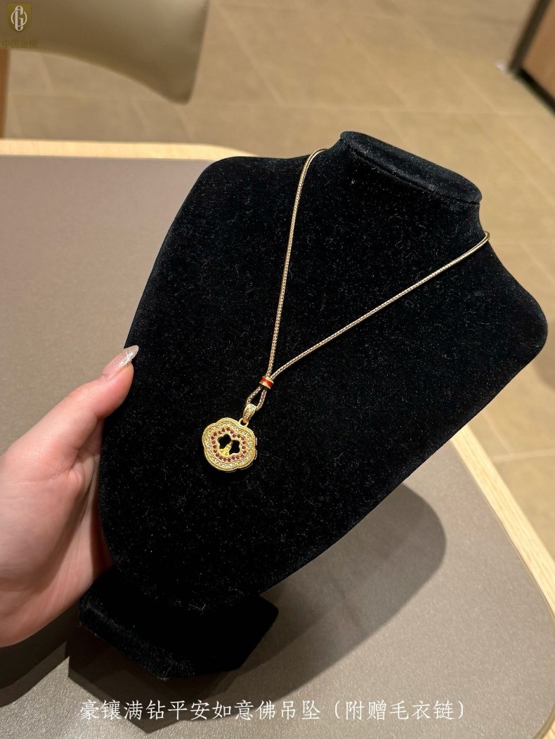 【品名】中国金楼豪镶满钻平安如意佛吊坠(附赠毛衣链)