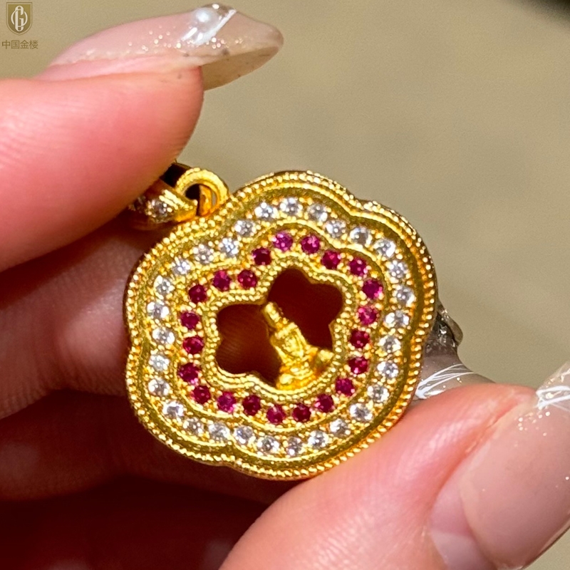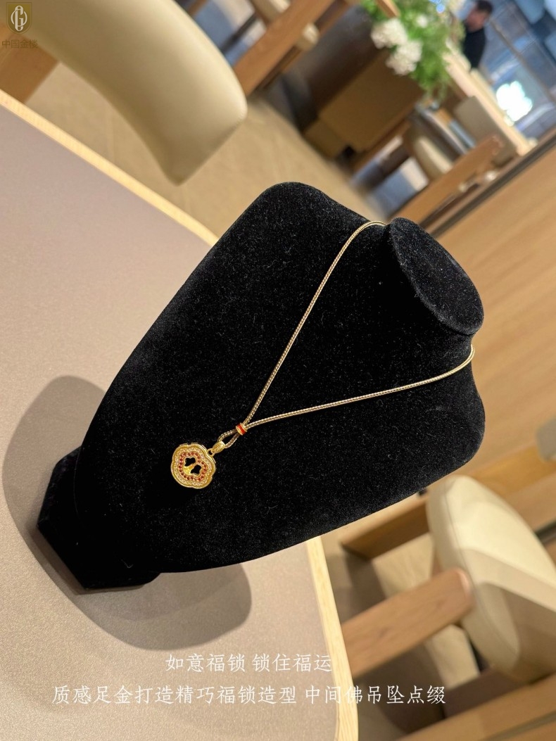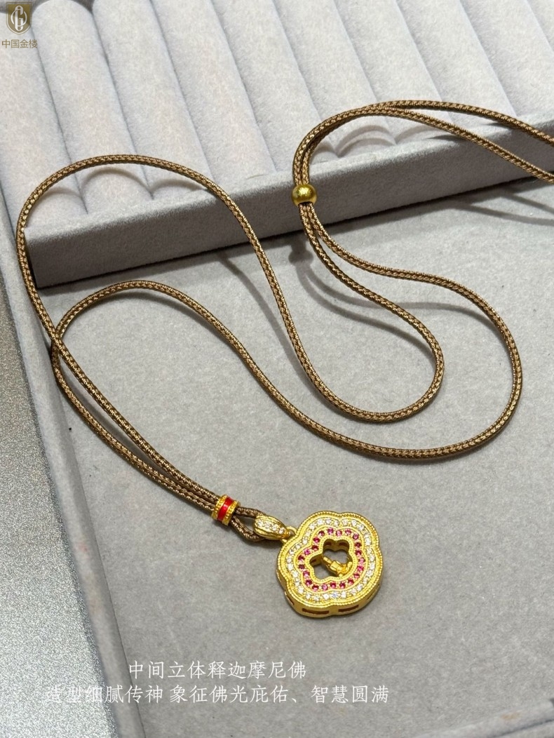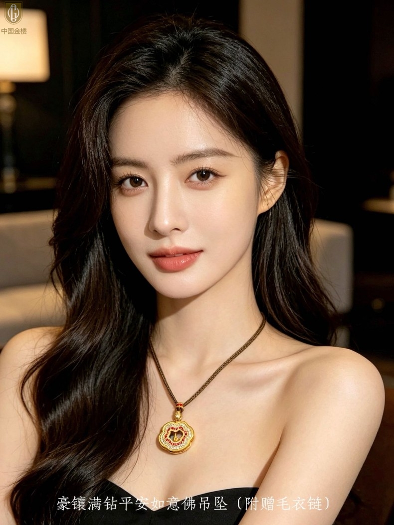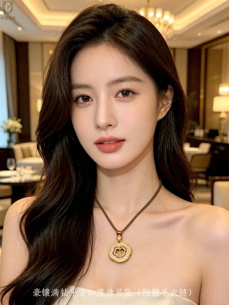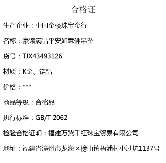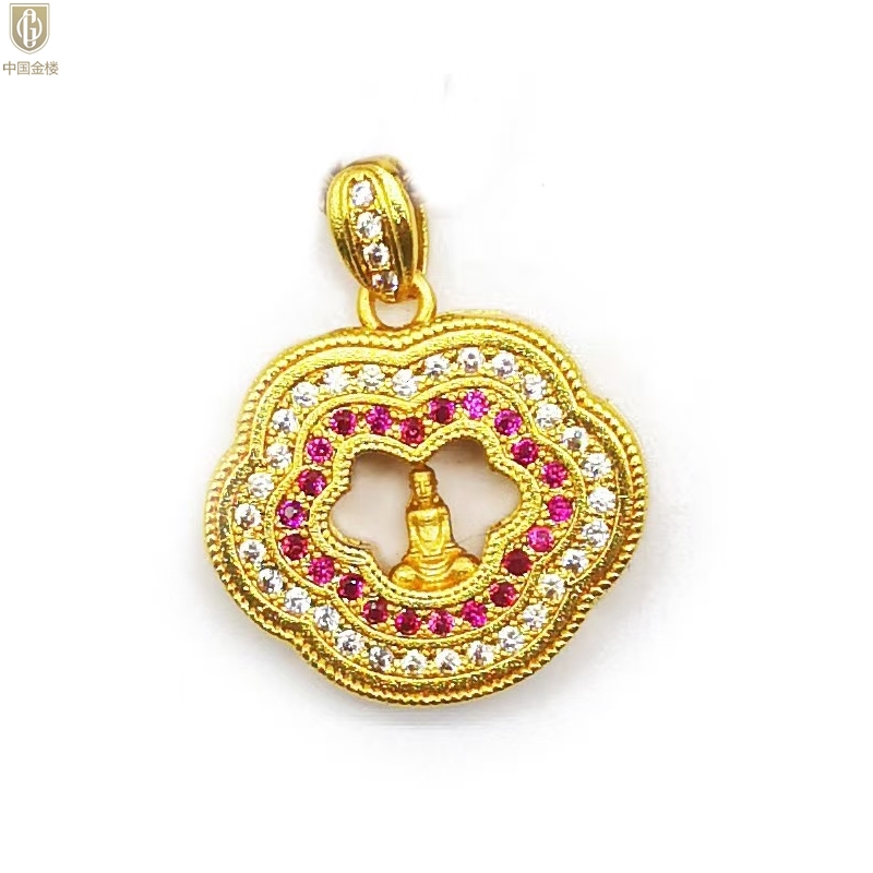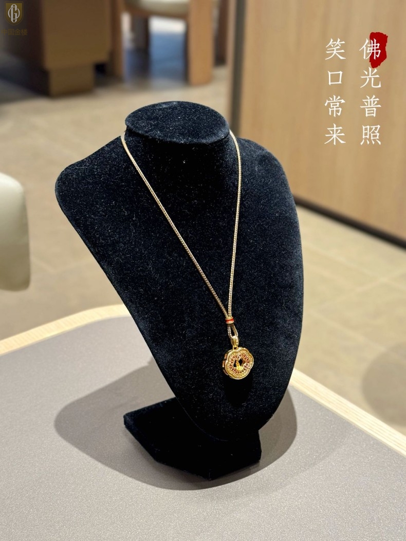 【品名】中国金楼豪镶满钻平安如意佛吊坠(附赠毛衣链)