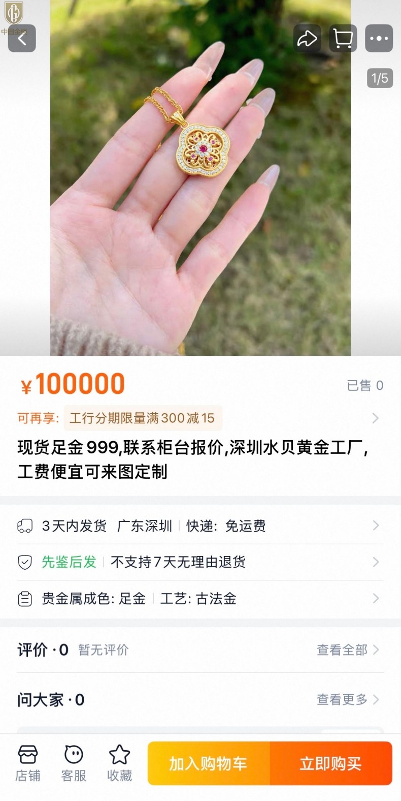 重要提醒:珠宝首饰是贵重货品,务必要求当场签收!!!