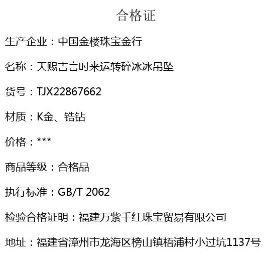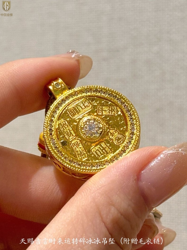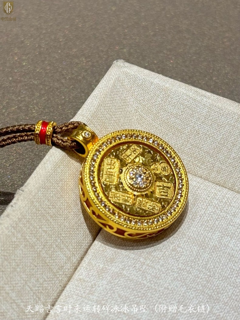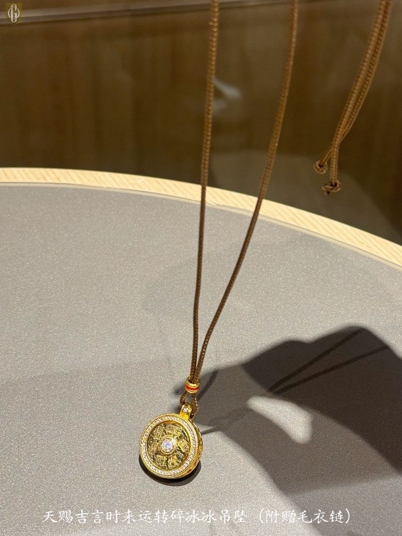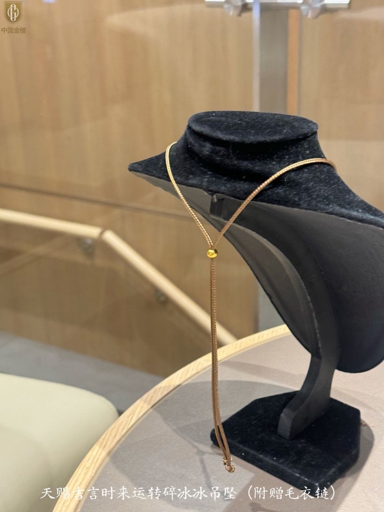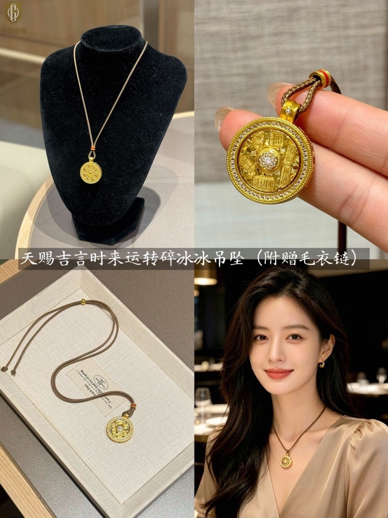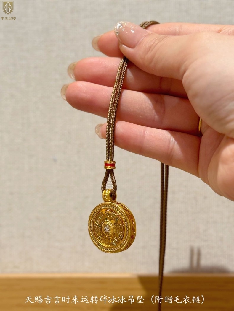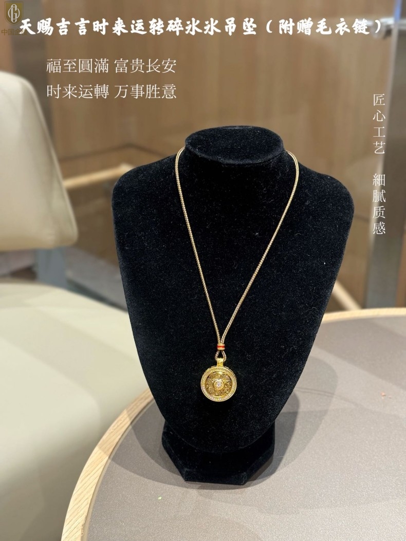 【品名】中国金楼天赐吉言时来运转碎冰冰吊坠(附赠毛衣链)