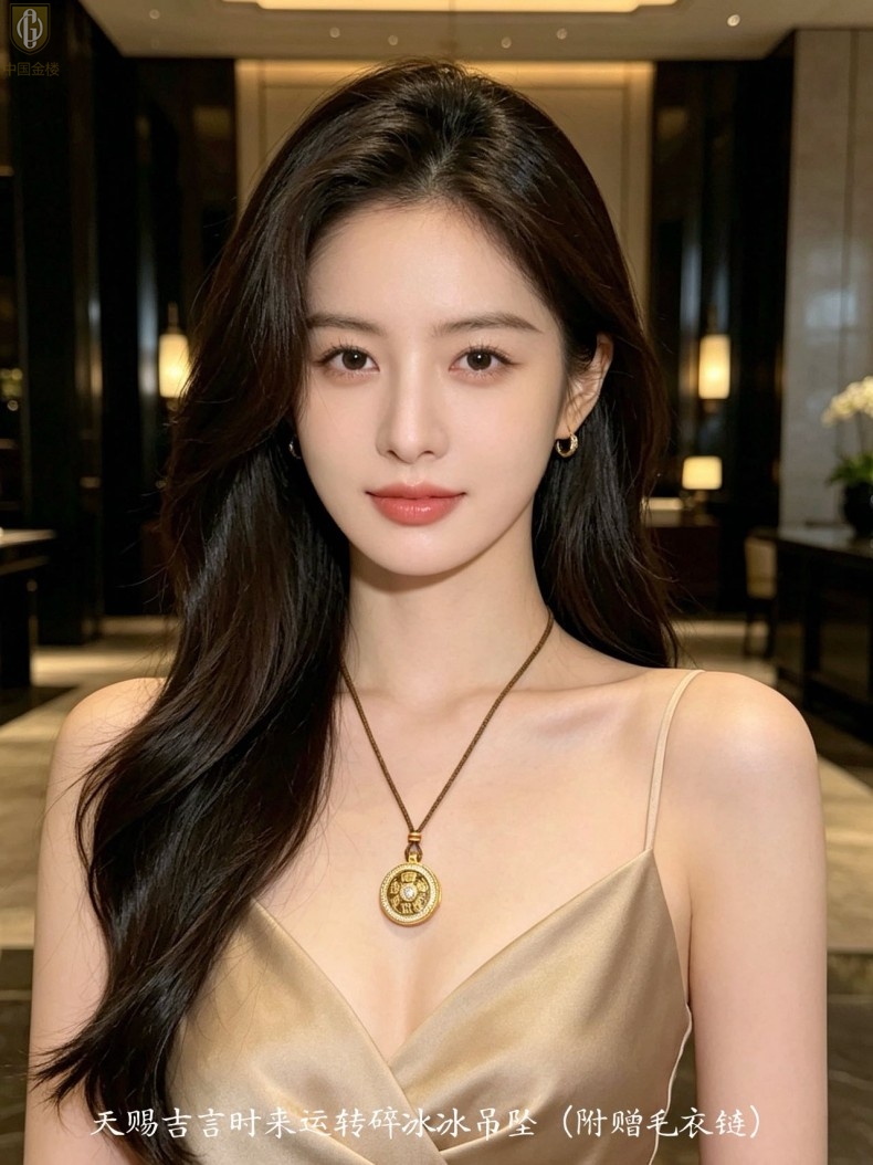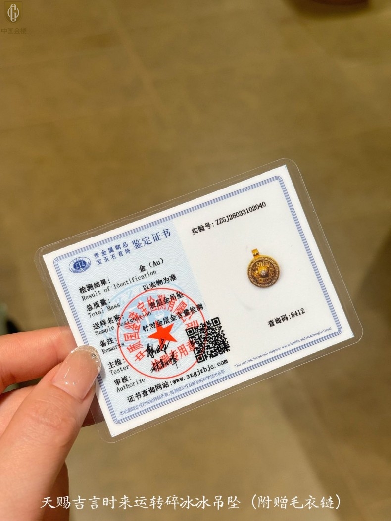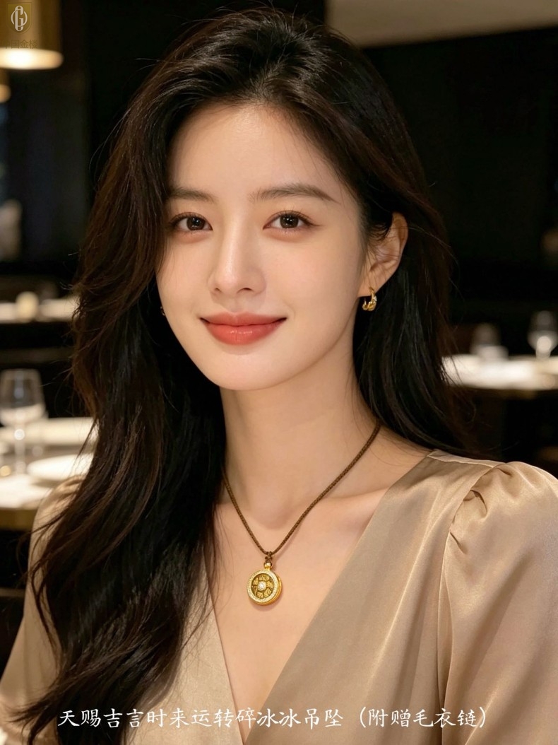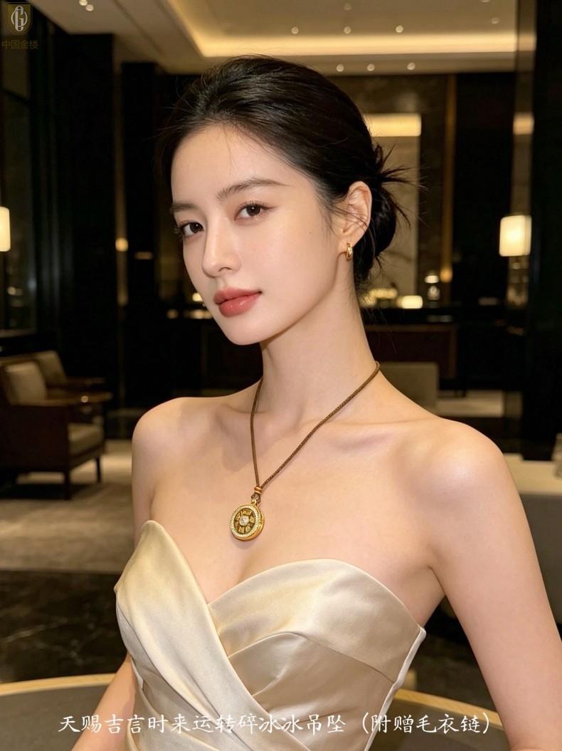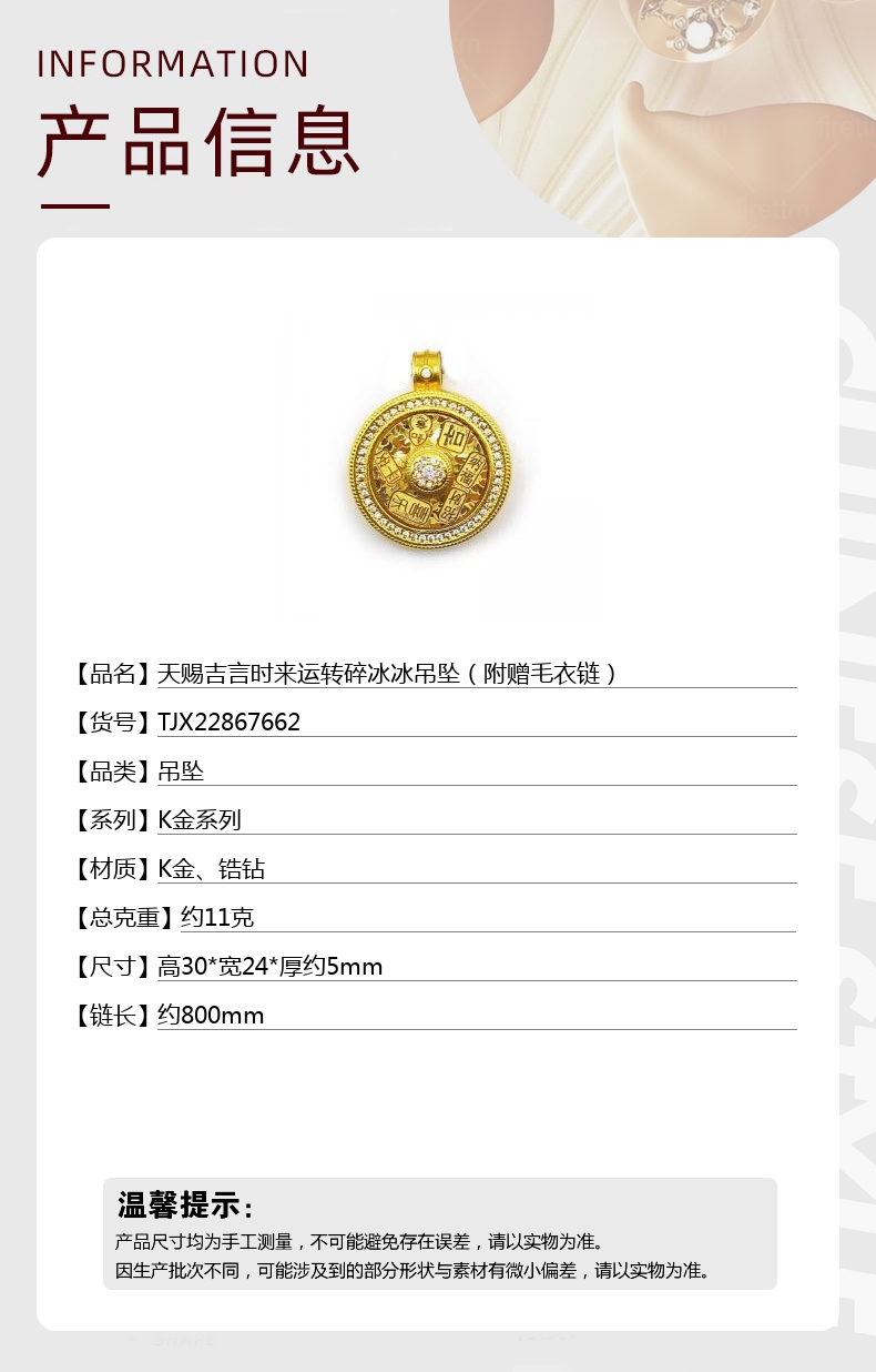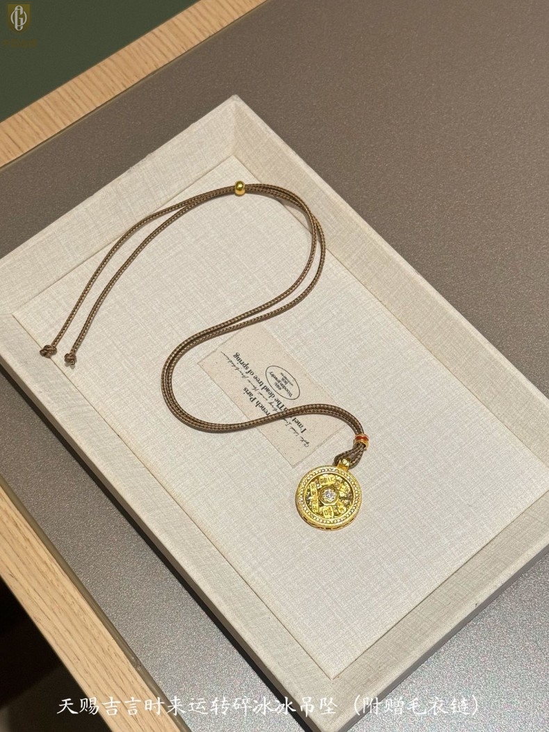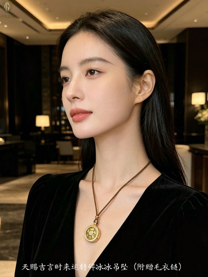 【品名】中国金楼天赐吉言时来运转碎冰冰吊坠(附赠毛衣链)