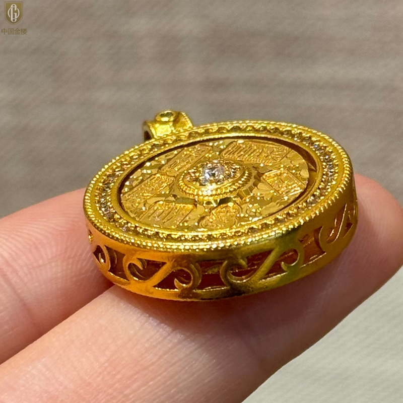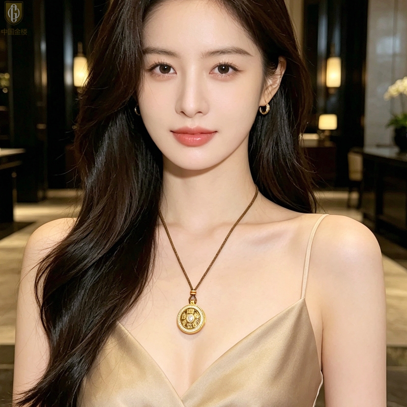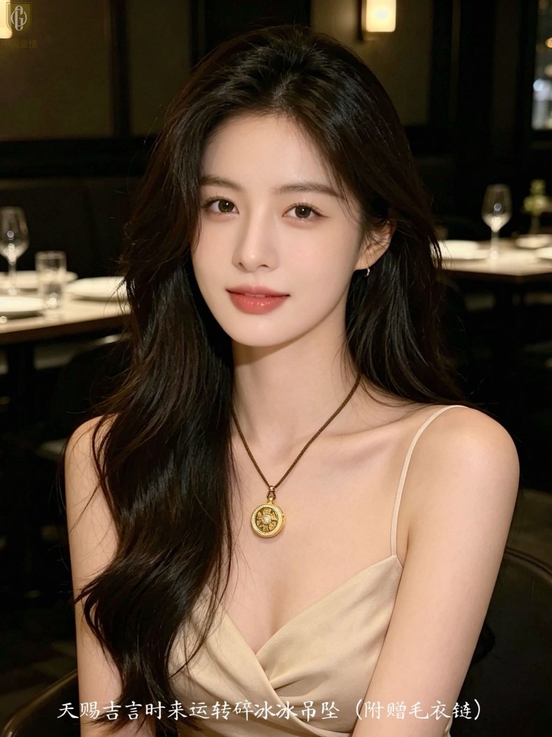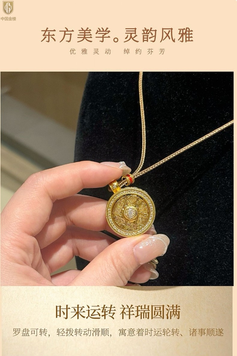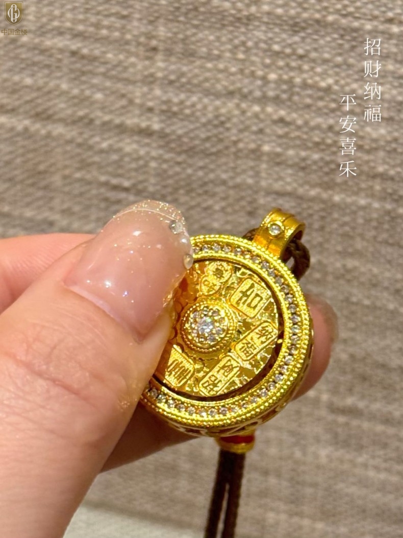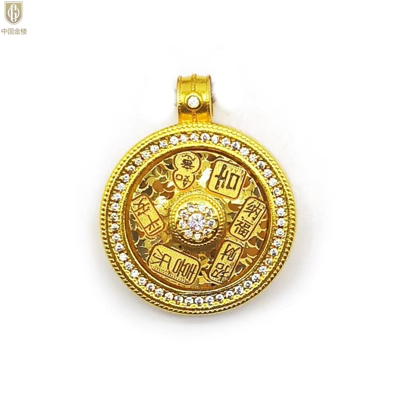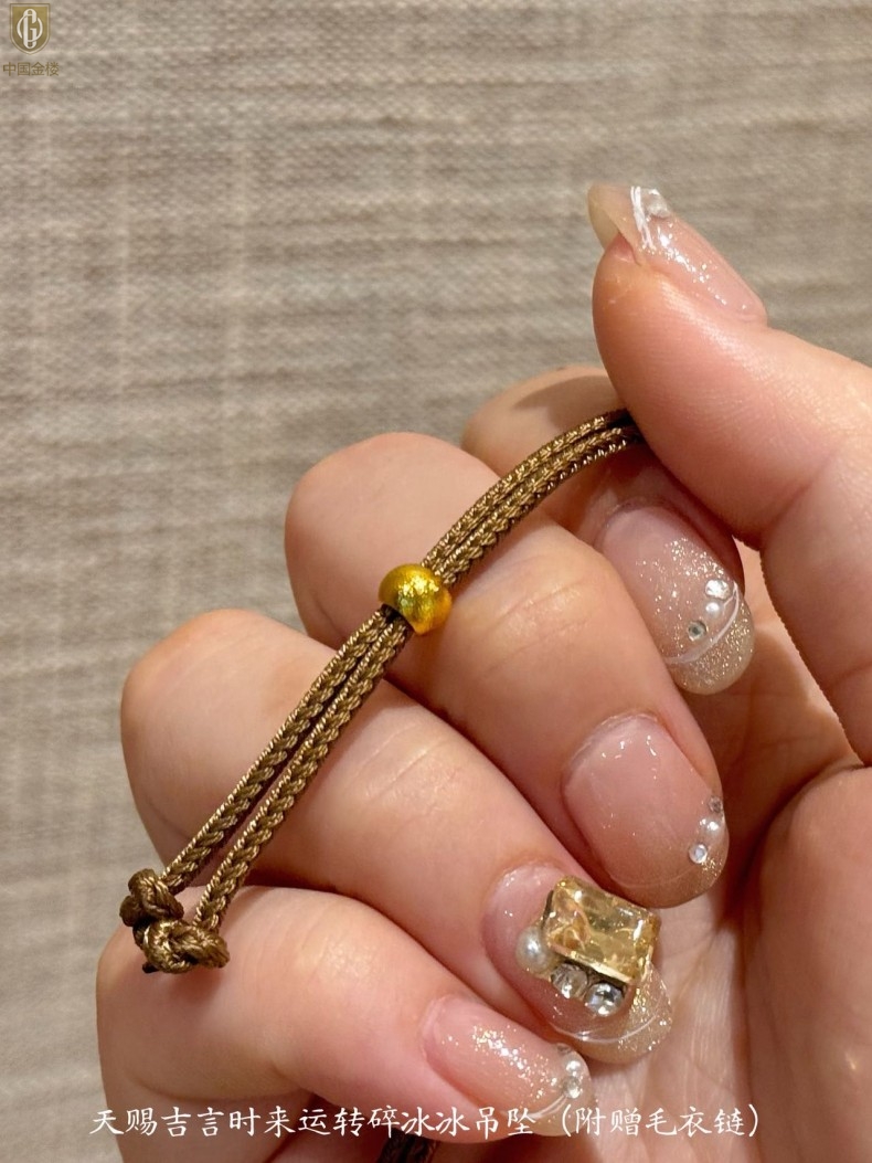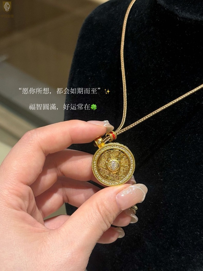 【品名】中国金楼天赐吉言时来运转碎冰冰吊坠(附赠毛衣链)