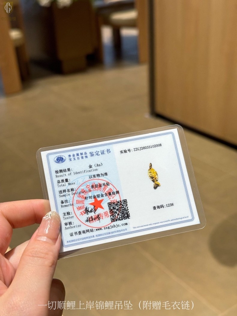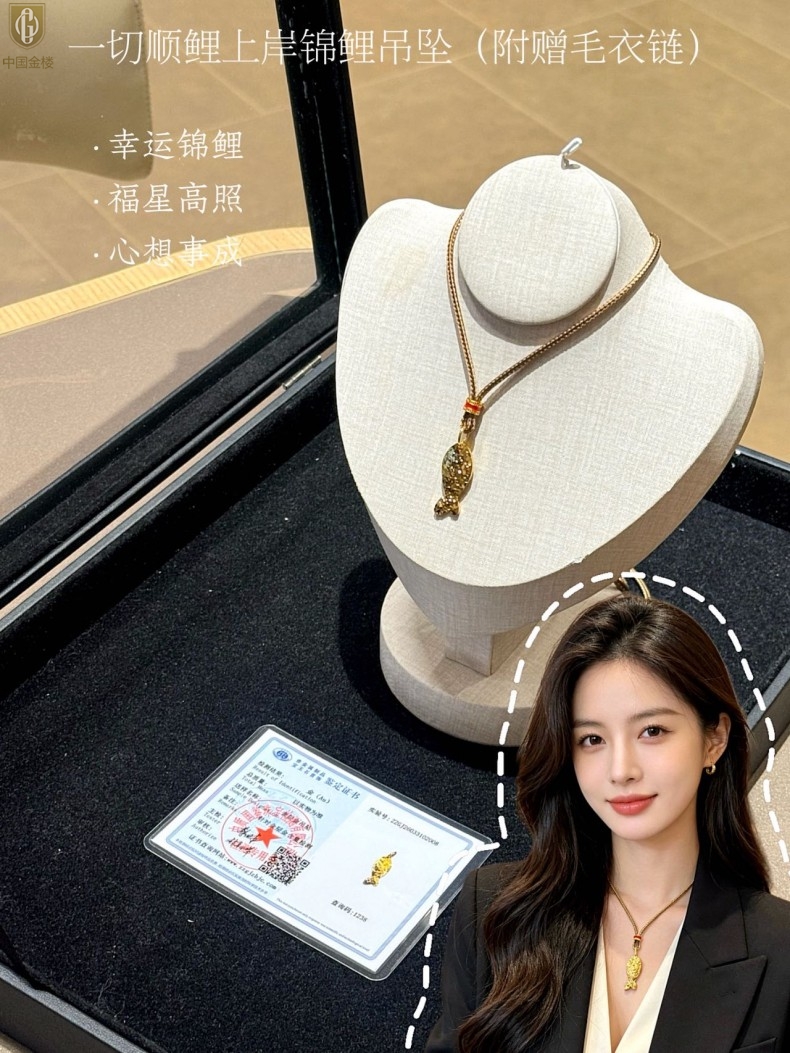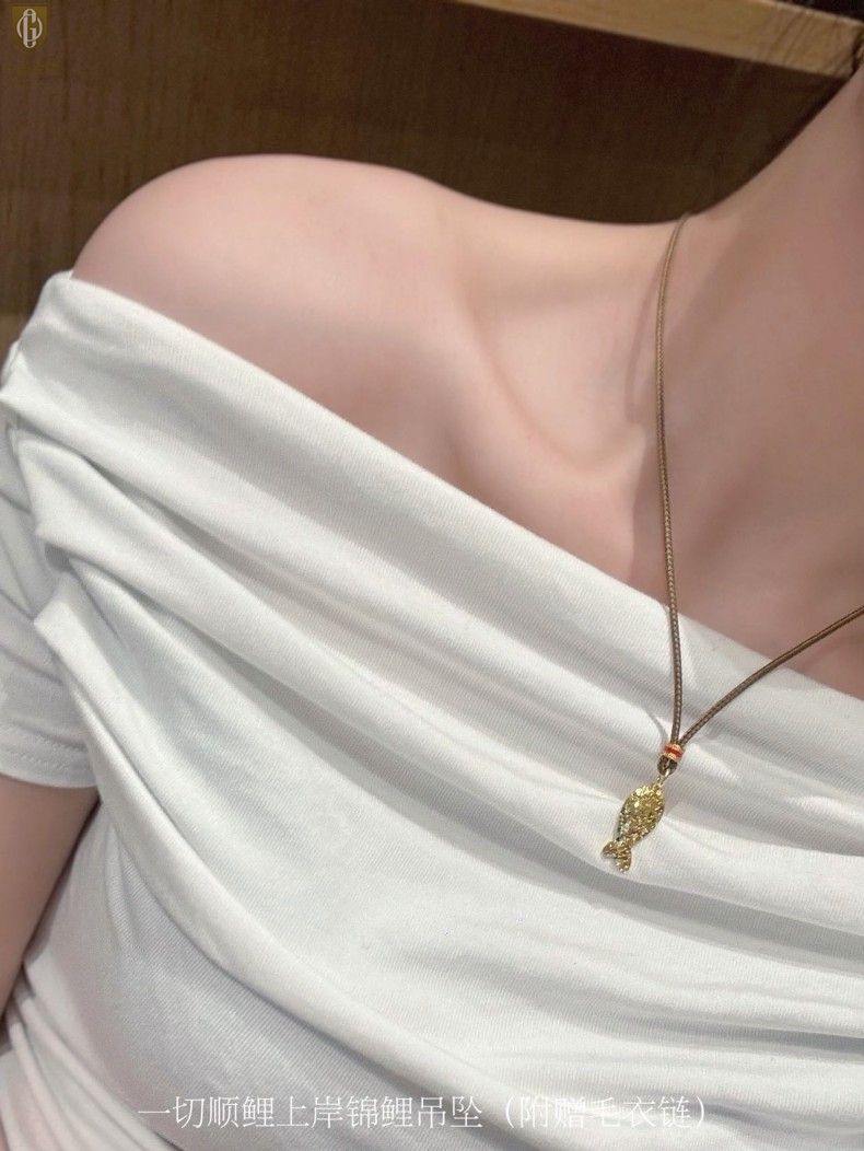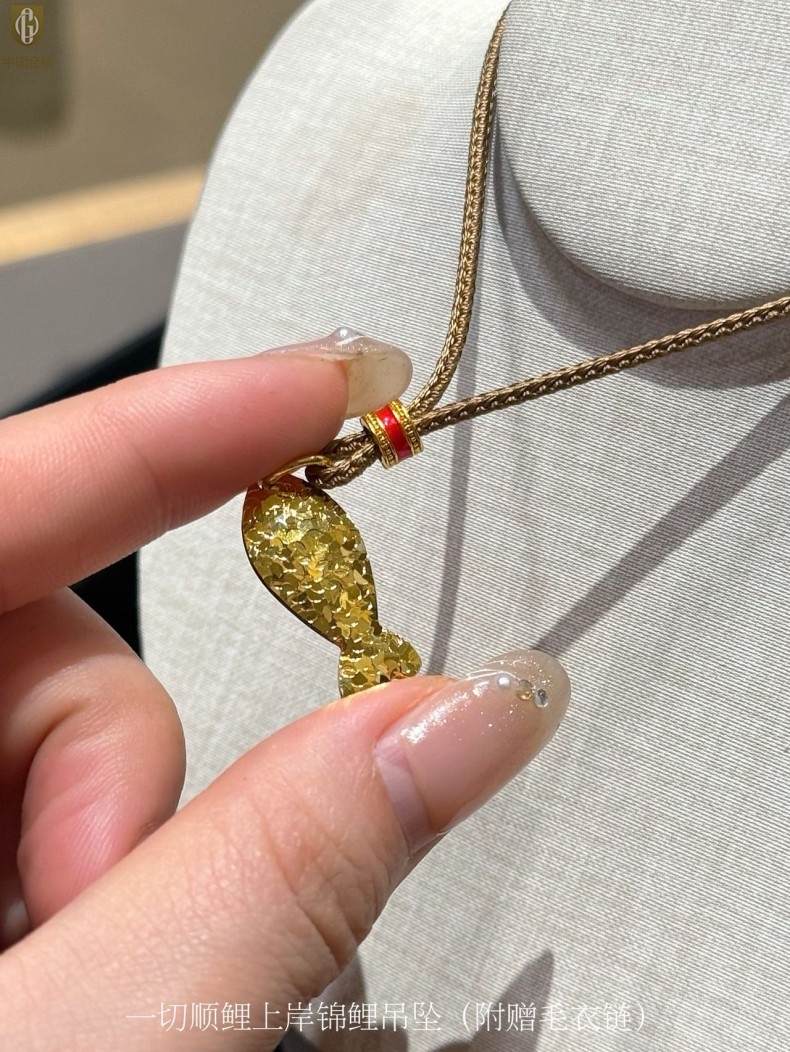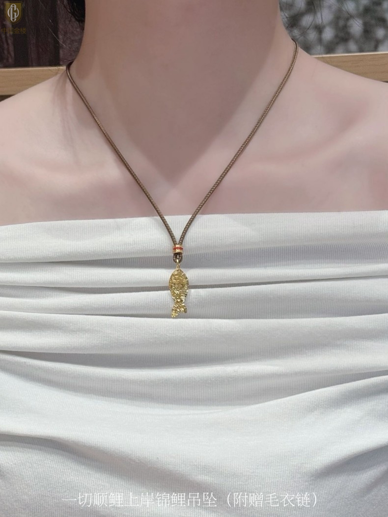 【品名】中国金楼一切顺鲤上岸锦鲤吊坠(附赠毛衣链)
