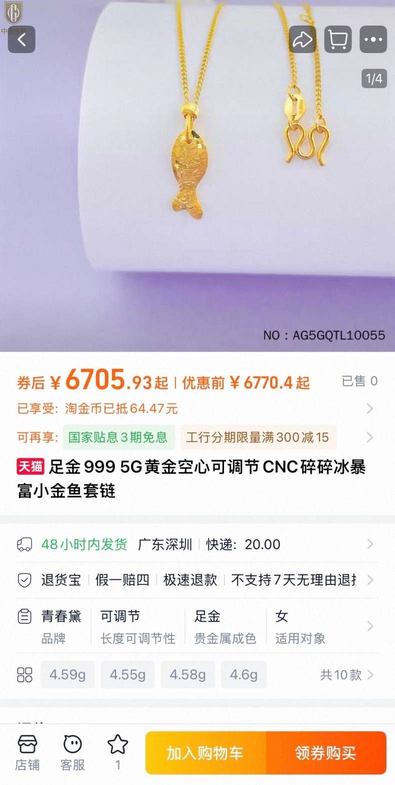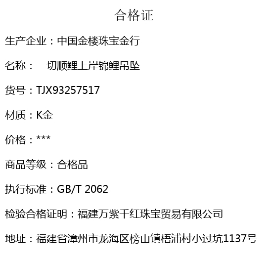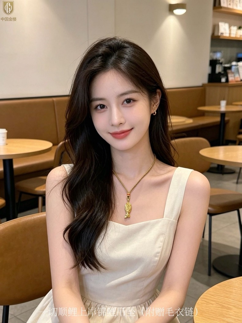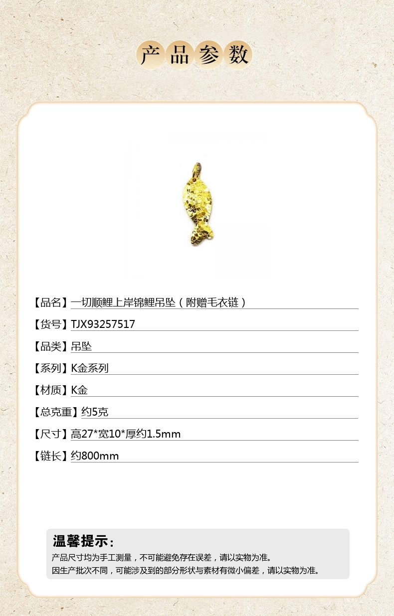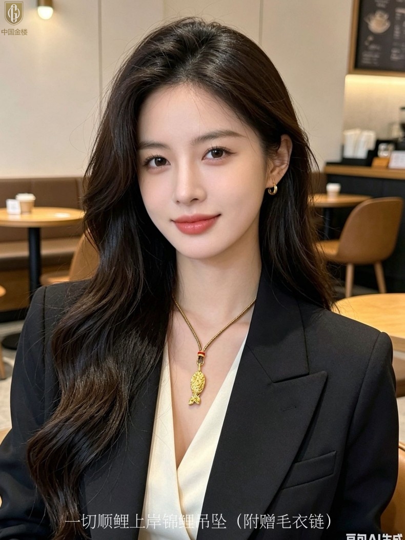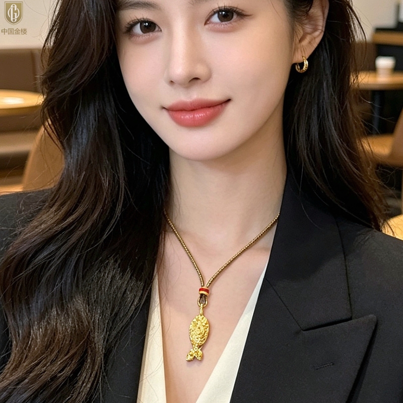 【品名】中国金楼一切顺鲤上岸锦鲤吊坠(附赠毛衣链)