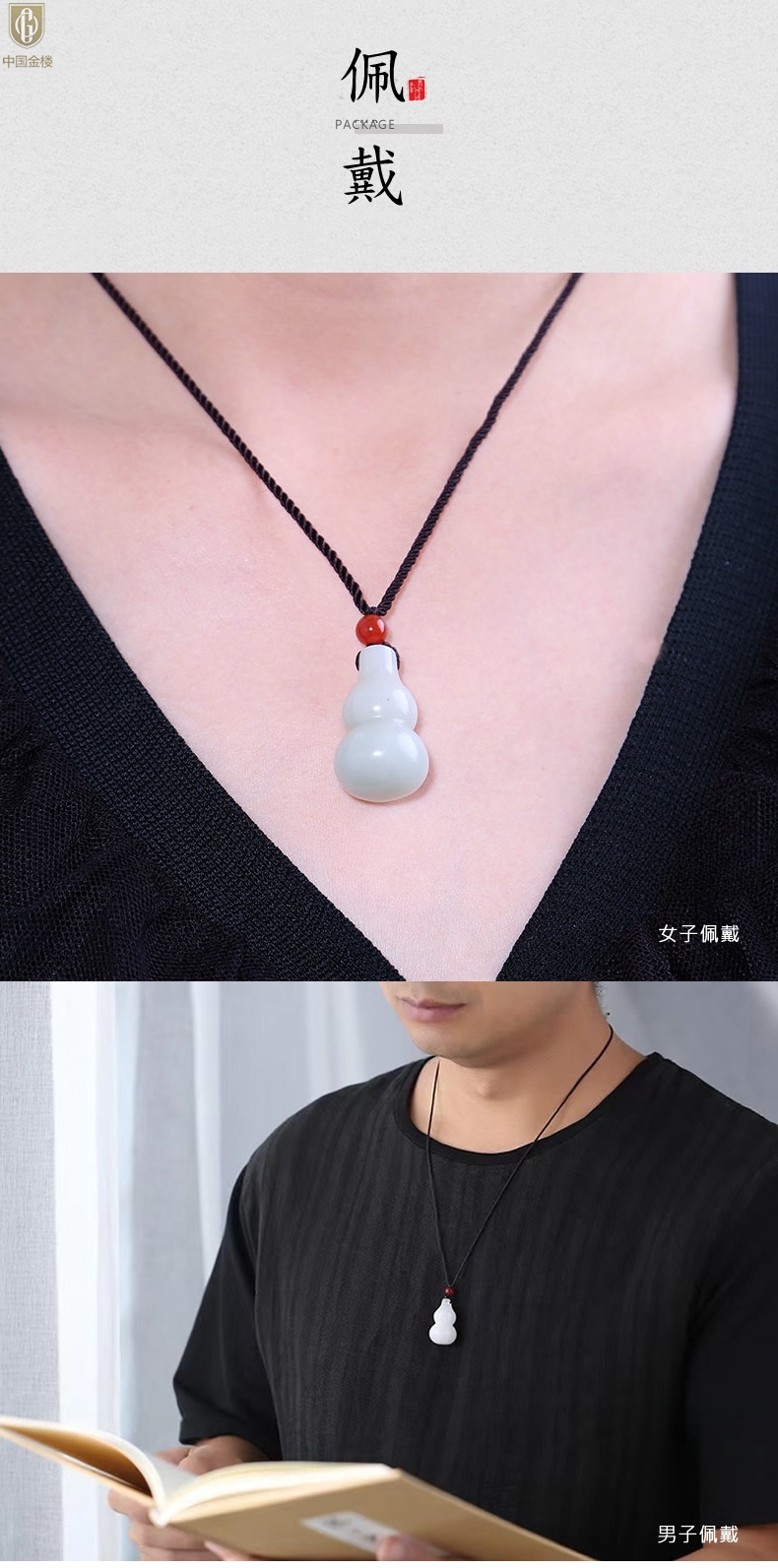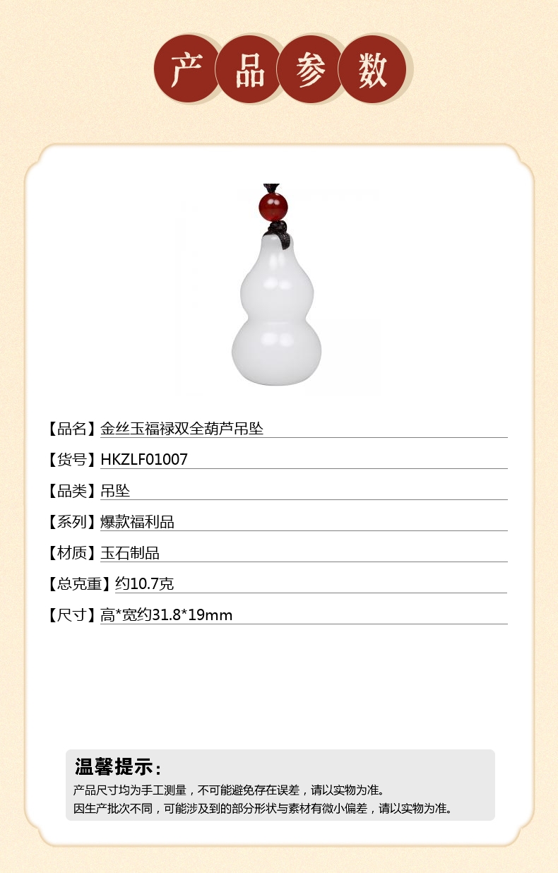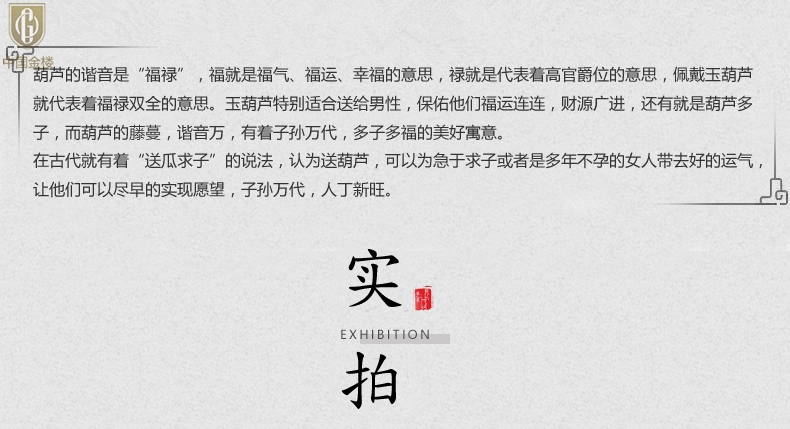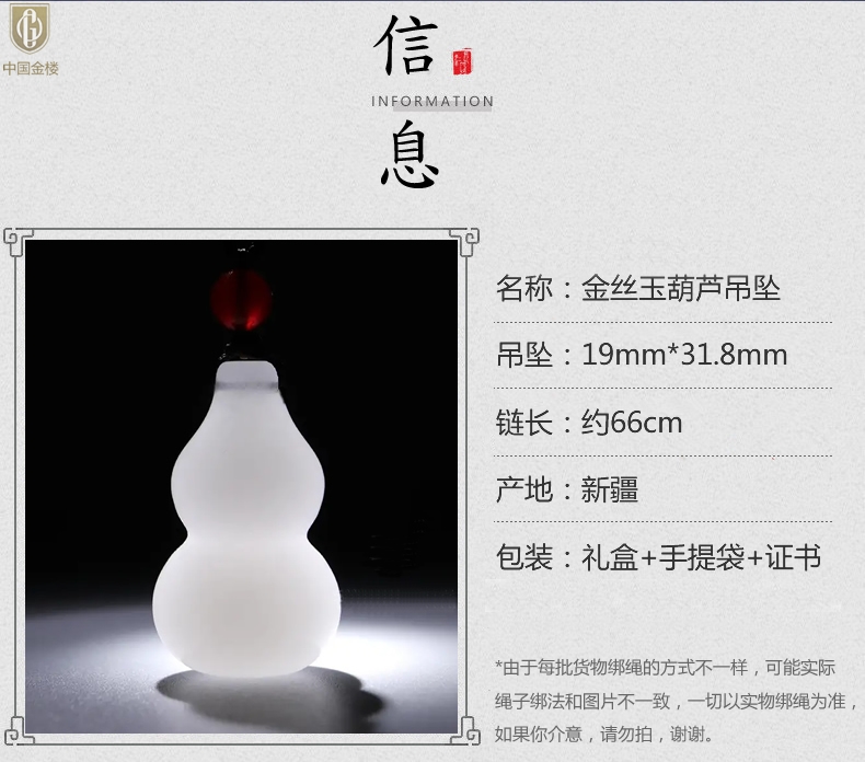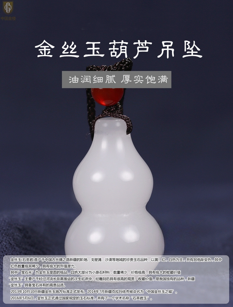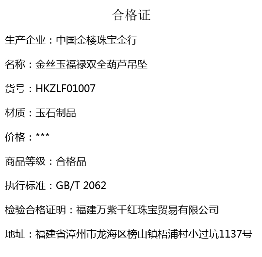 【品名】中国金楼金丝玉福禄双全葫芦吊坠