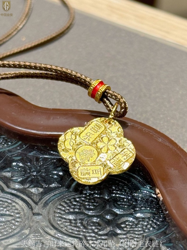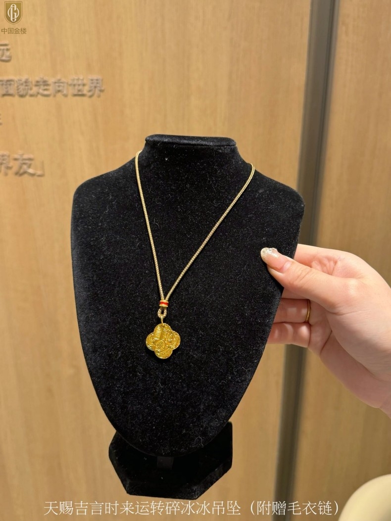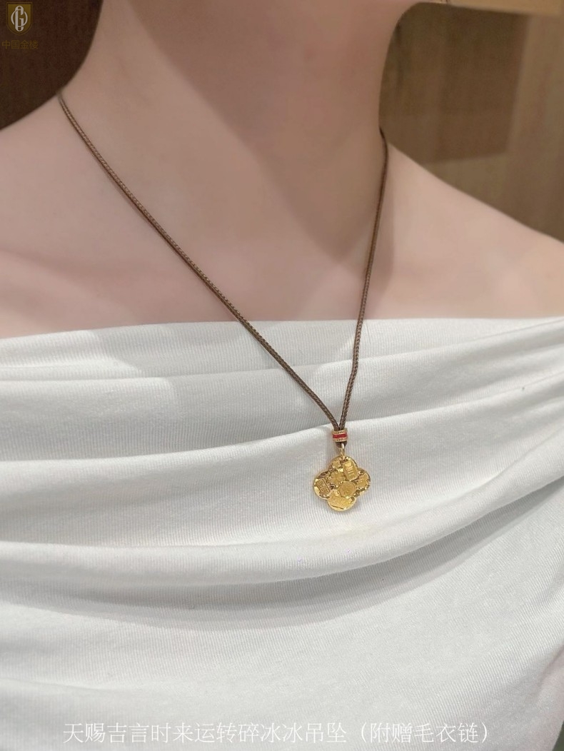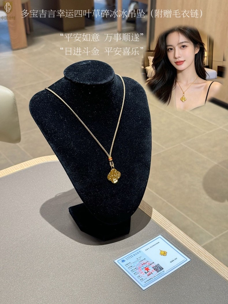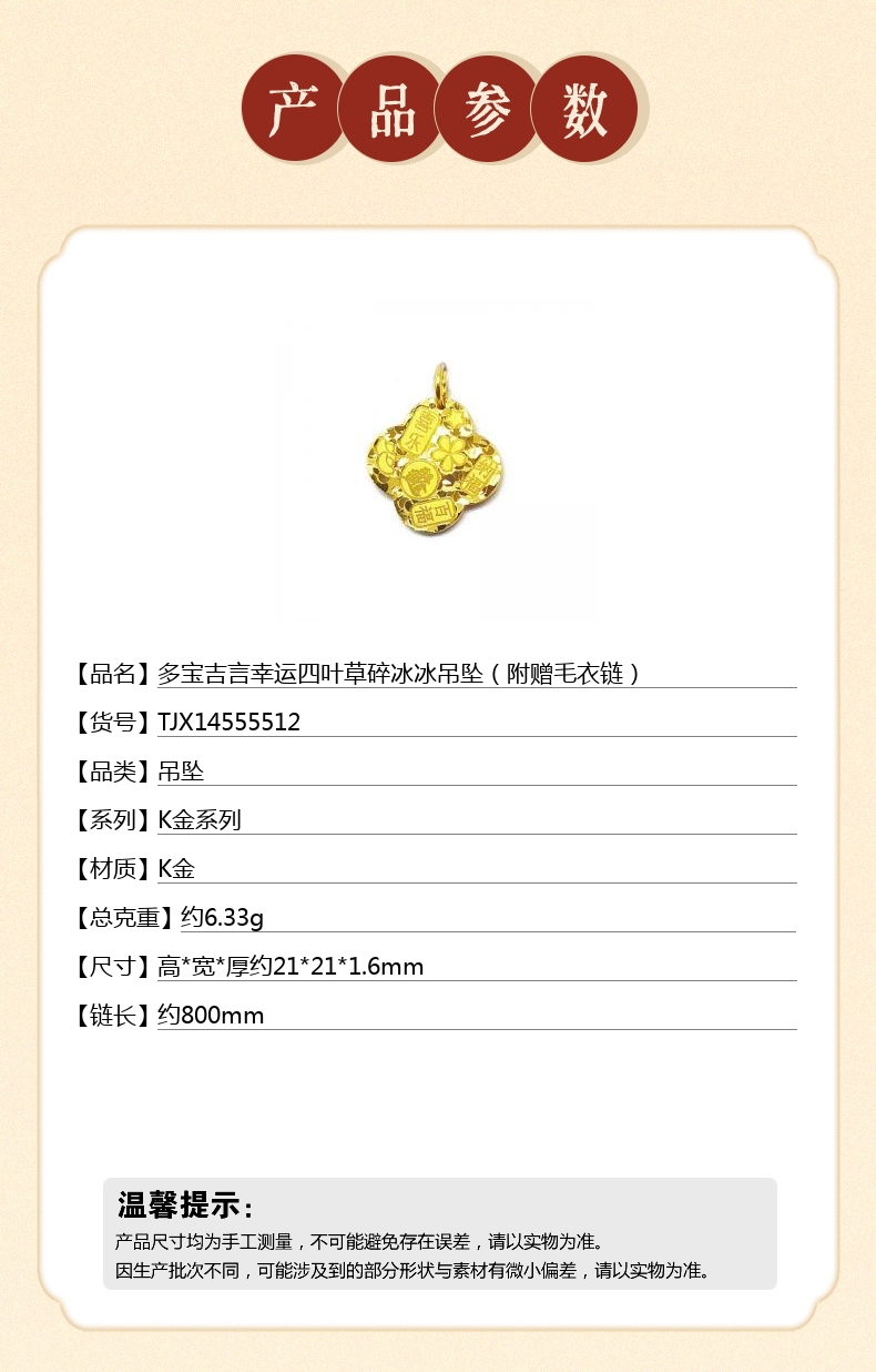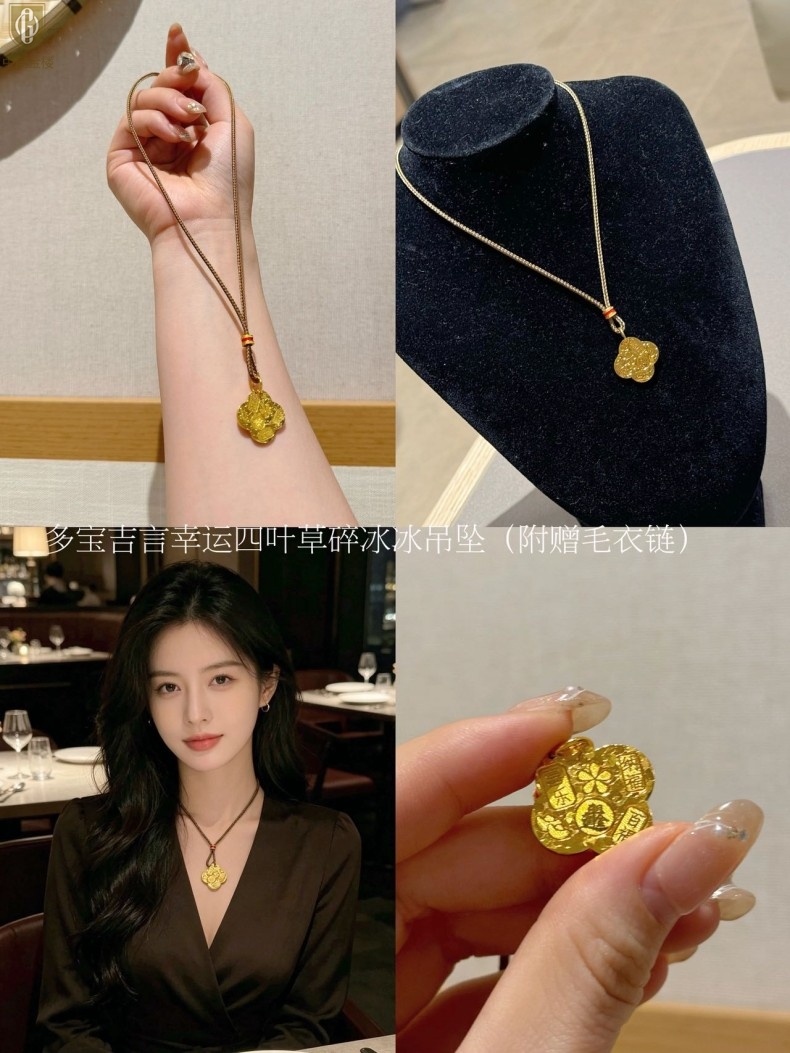 【品名】中国金楼多宝吉言幸运四叶草碎冰冰吊坠(附赠毛衣链)