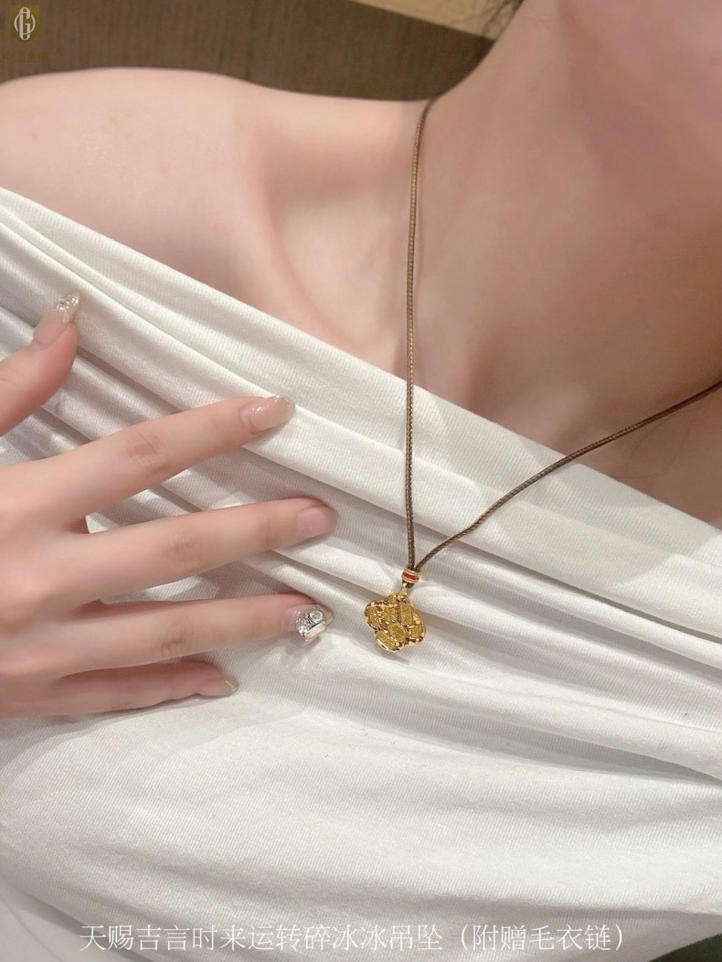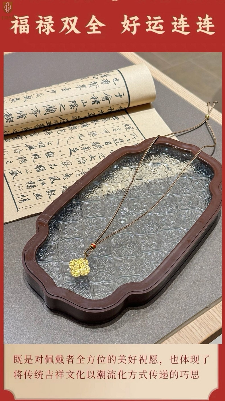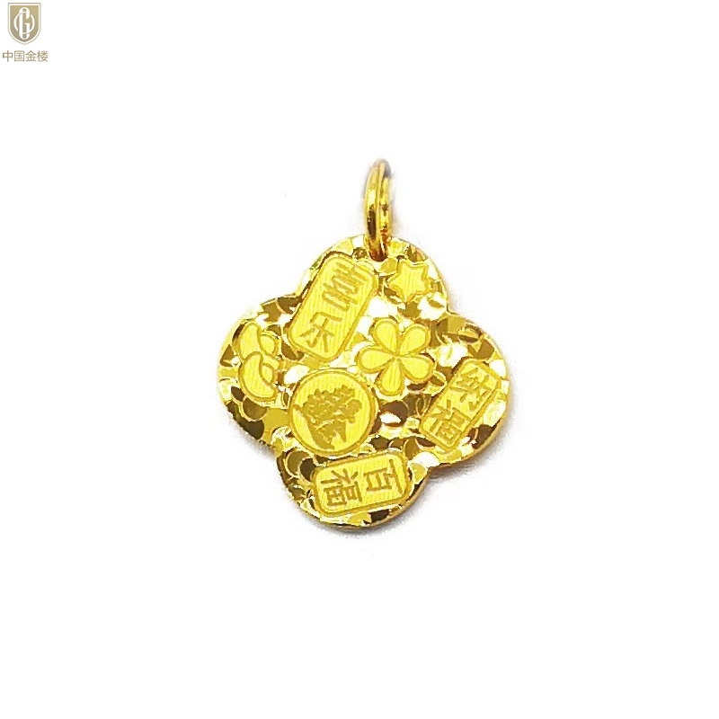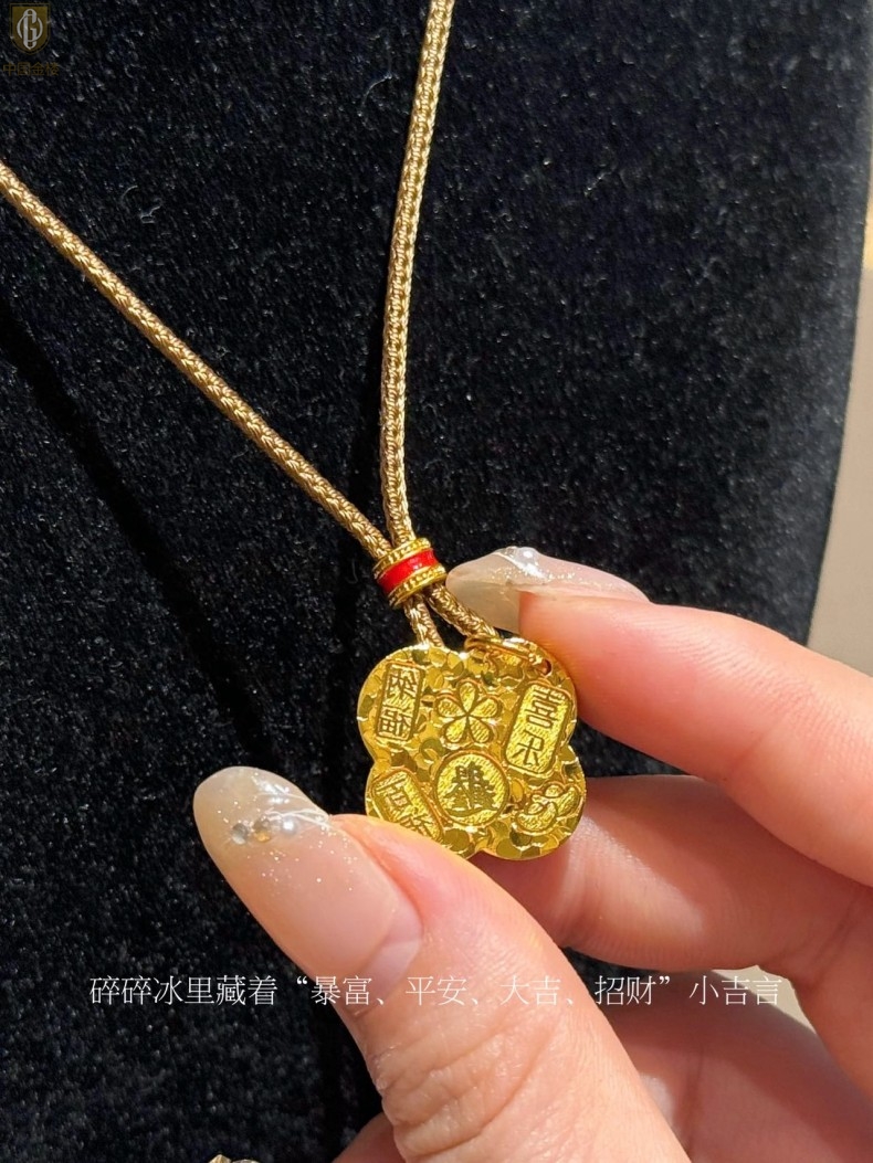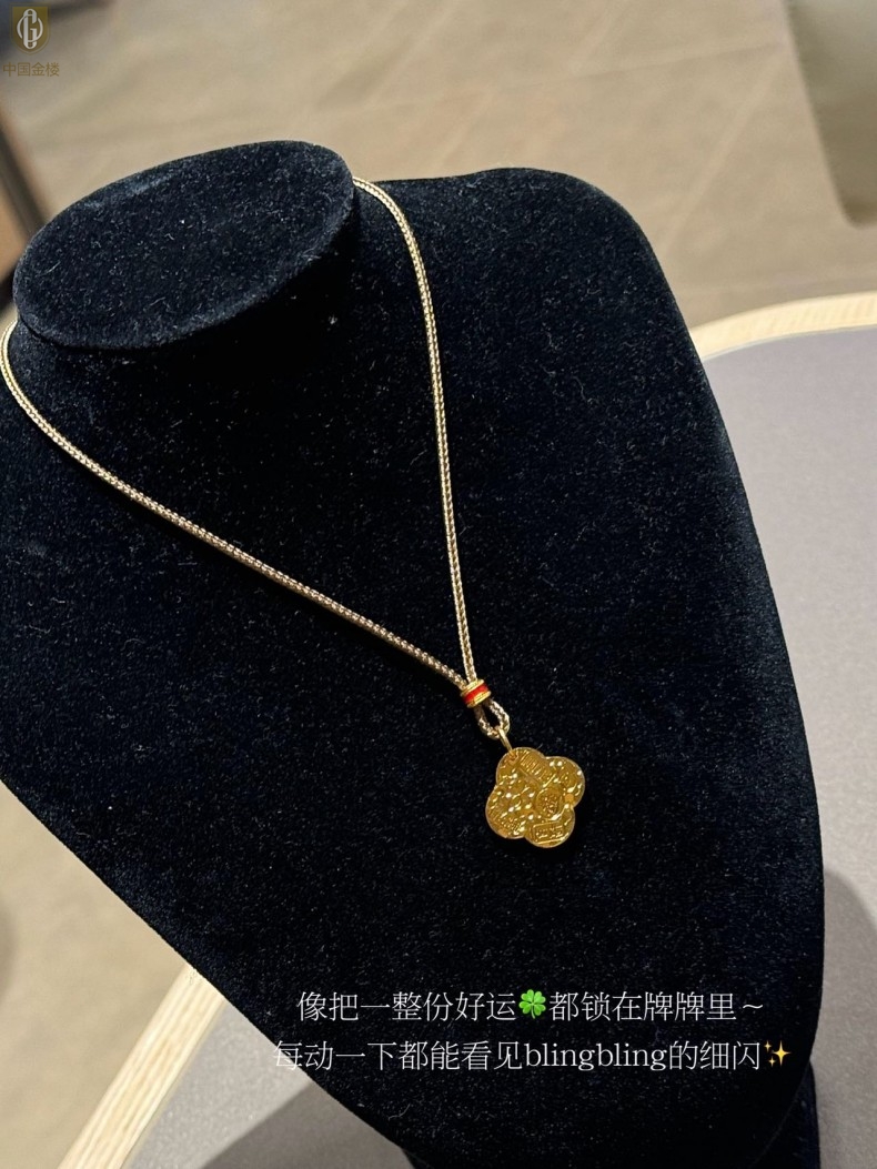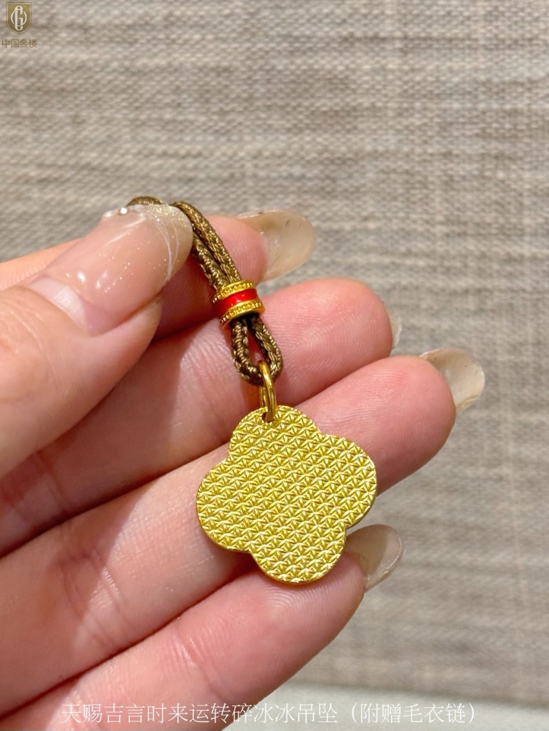 【品名】中国金楼多宝吉言幸运四叶草碎冰冰吊坠(附赠毛衣链)