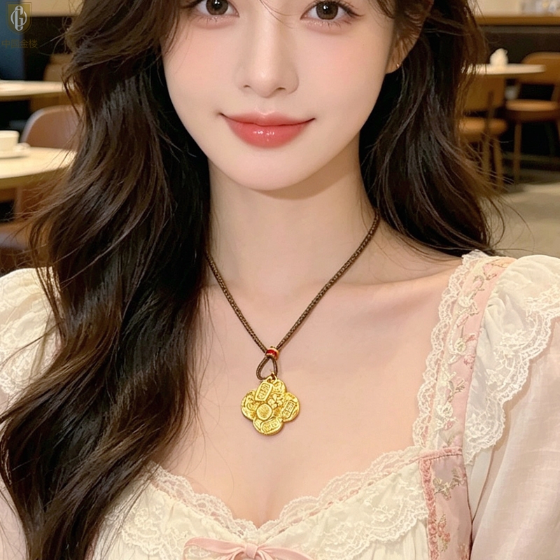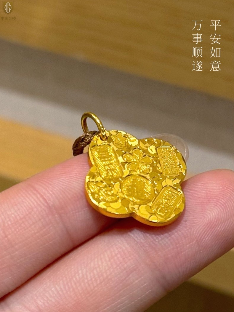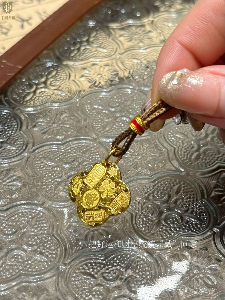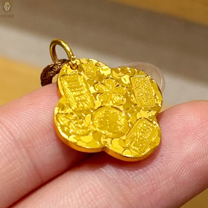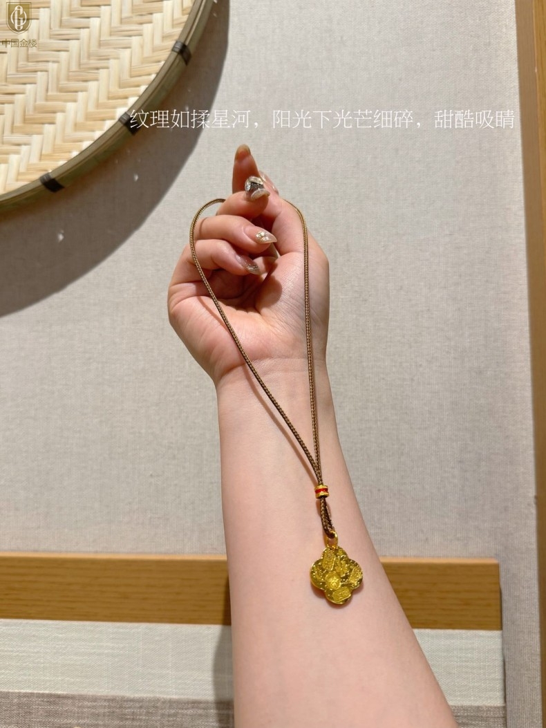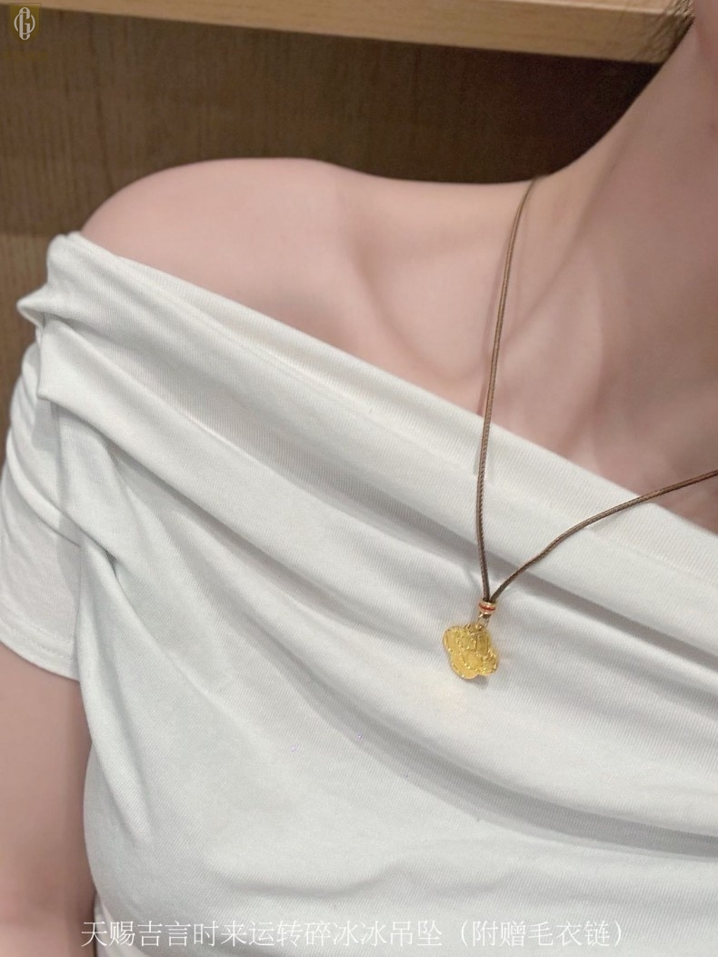 【品名】中国金楼多宝吉言幸运四叶草碎冰冰吊坠(附赠毛衣链)