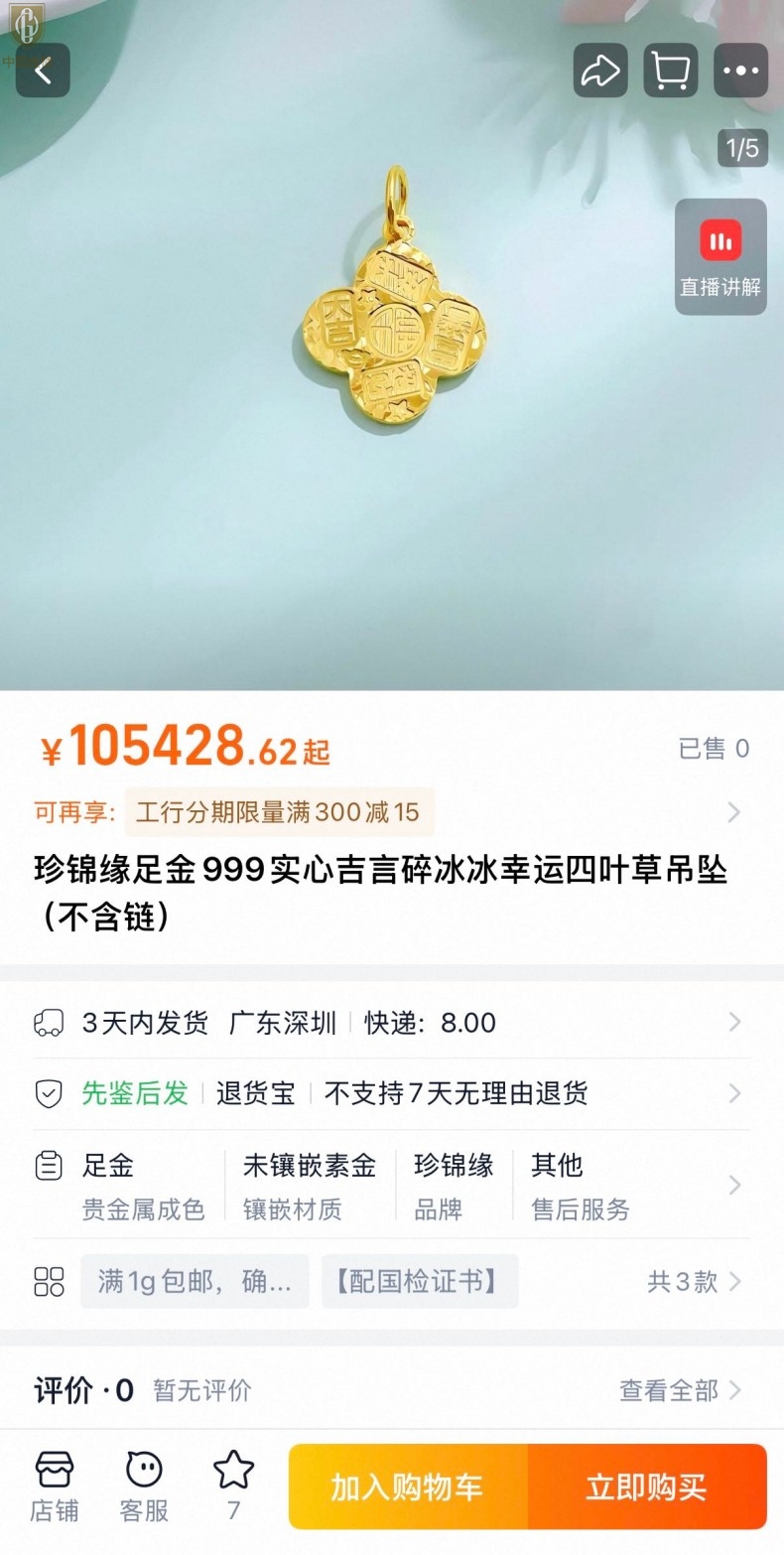 【套装包含】首饰+礼品盒+礼品袋+国检证书+质保单+价签