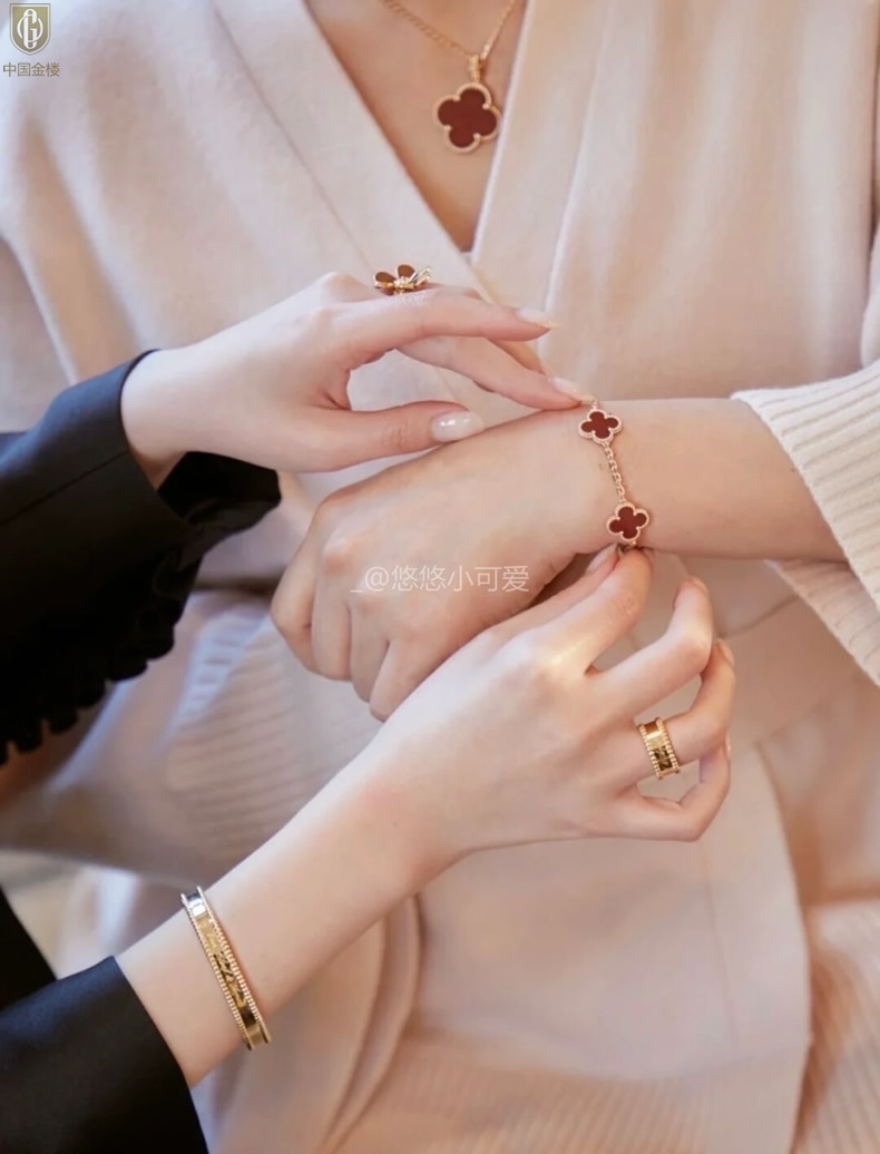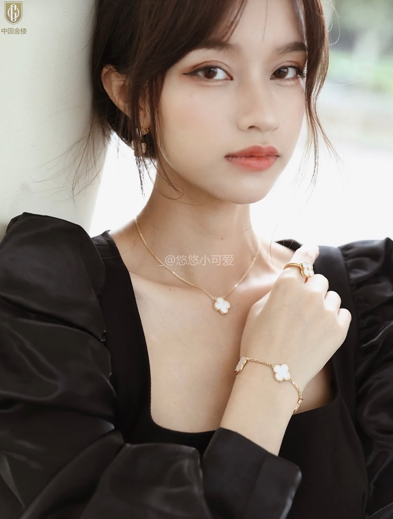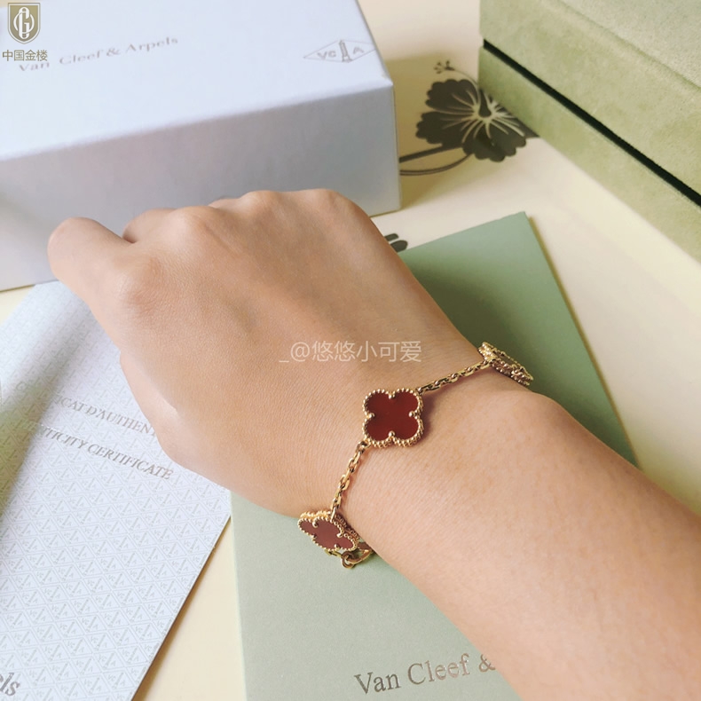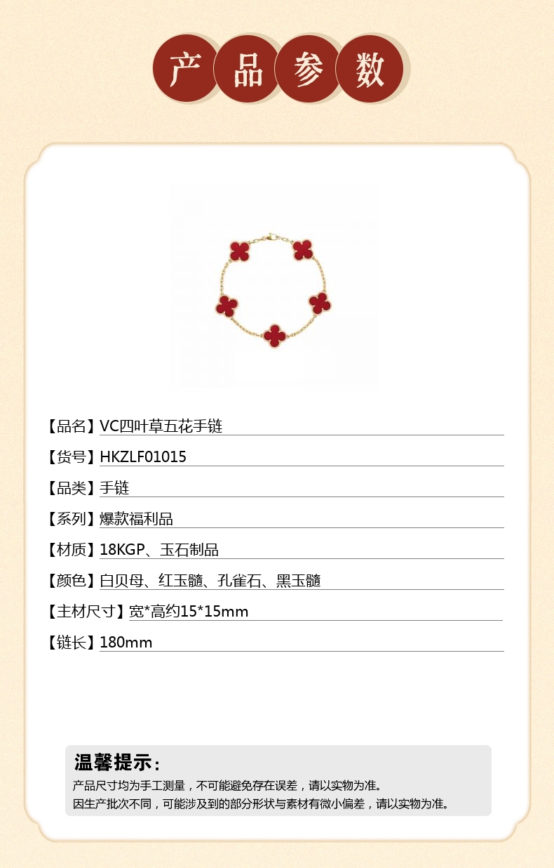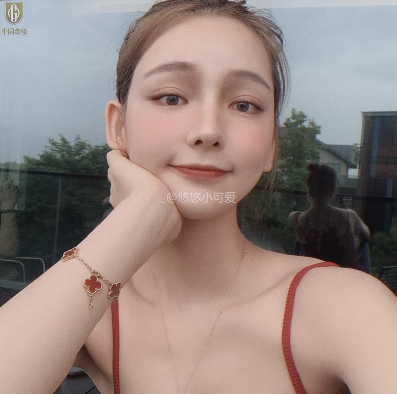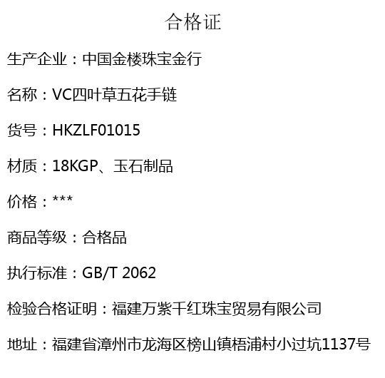 【品名】中国金楼VC四叶草五花手链