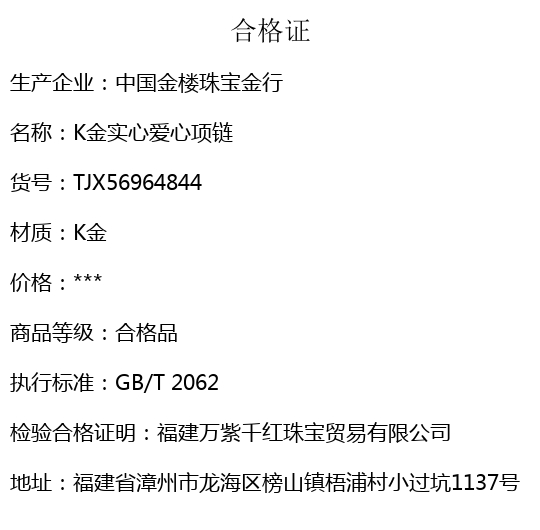【套装包含】首饰+礼品盒+礼品袋+国检证书+质保单+价签