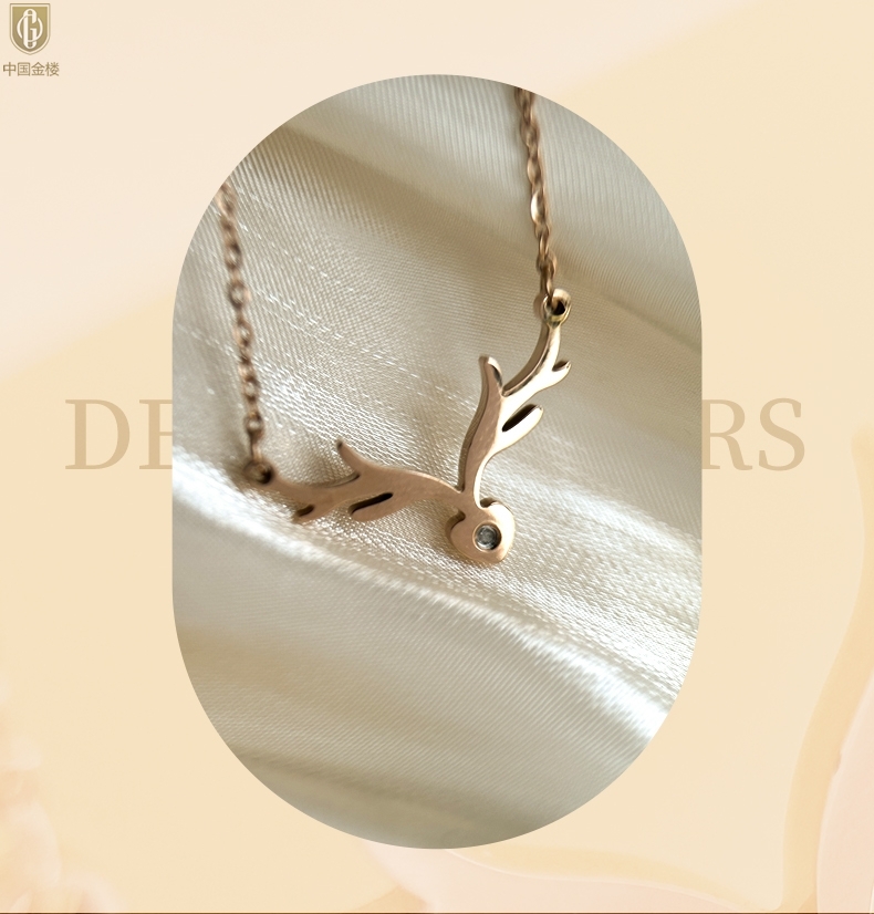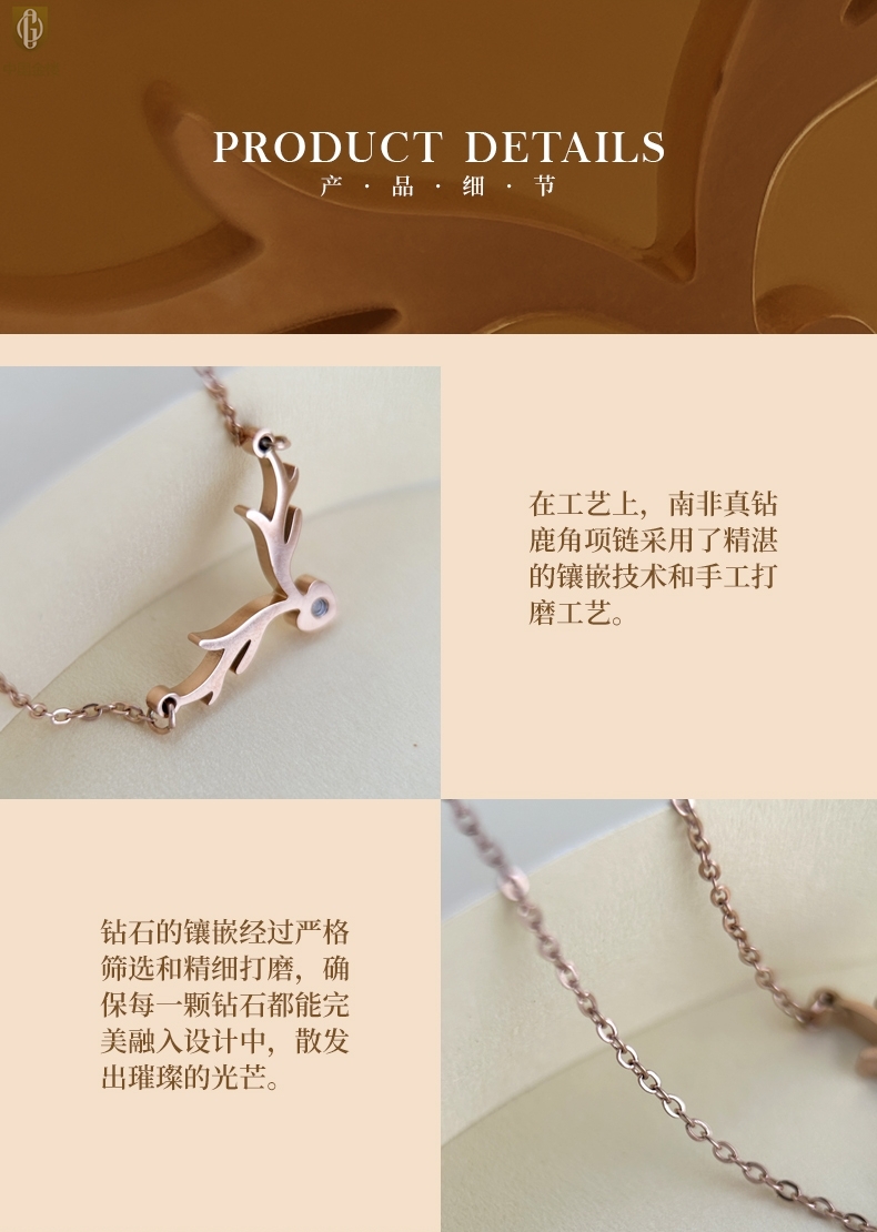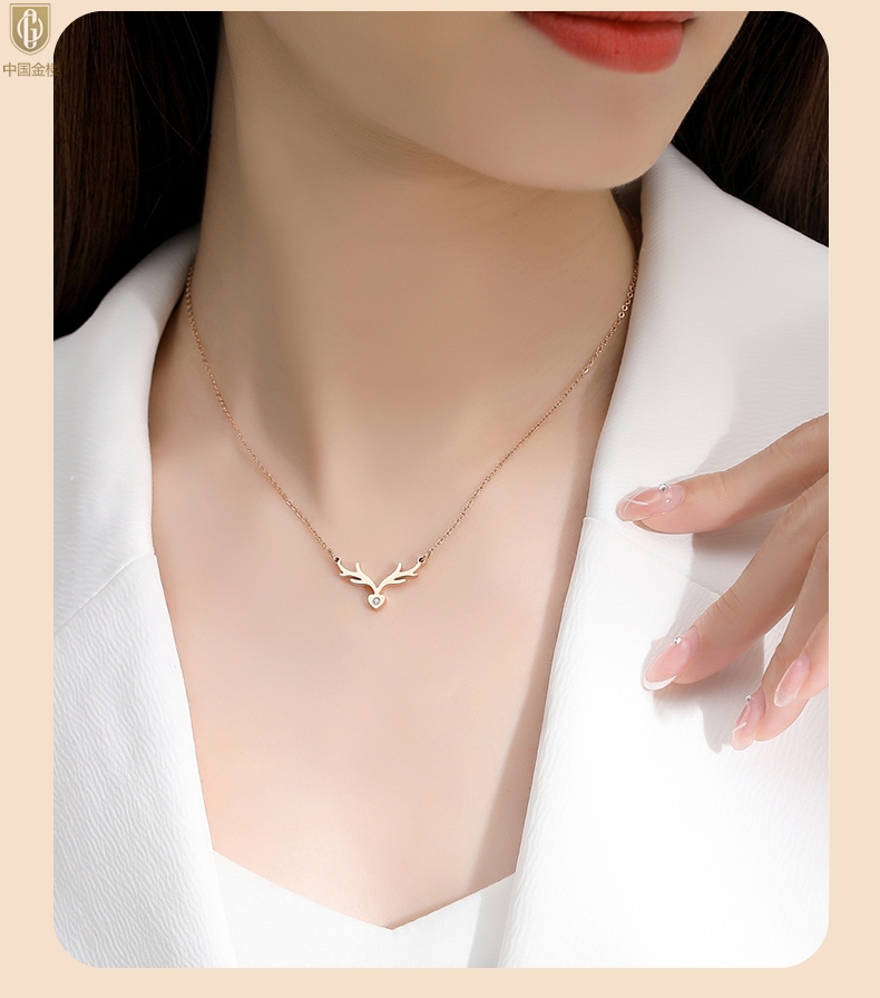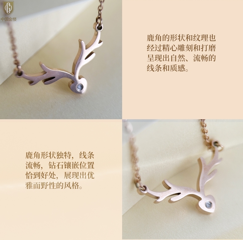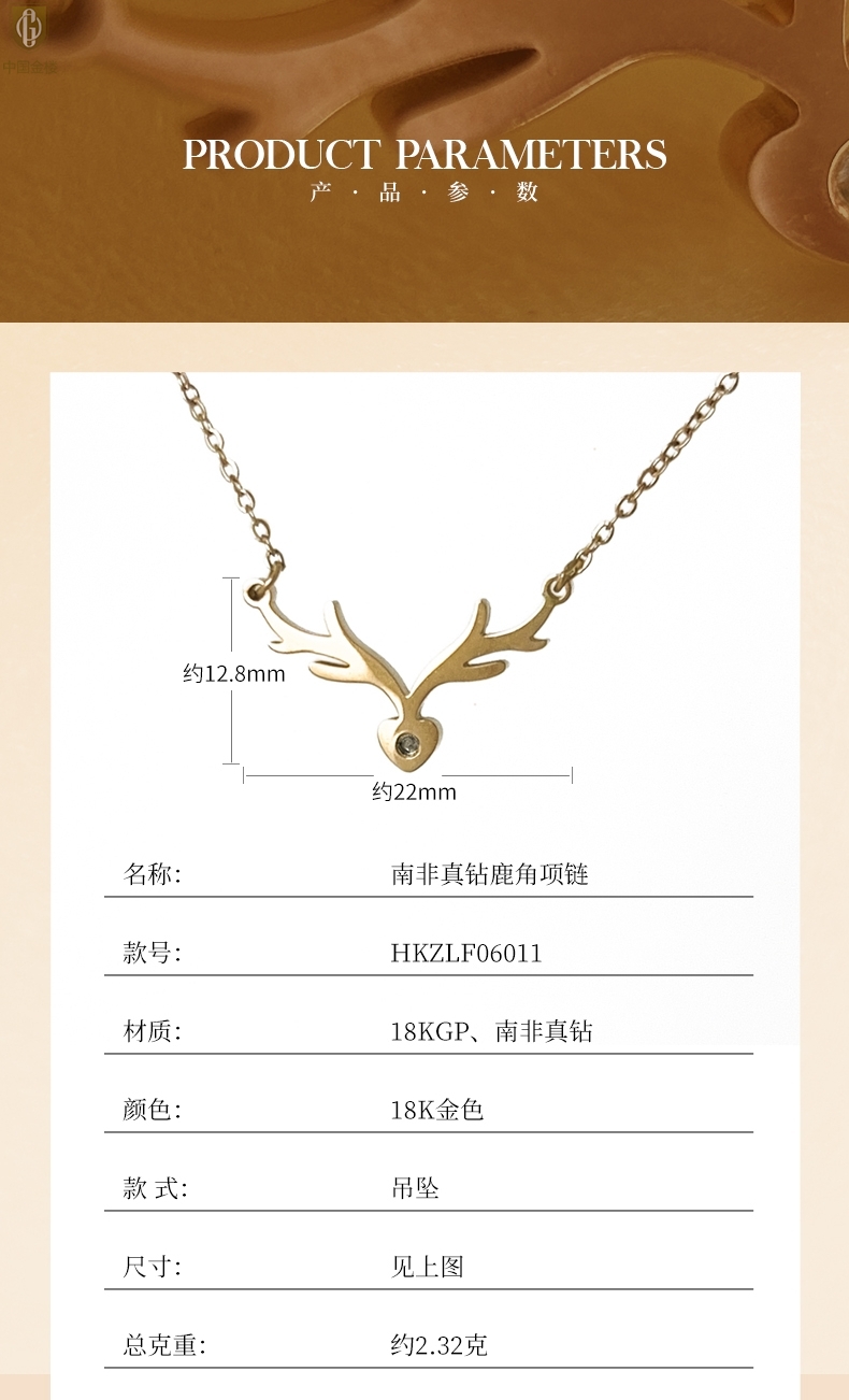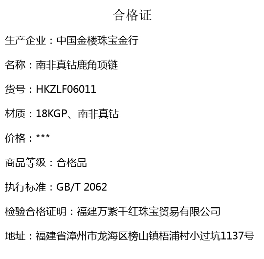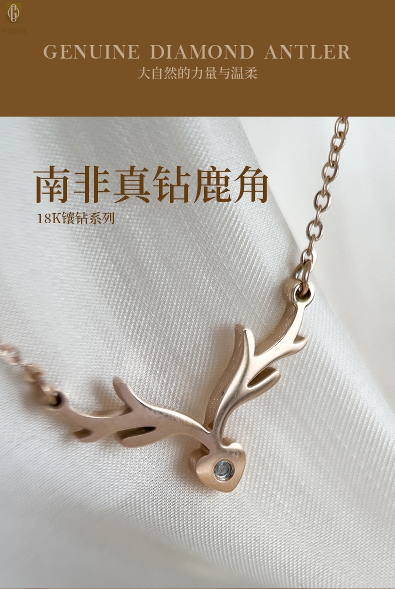 【品名】中国金楼南非真钻鹿角项链