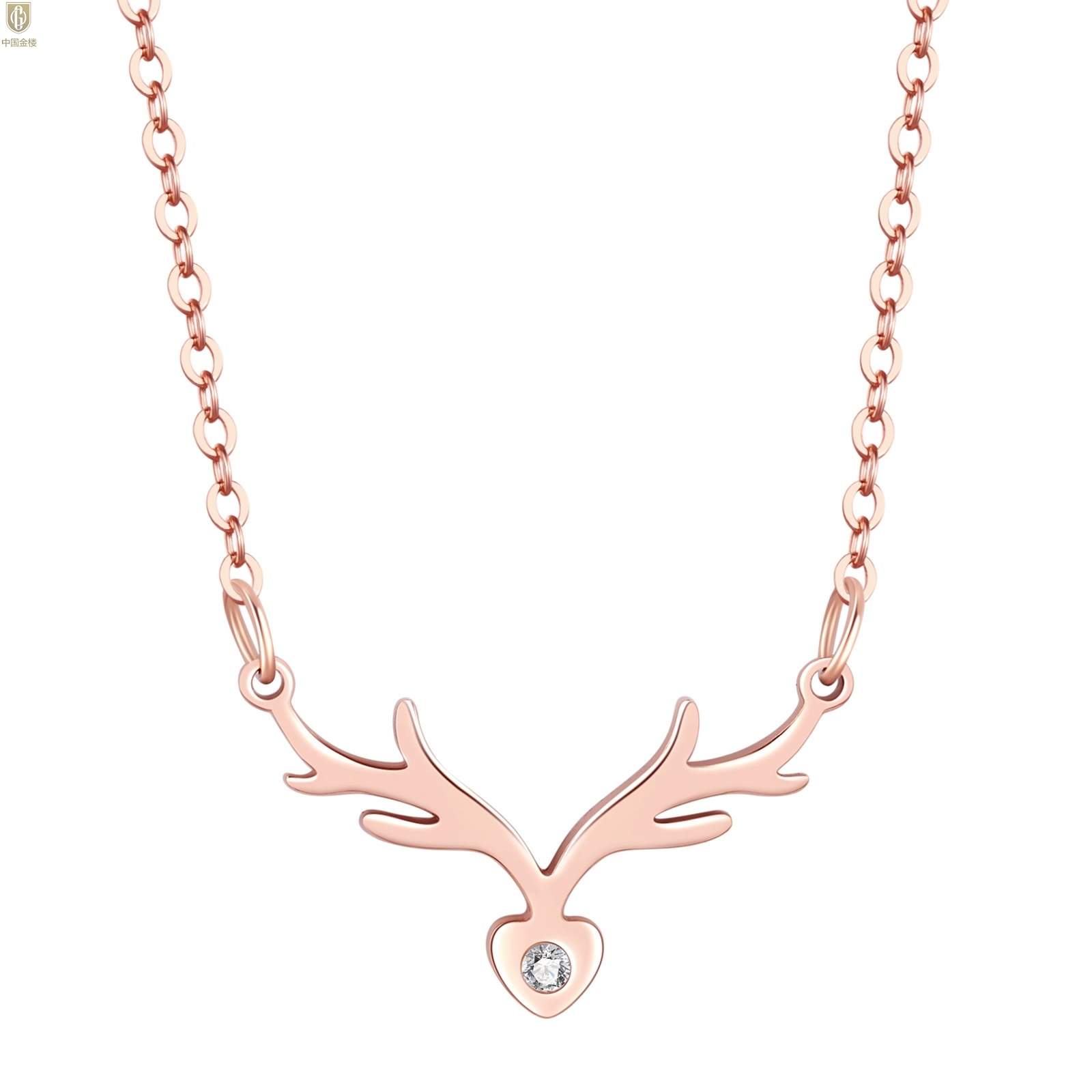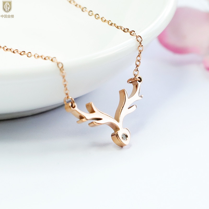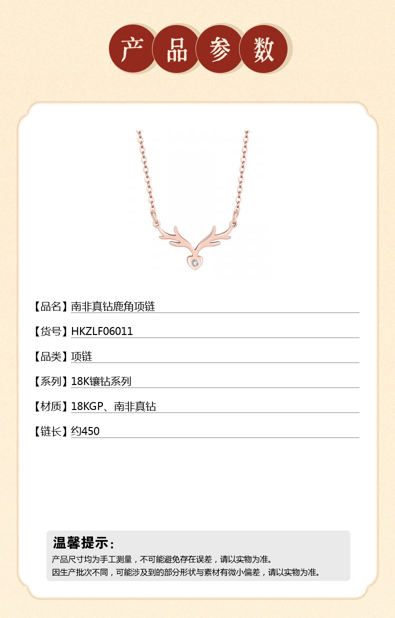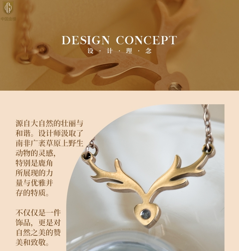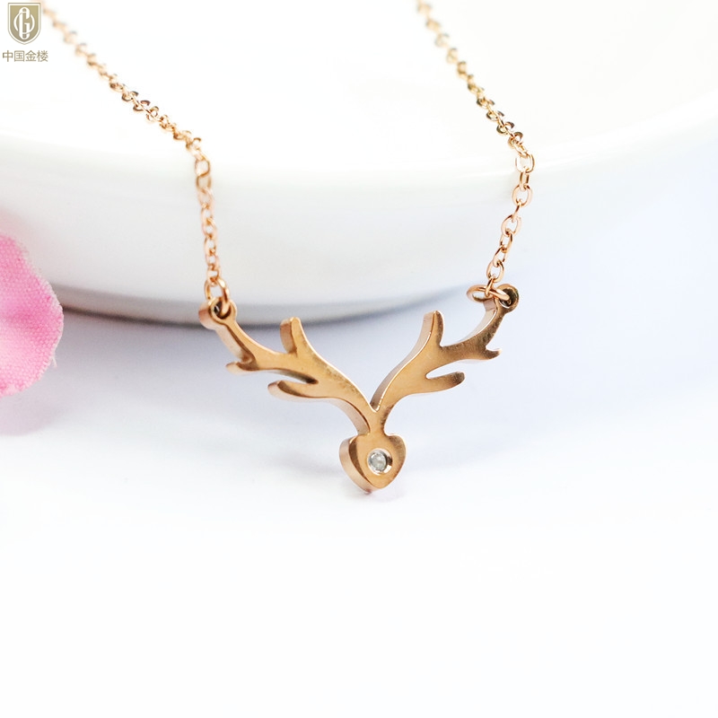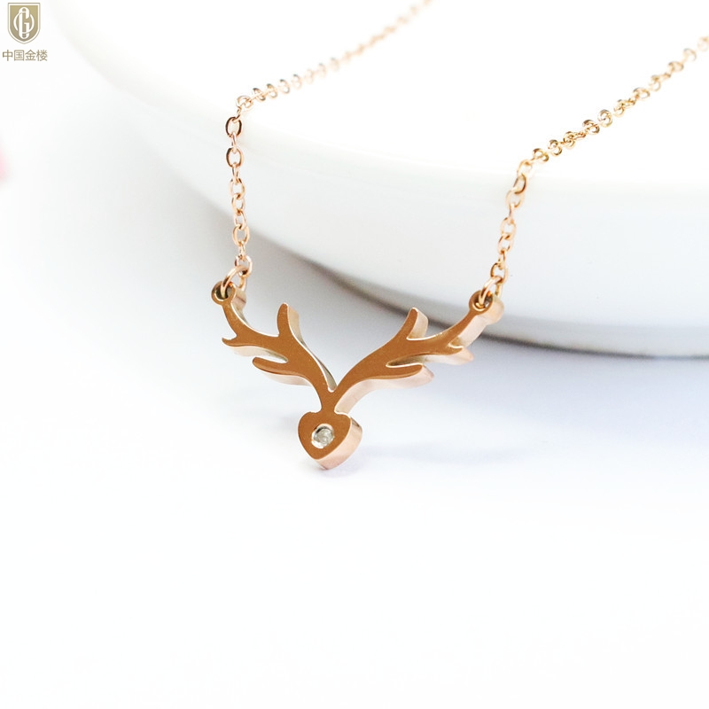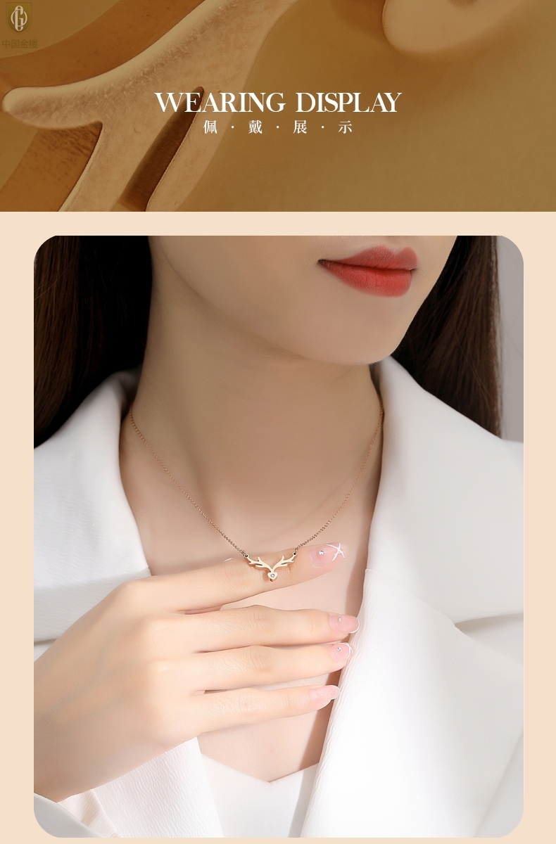 【品名】中国金楼南非真钻鹿角项链
