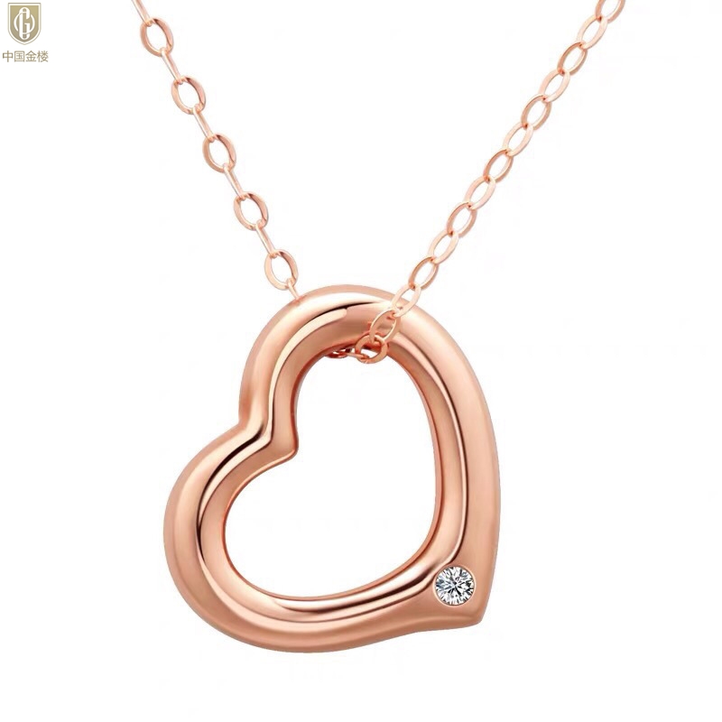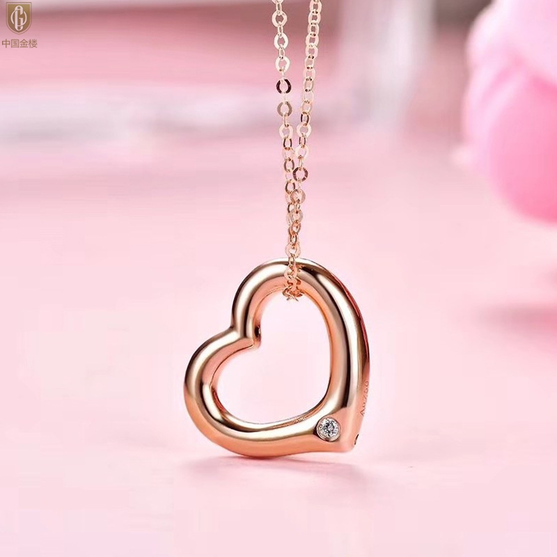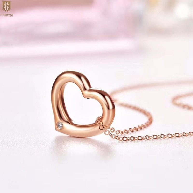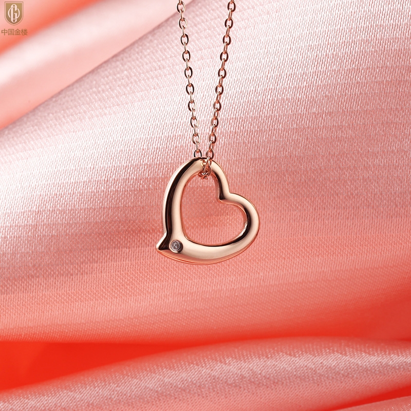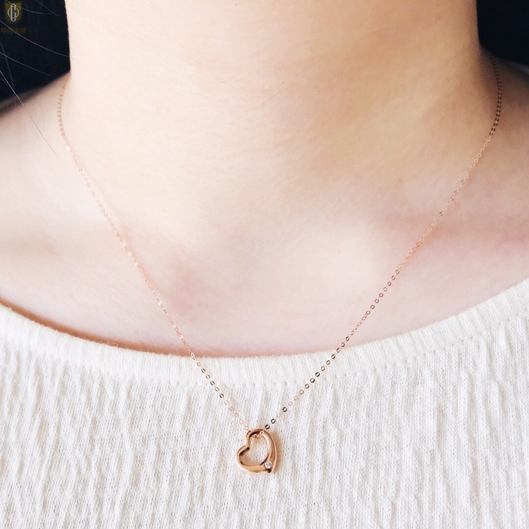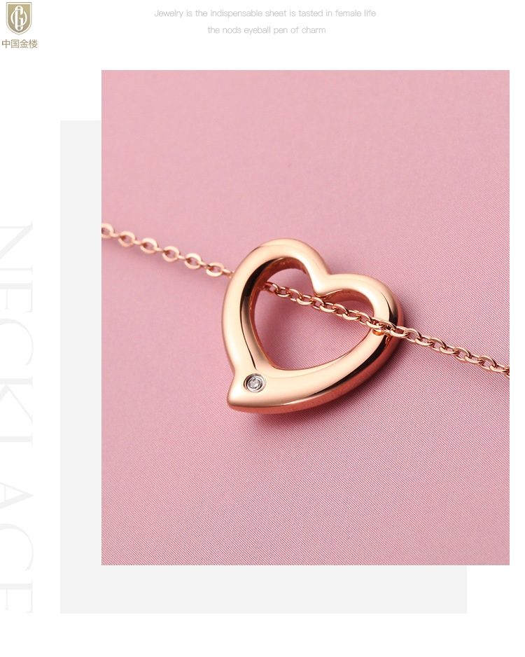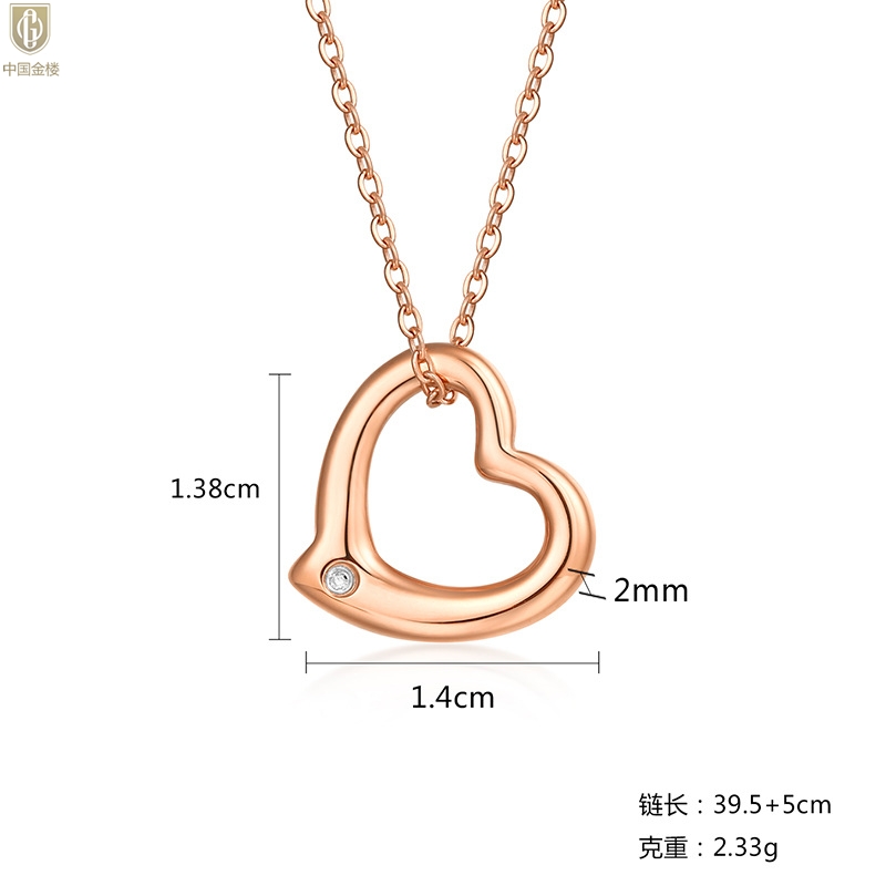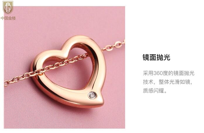 【品名】中国金楼18K镶钻南非真钻爱心项链(空心)