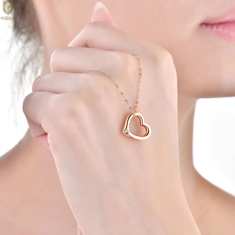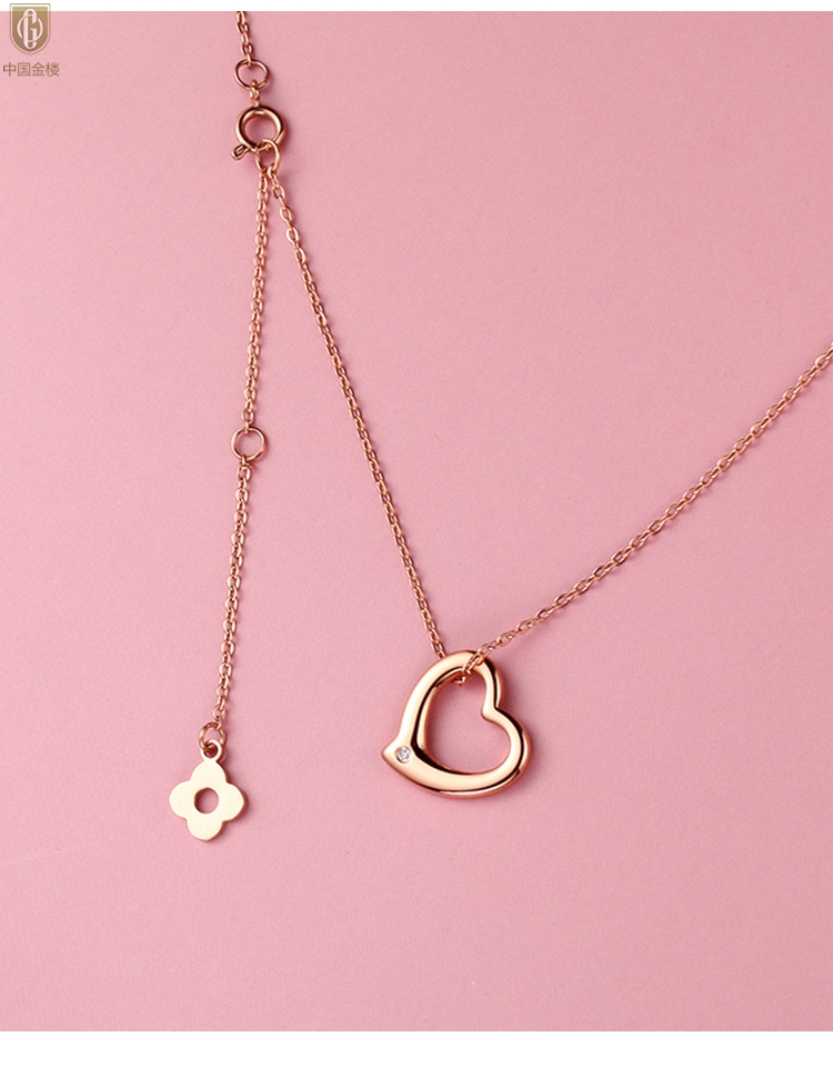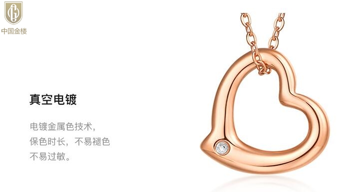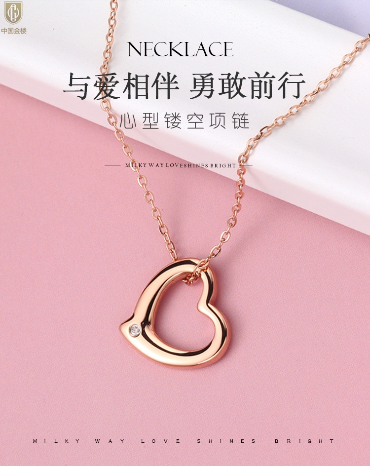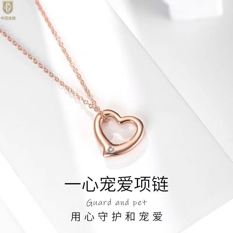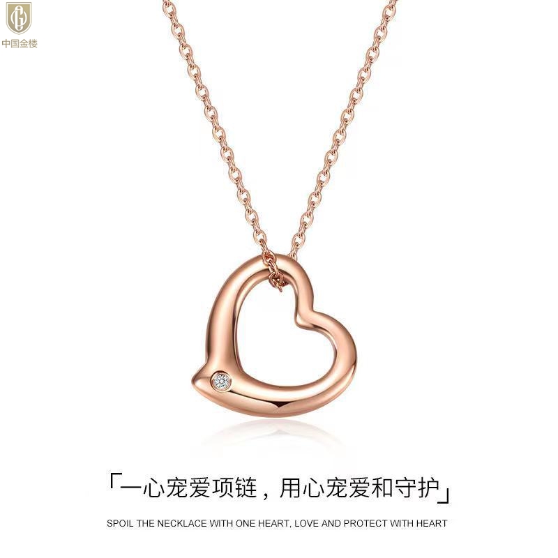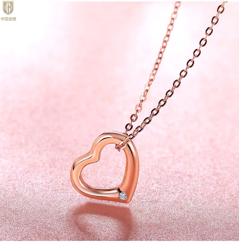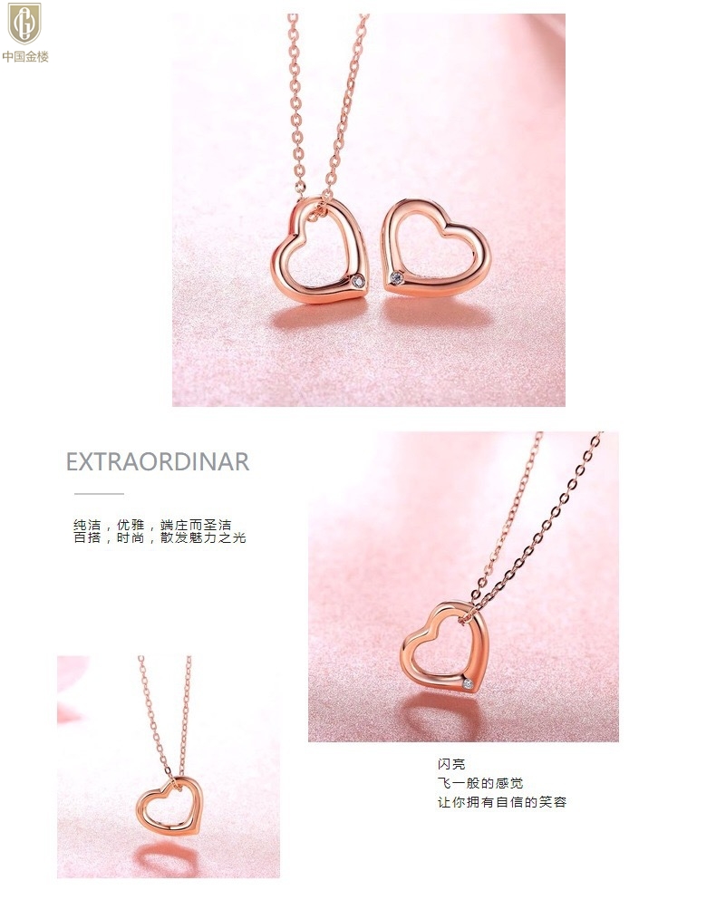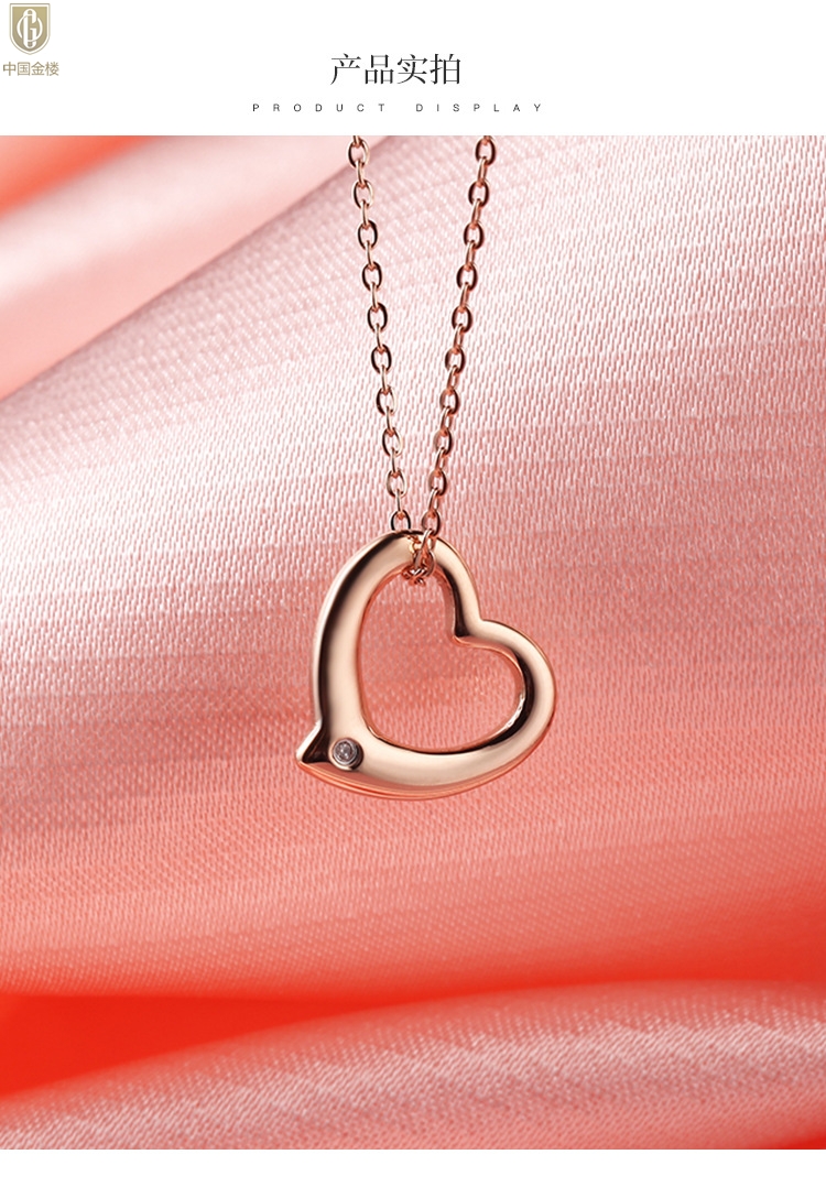 【品名】中国金楼18K镶钻南非真钻爱心项链(空心)