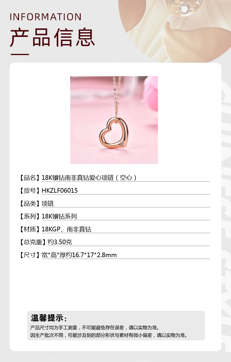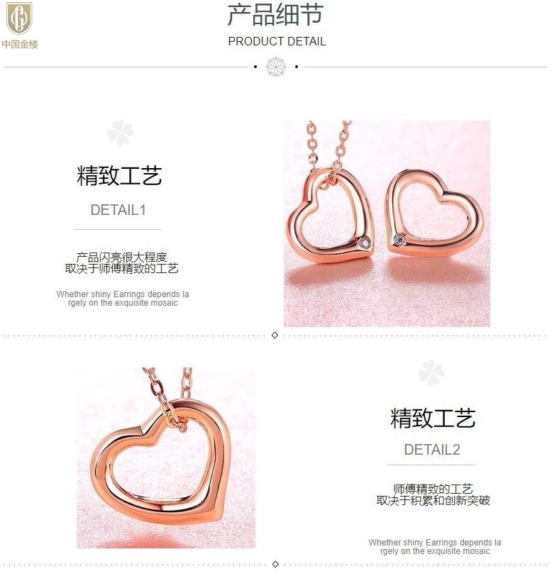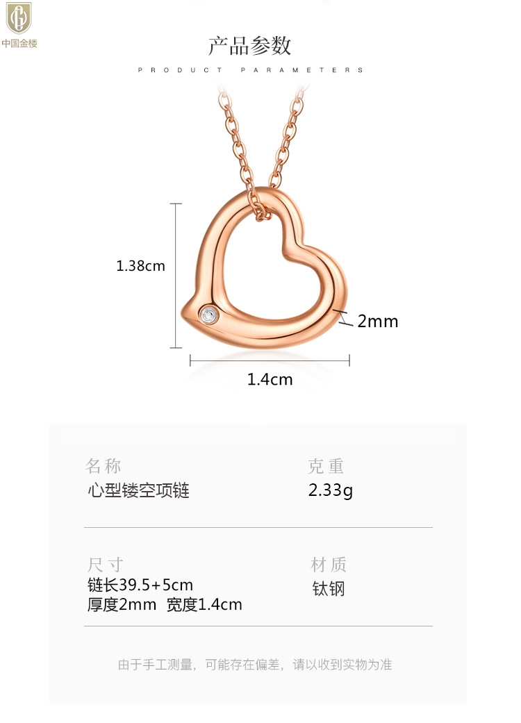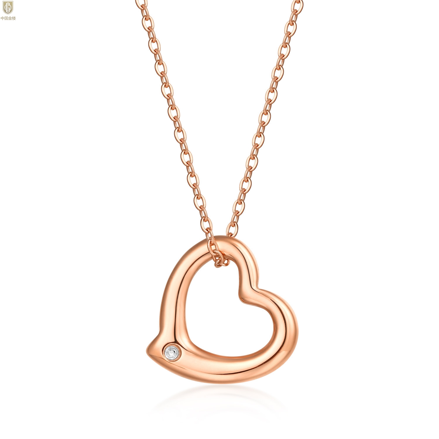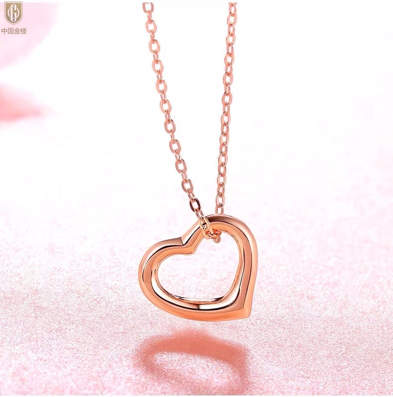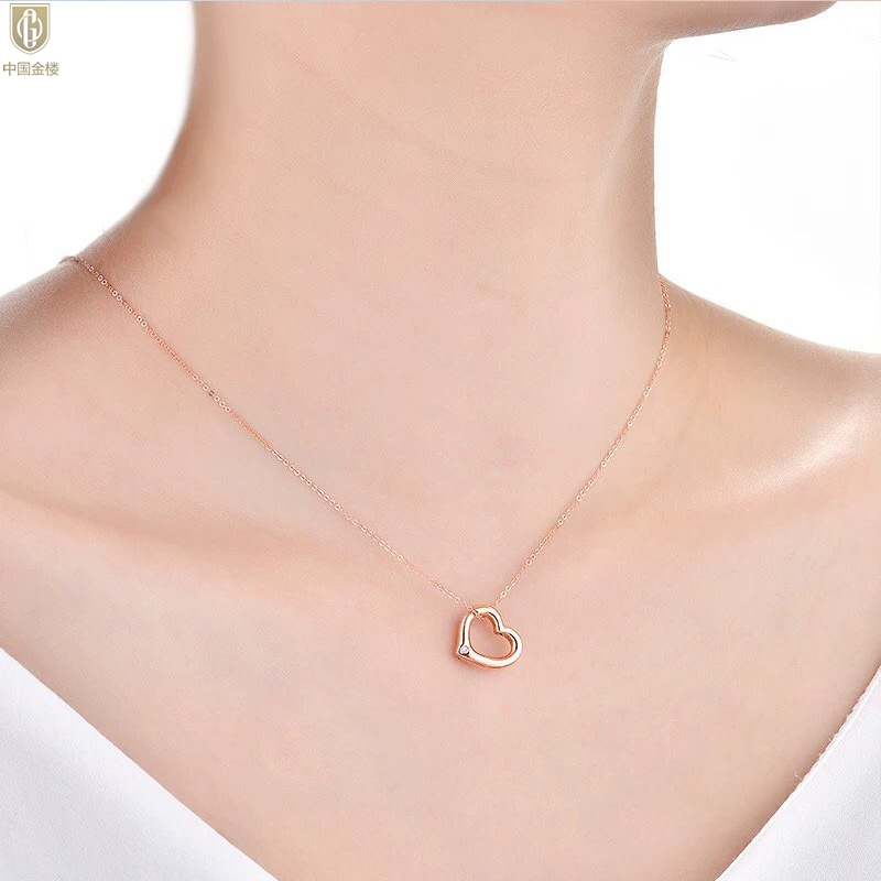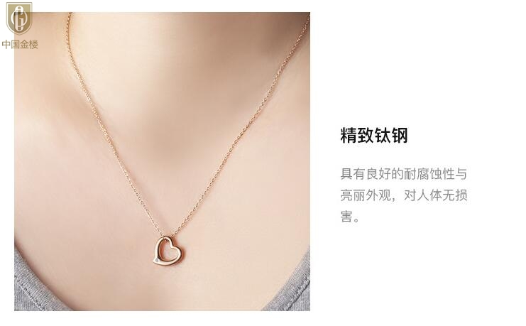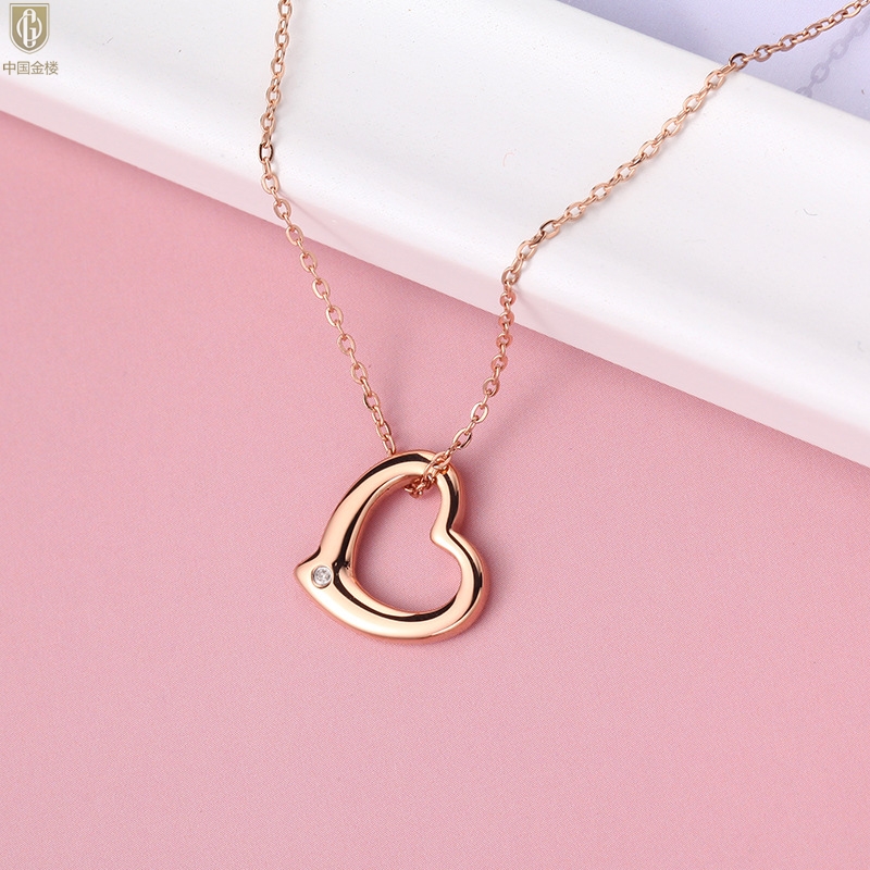 【品名】中国金楼18K镶钻南非真钻爱心项链(空心)
