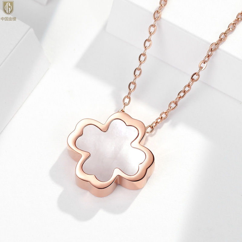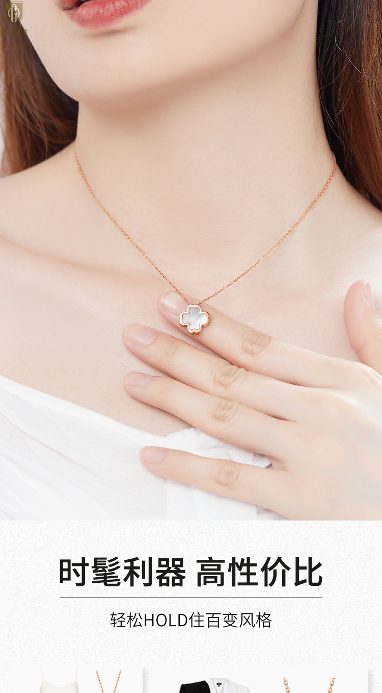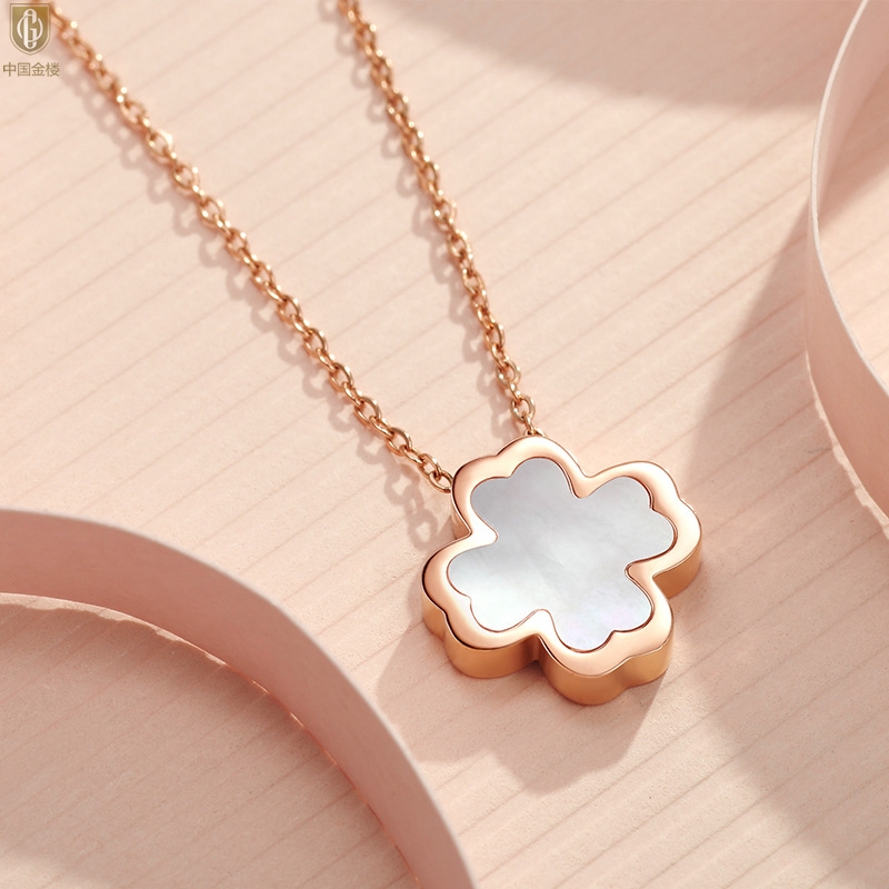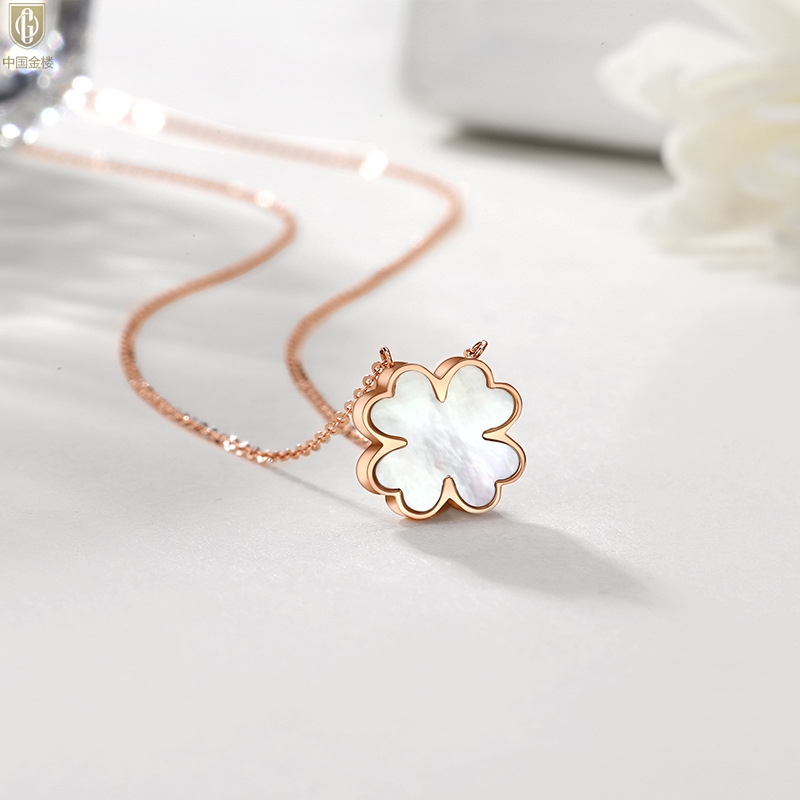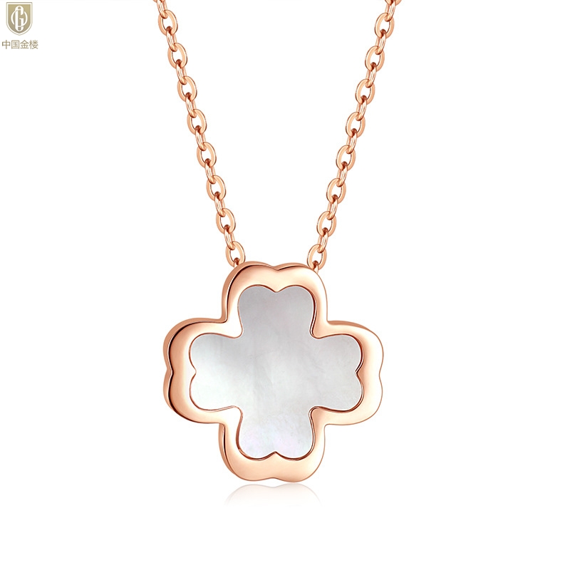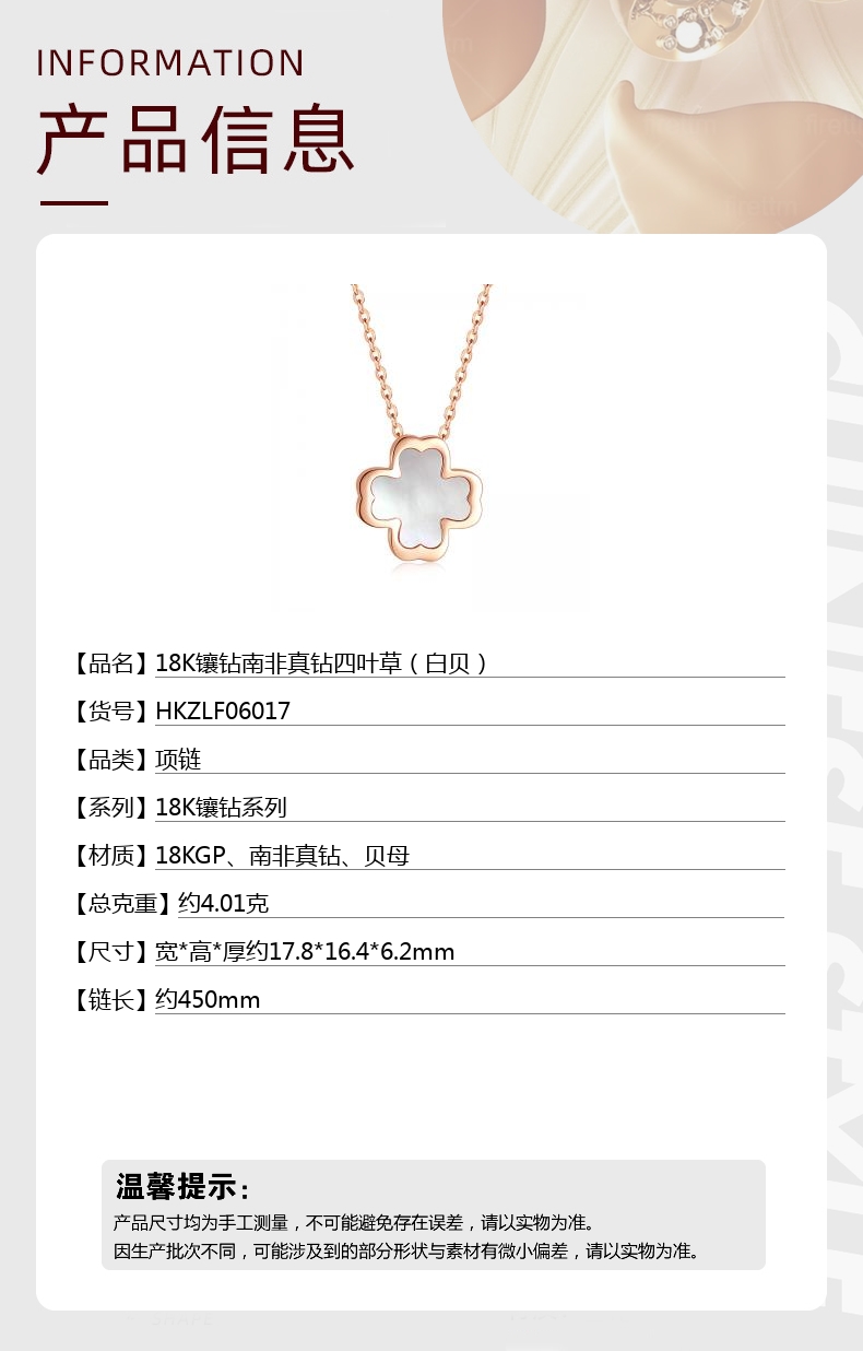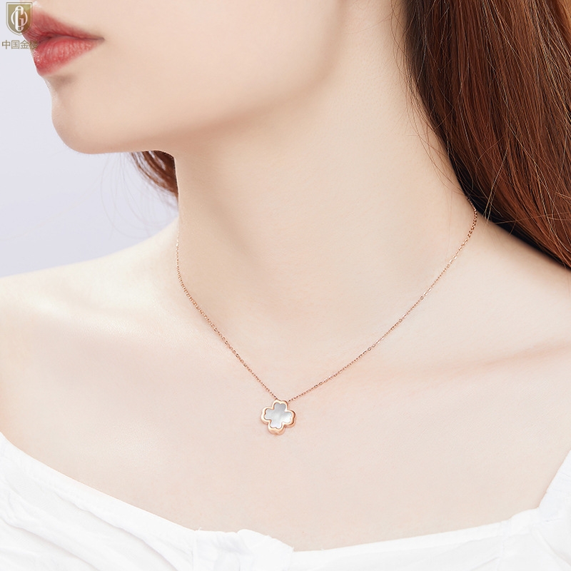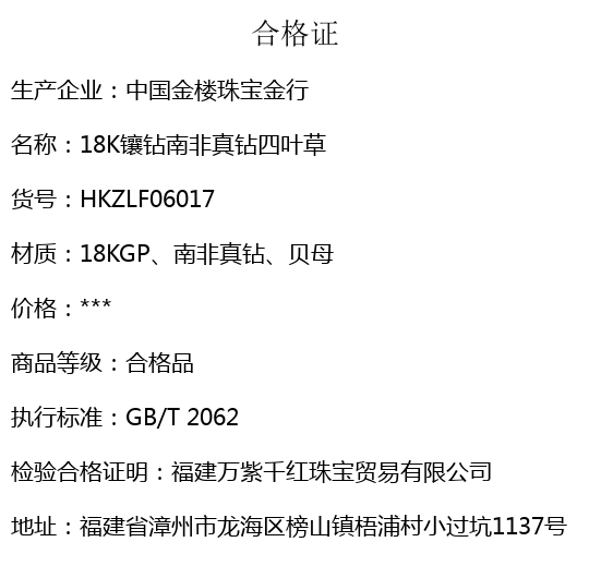 【品名】中国金楼18K镶钻南非真钻四叶草(白贝)