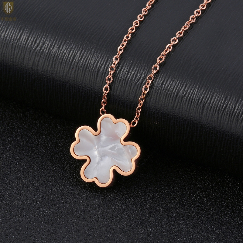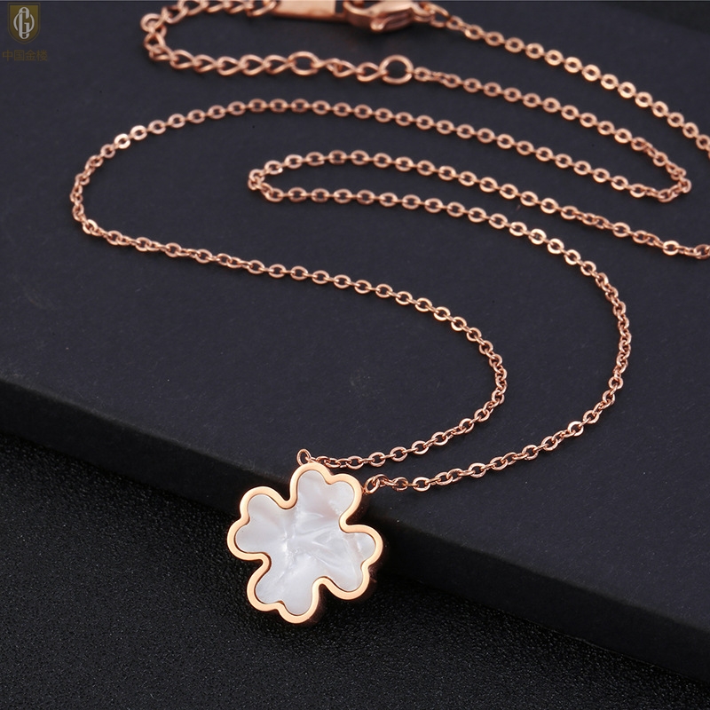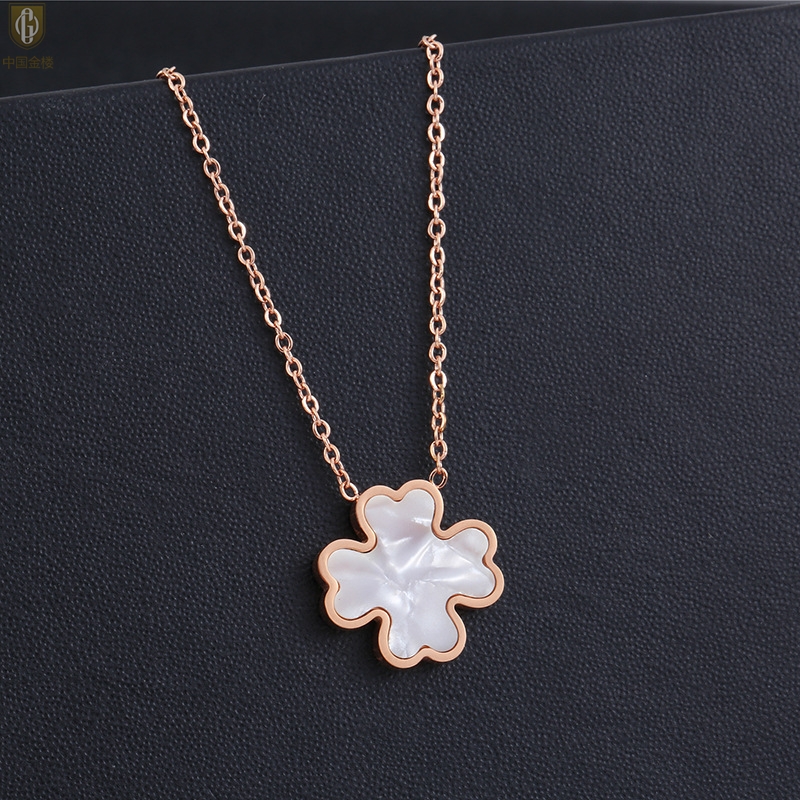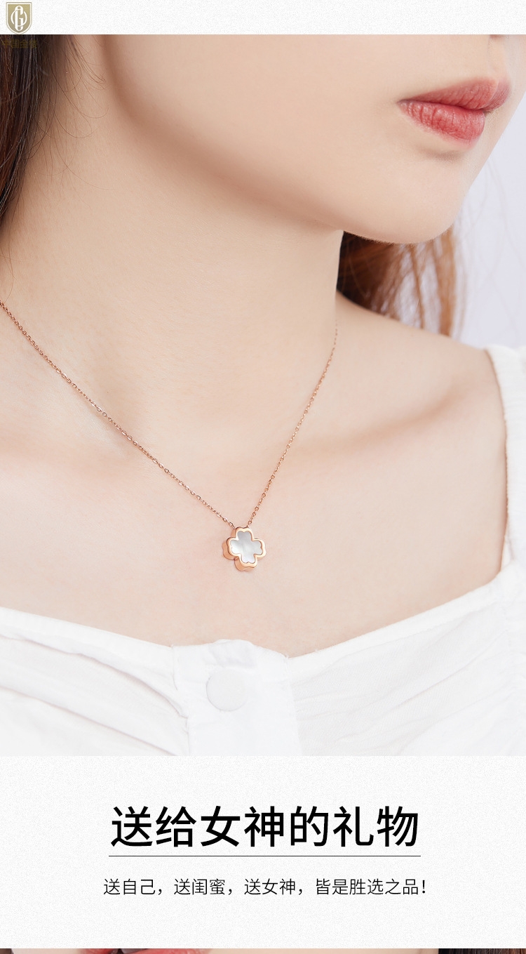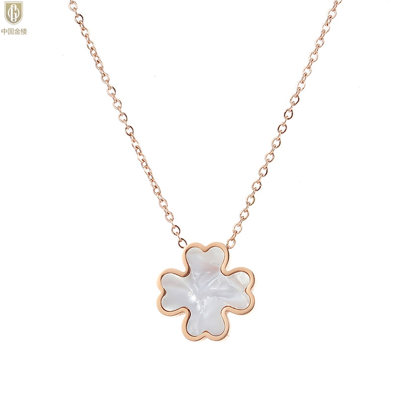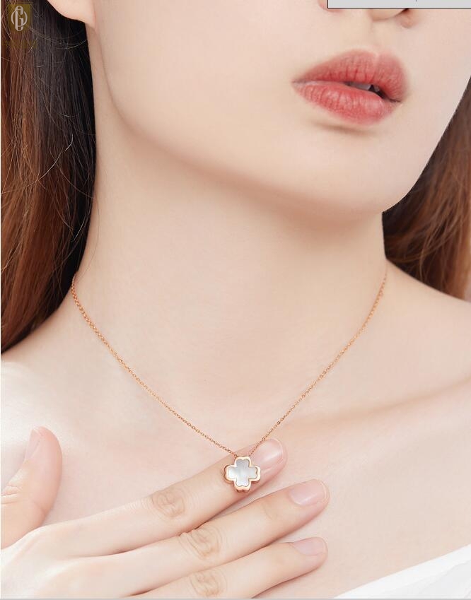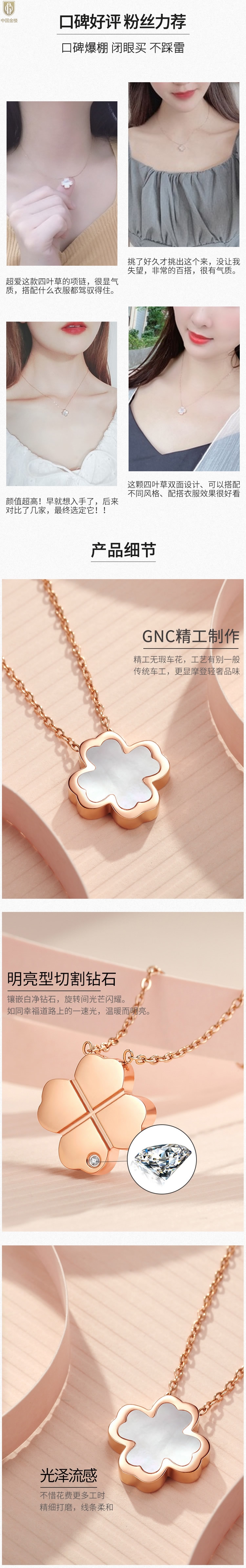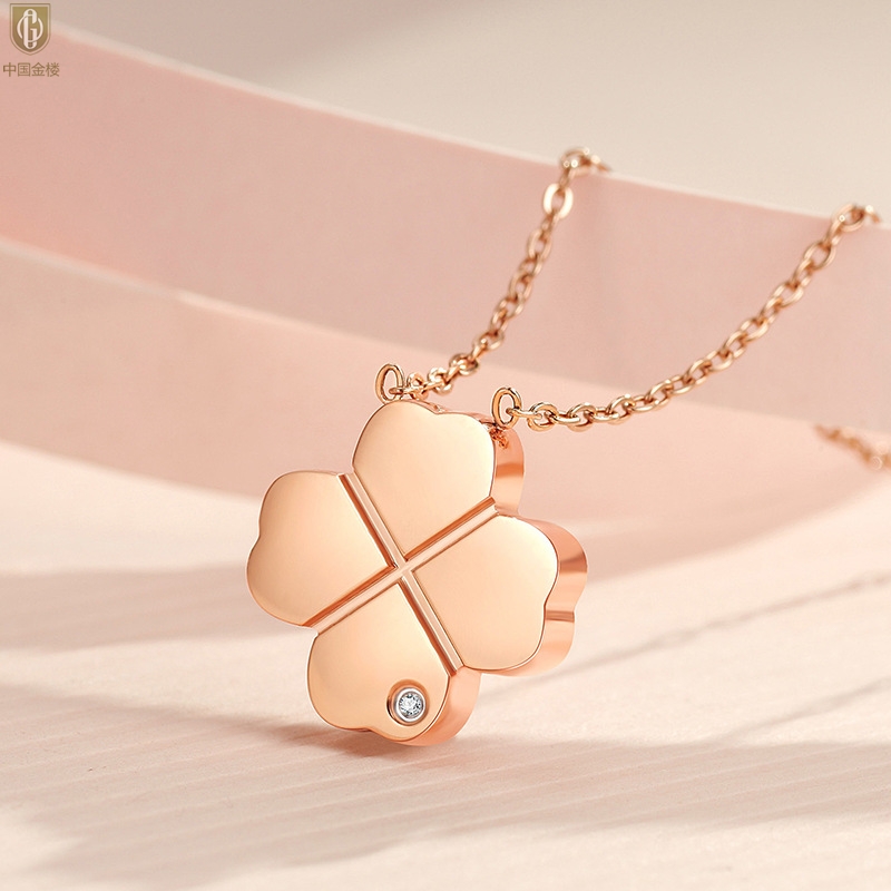 【品名】中国金楼18K镶钻南非真钻四叶草(白贝)