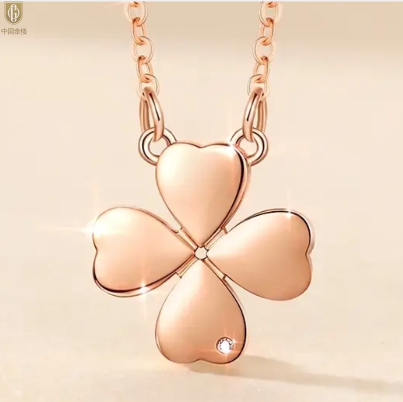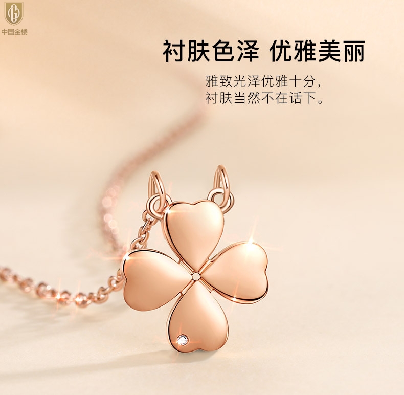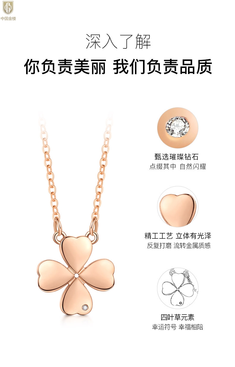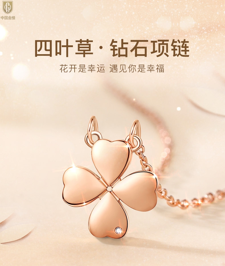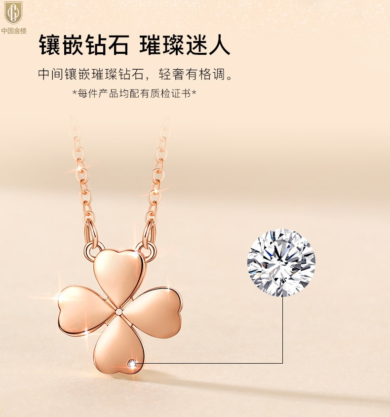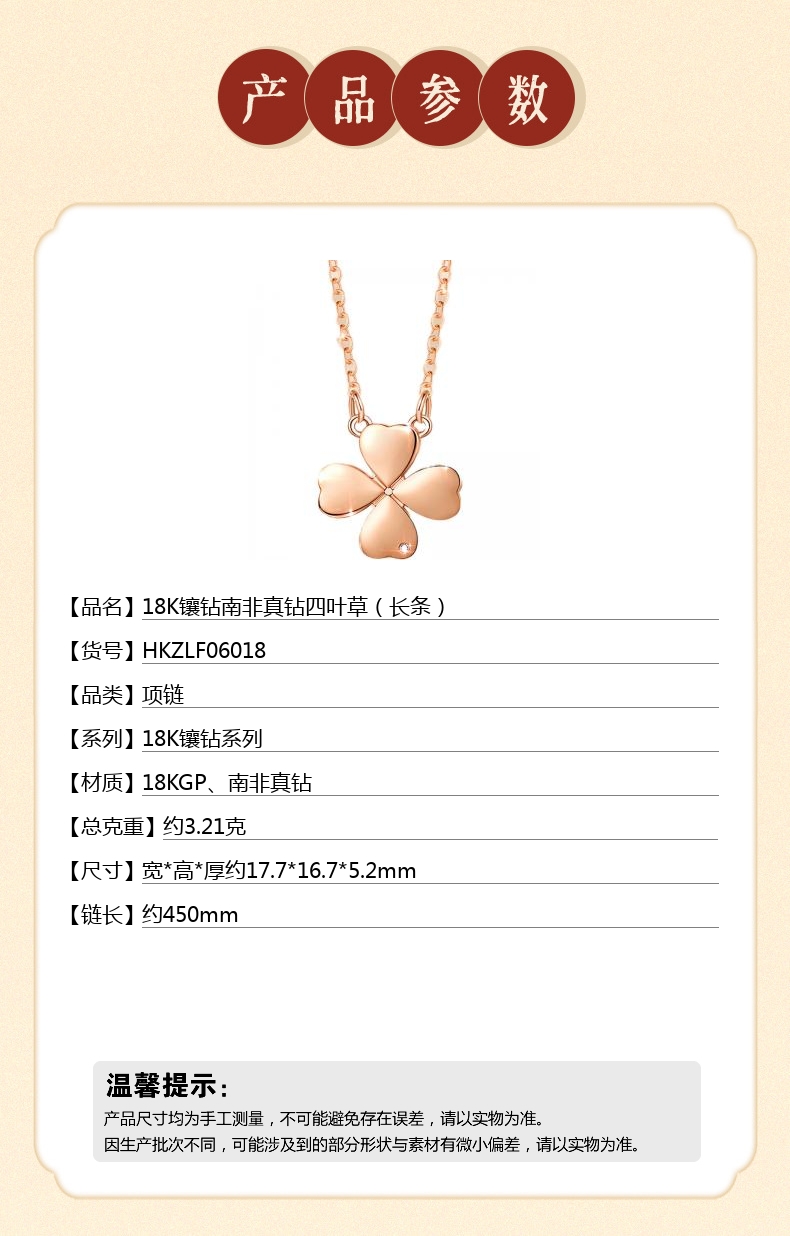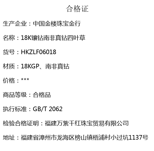 【品名】中国金楼18K镶钻南非真钻四叶草(长条)