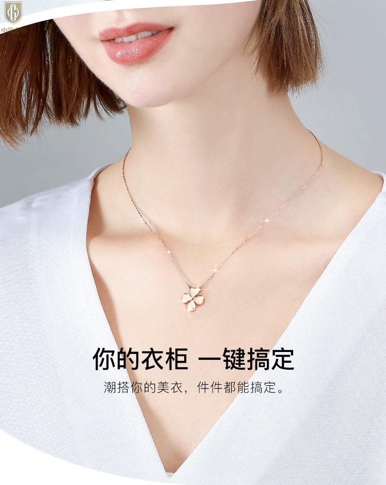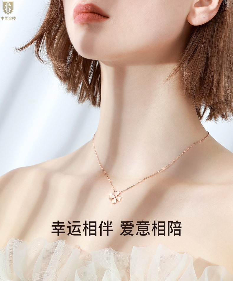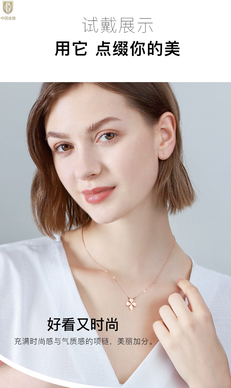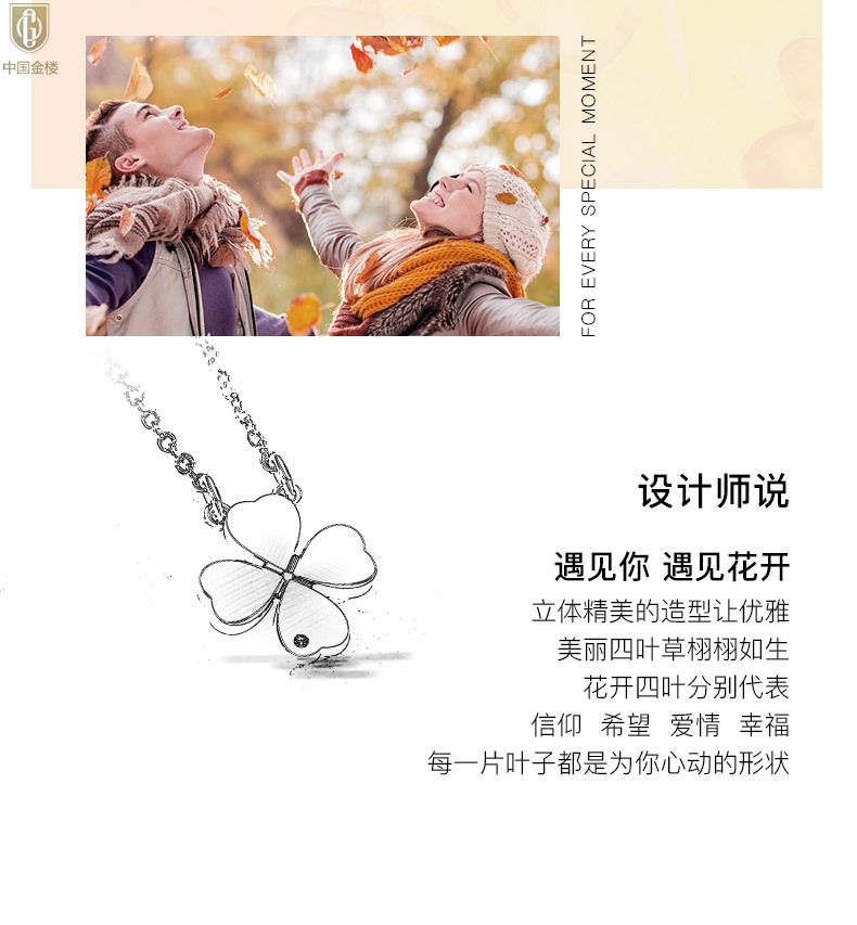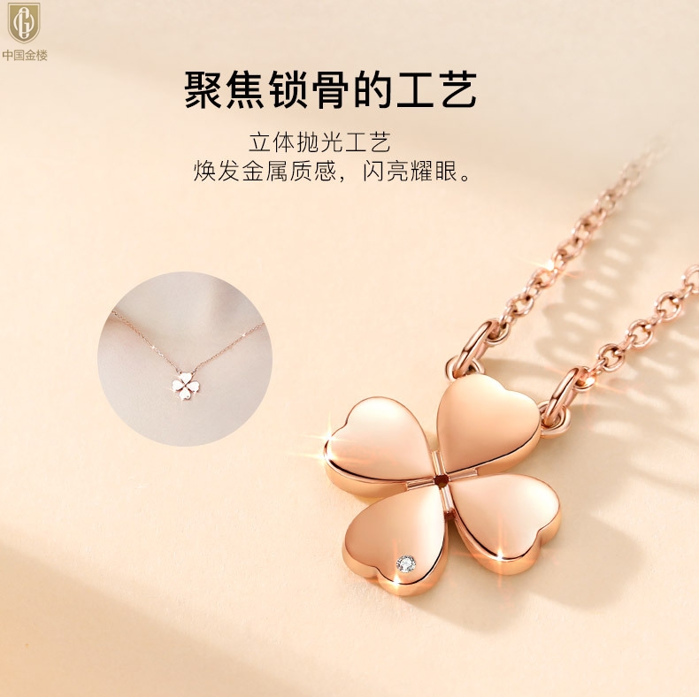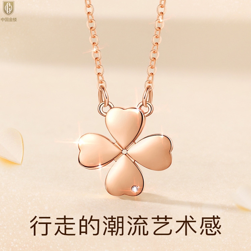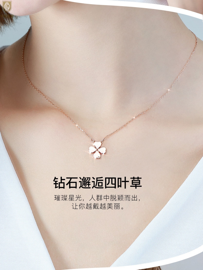 【品名】中国金楼18K镶钻南非真钻四叶草(长条)