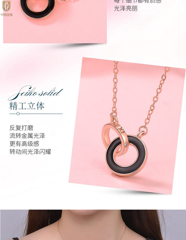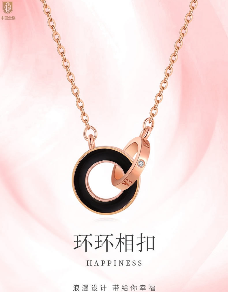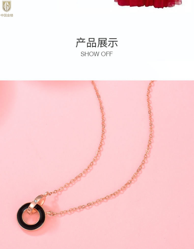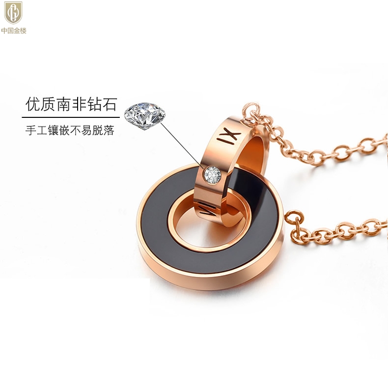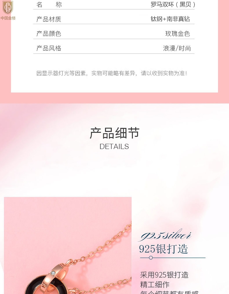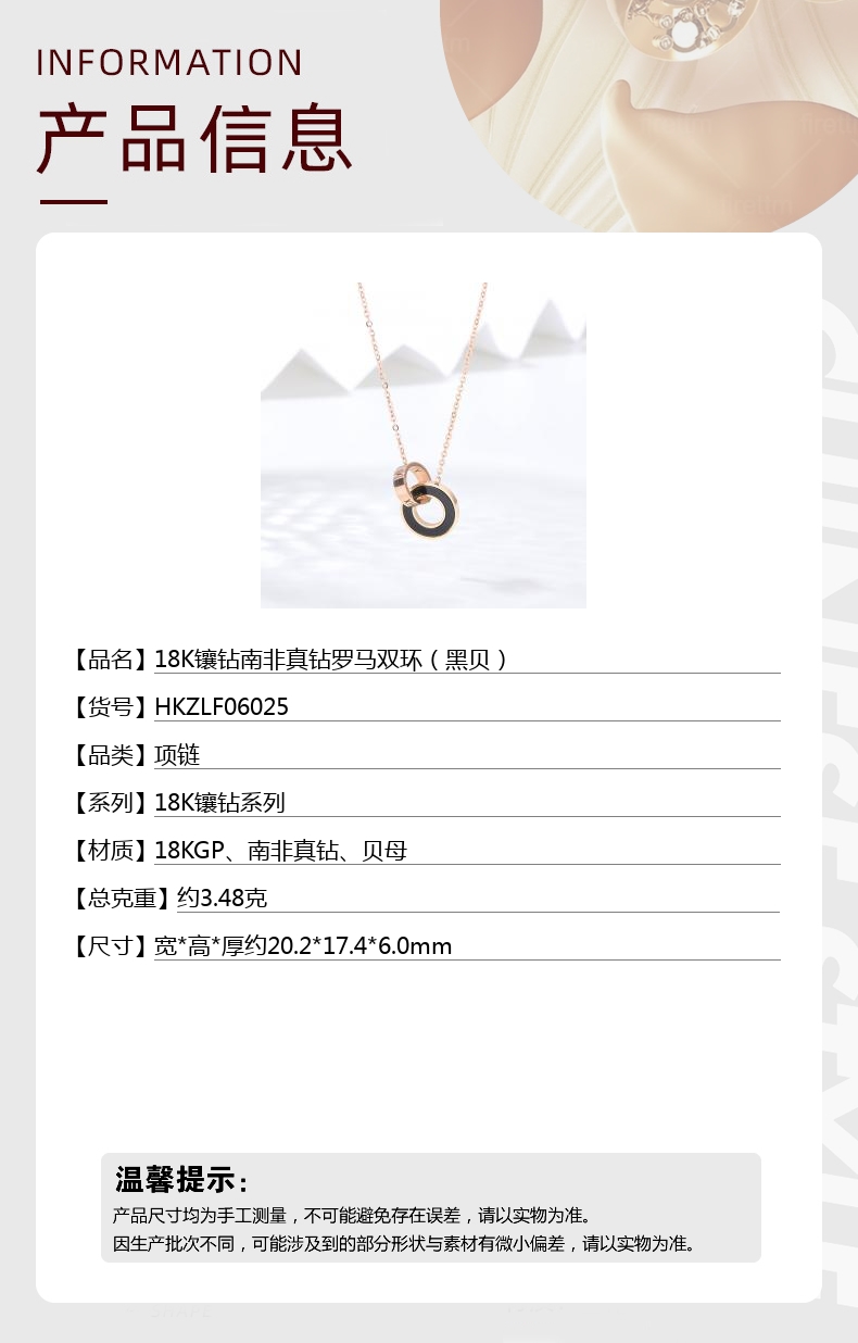 【品名】中国金楼18K镶钻南非真钻罗马双环(黑贝)