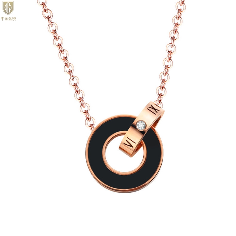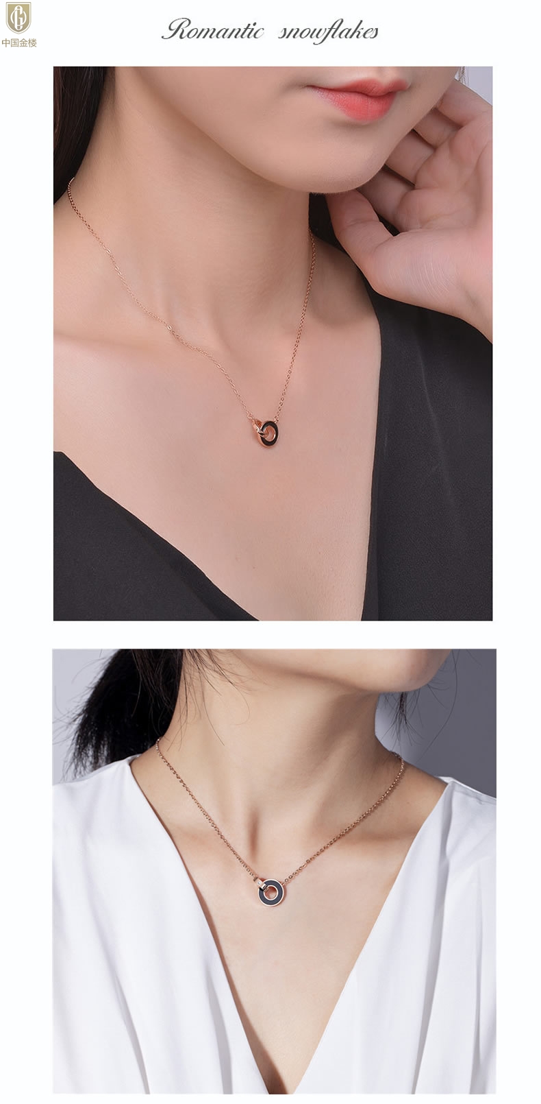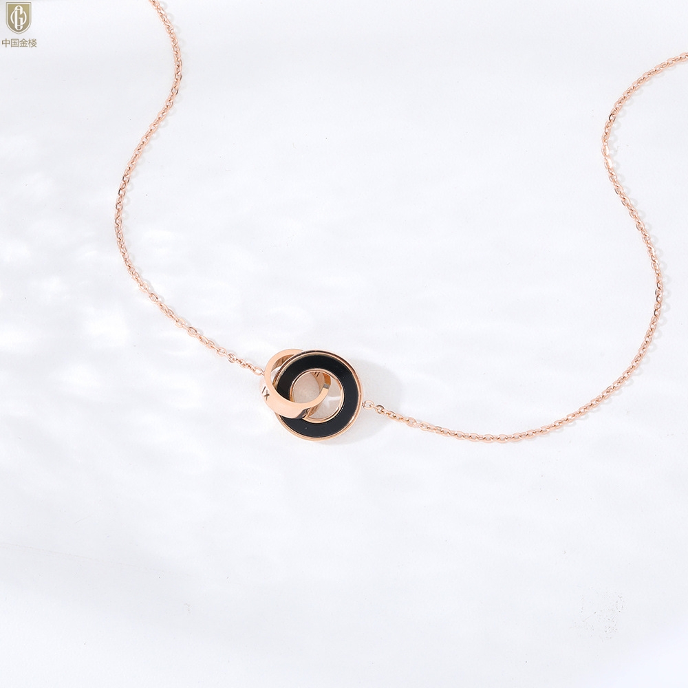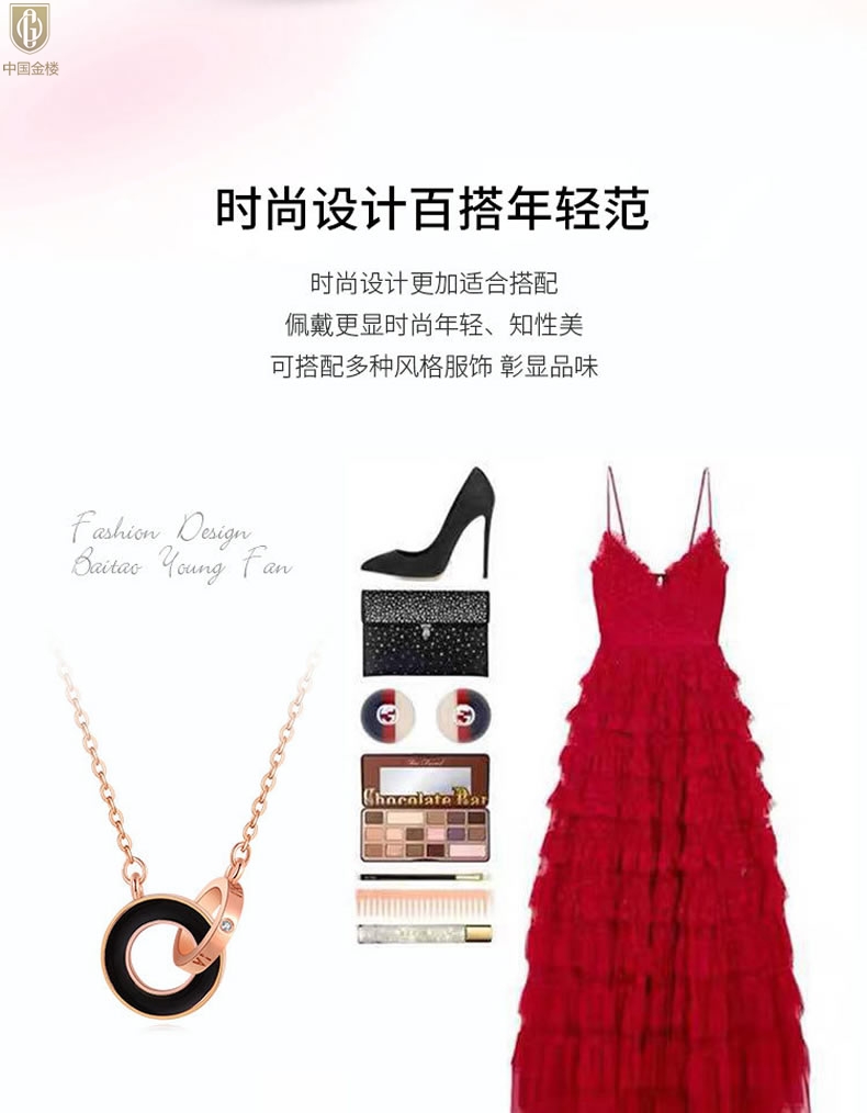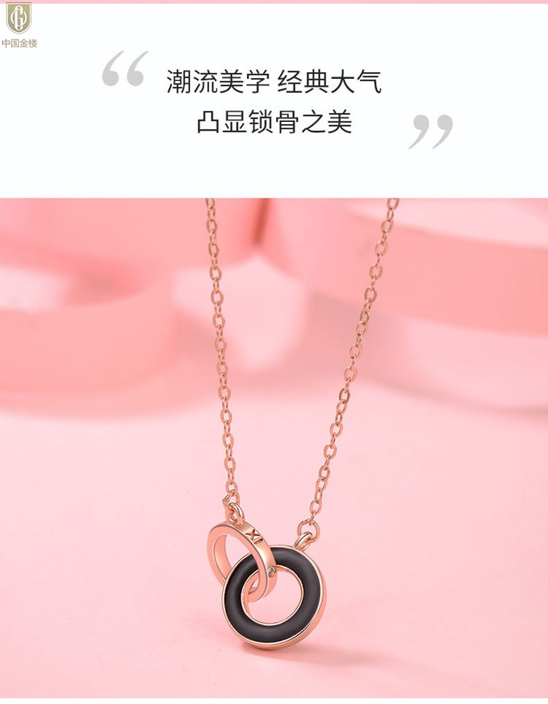 【品名】中国金楼18K镶钻南非真钻罗马双环(黑贝)