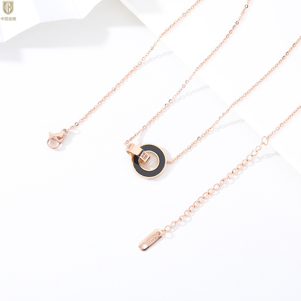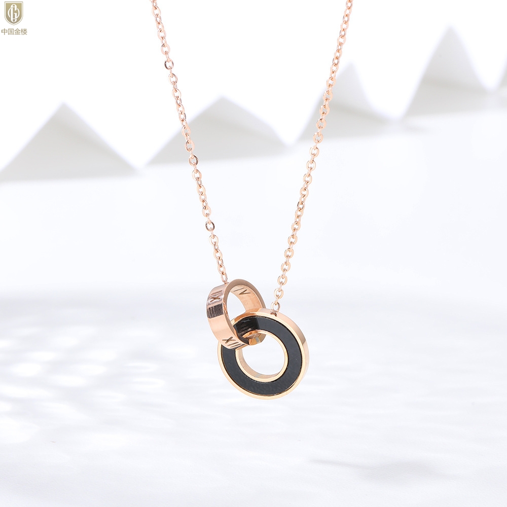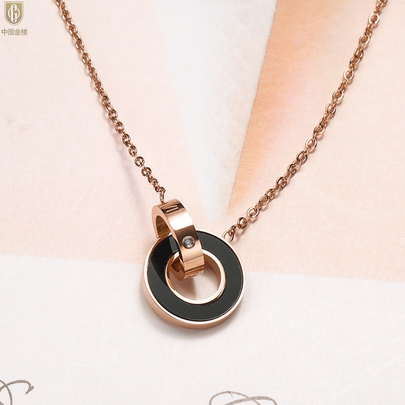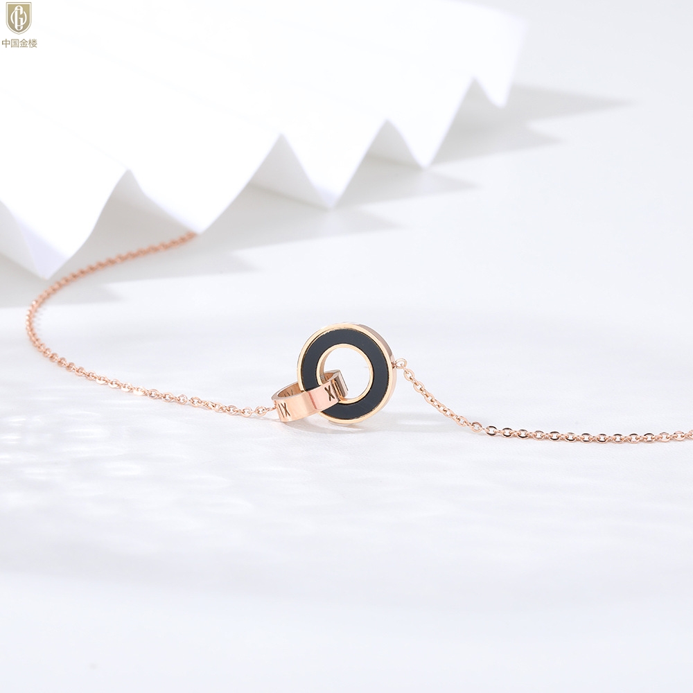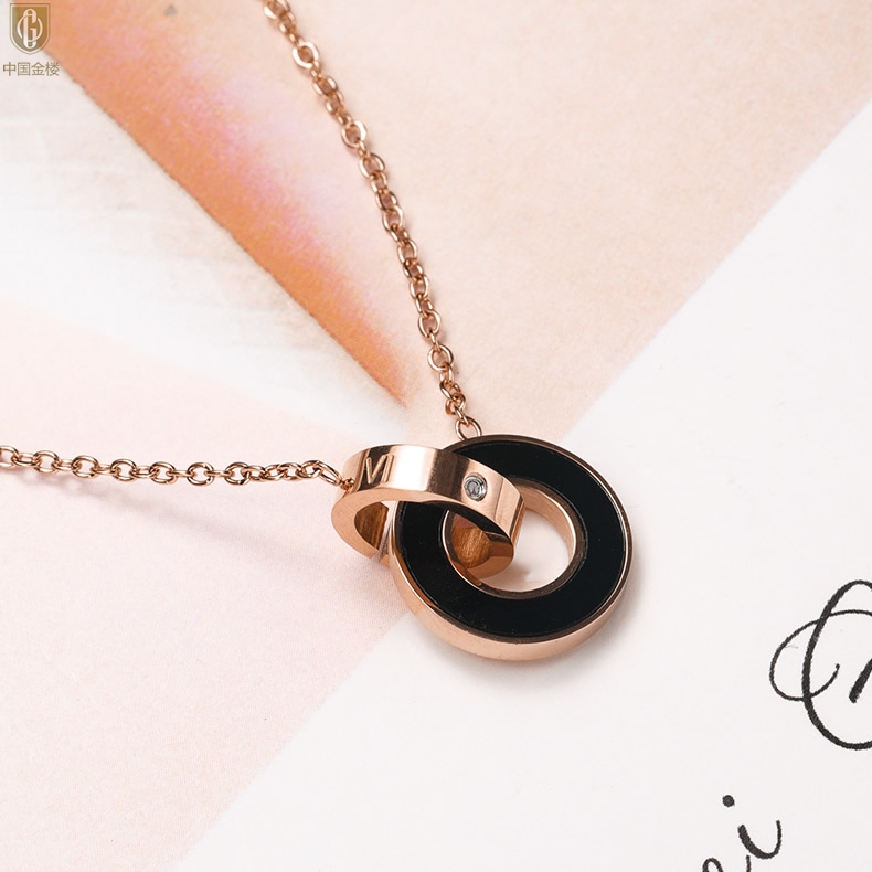 【品名】中国金楼18K镶钻南非真钻罗马双环(黑贝)