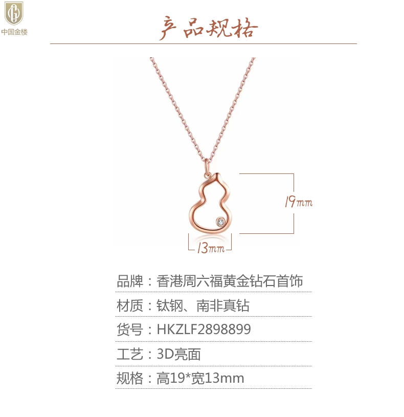 【品名】中国金楼18K镶钻南非真钻葫芦