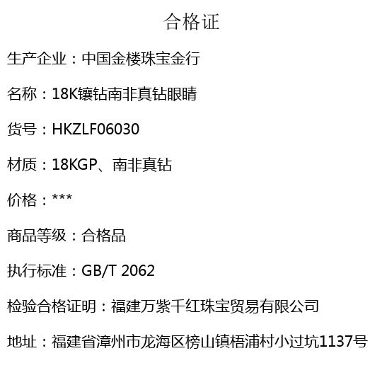 【品名】中国金楼18K镶钻南非真钻眼睛