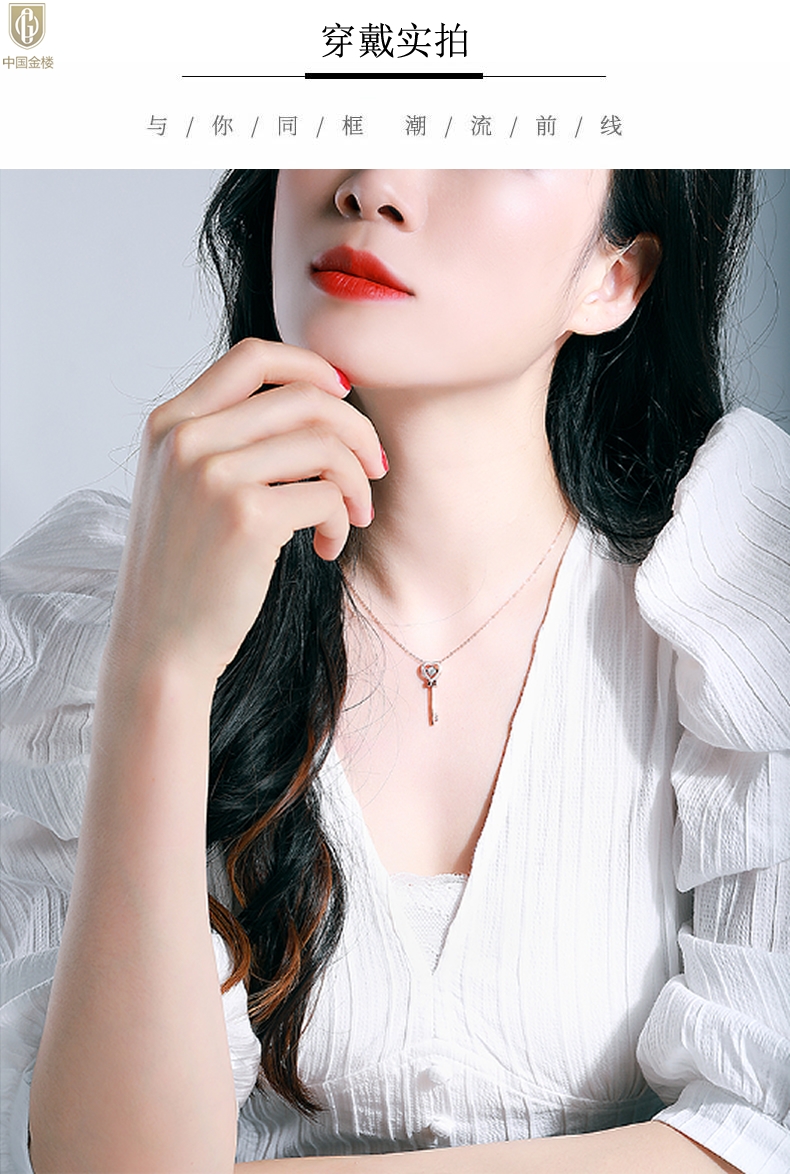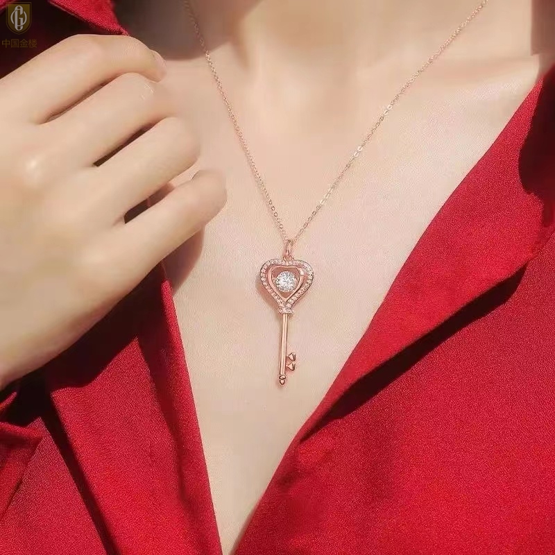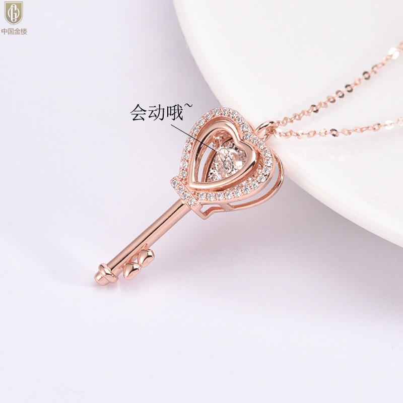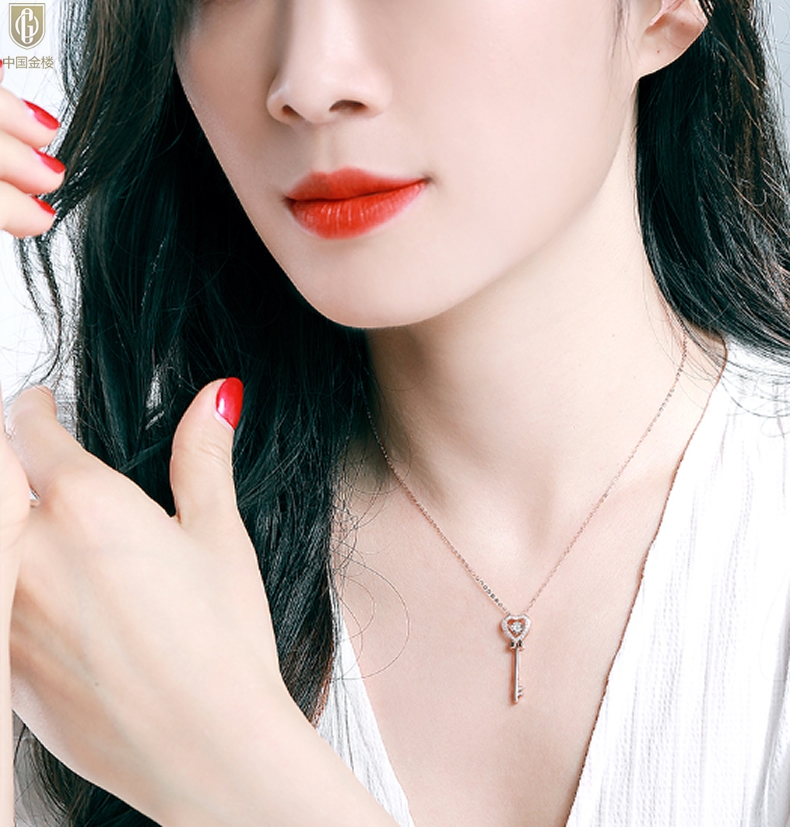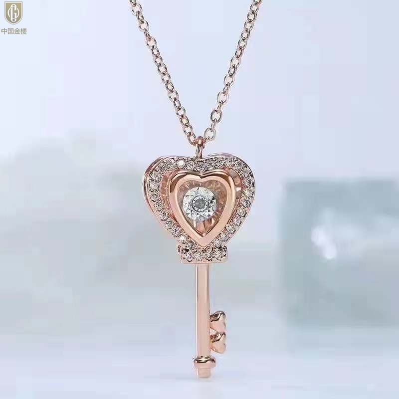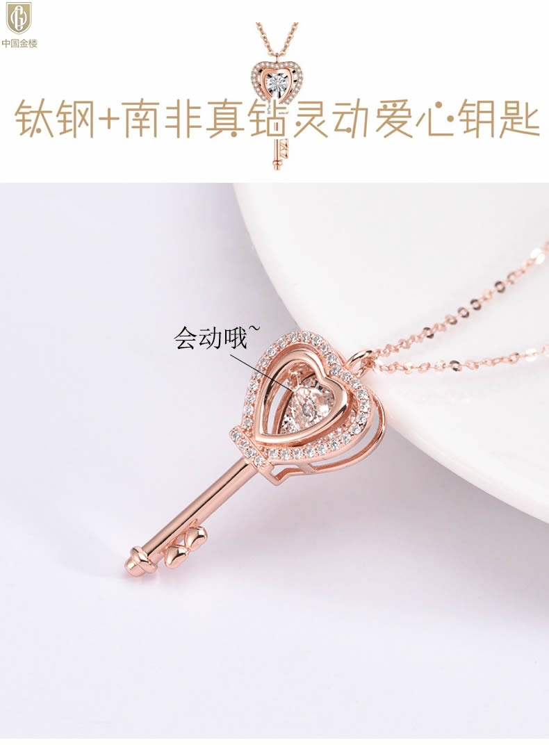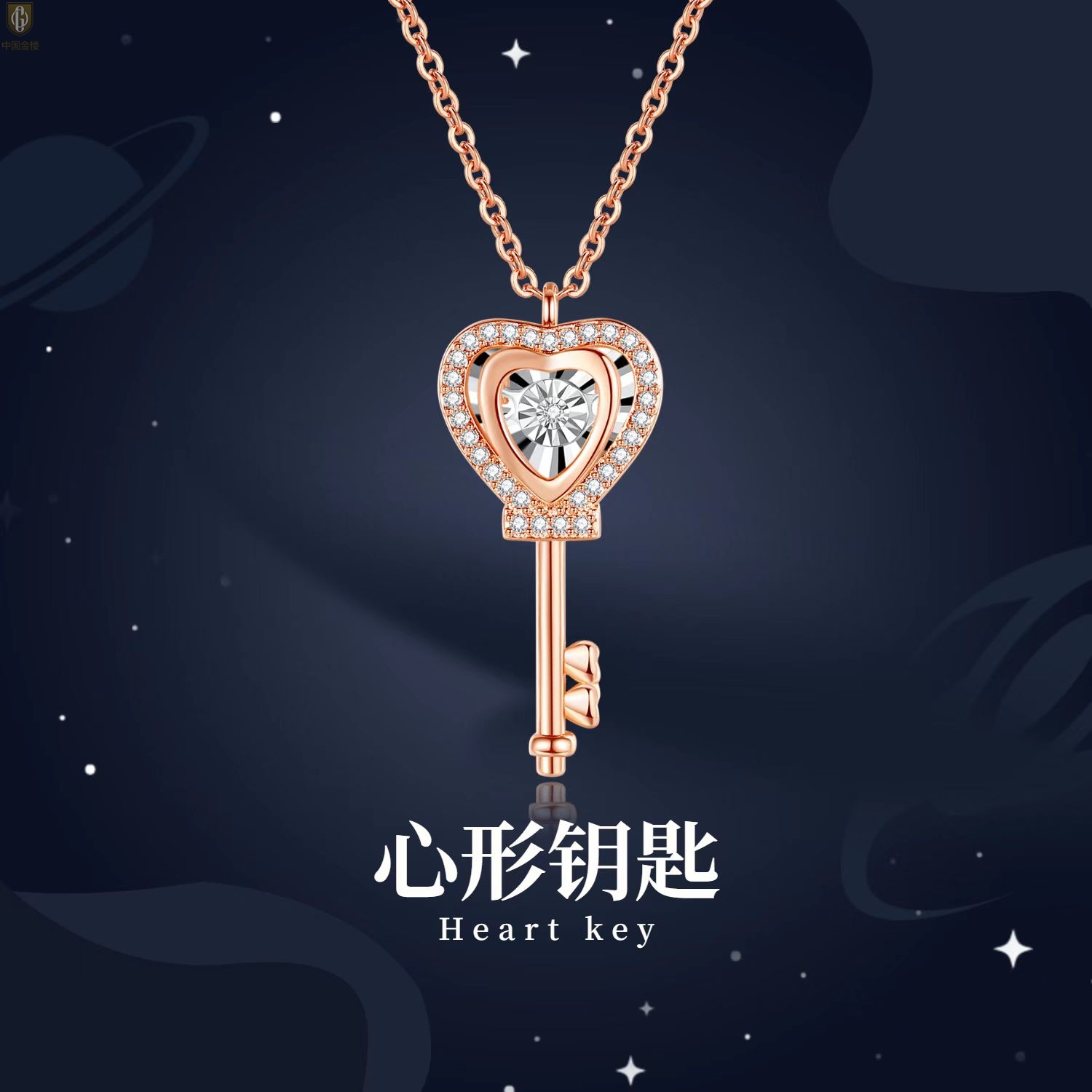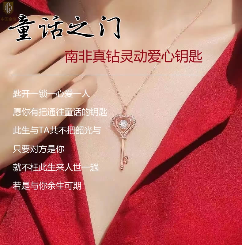 【品名】中国金楼18K镶钻南非真钻灵动爱心钥匙