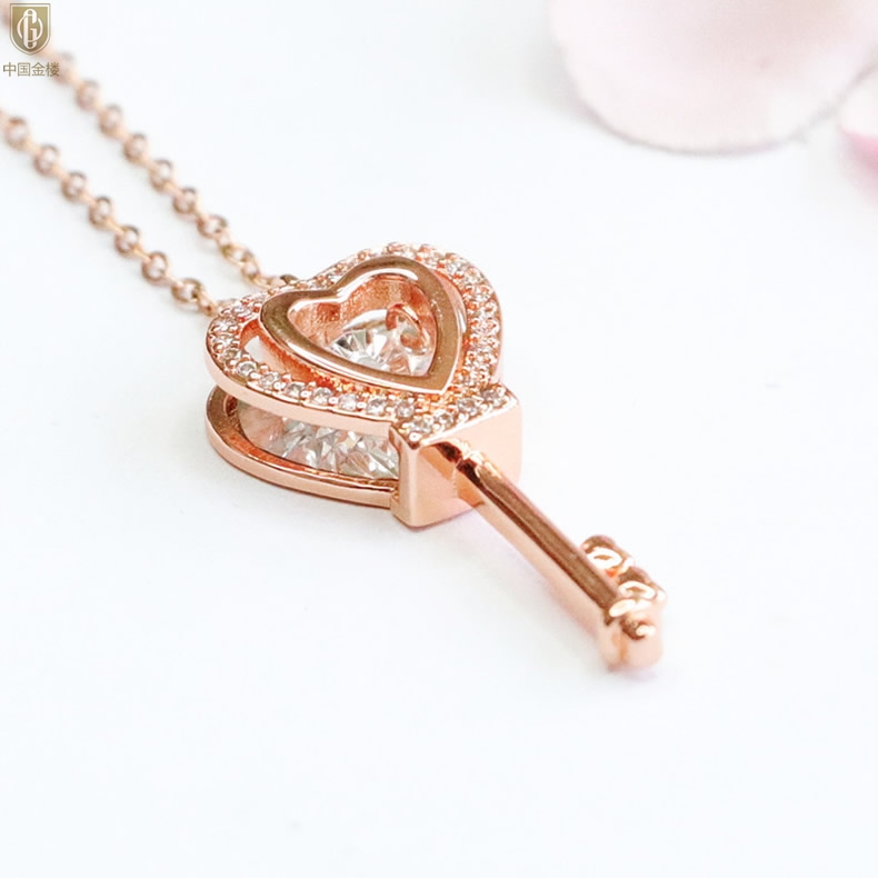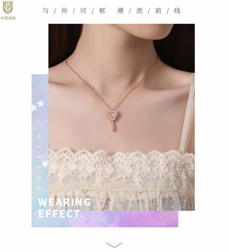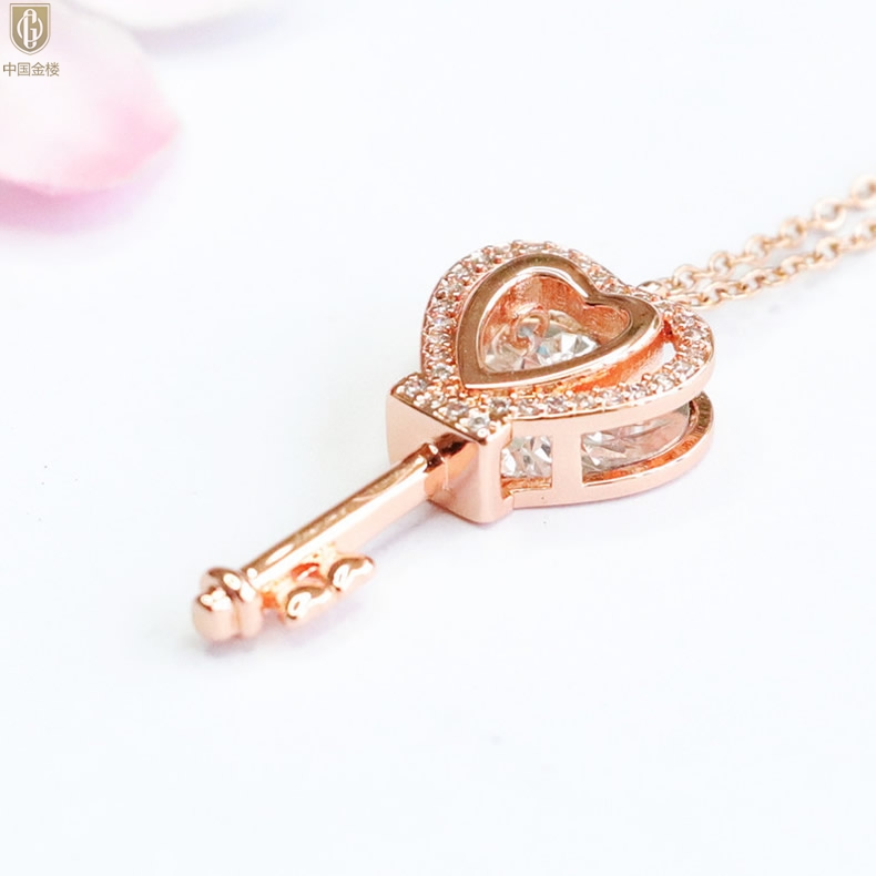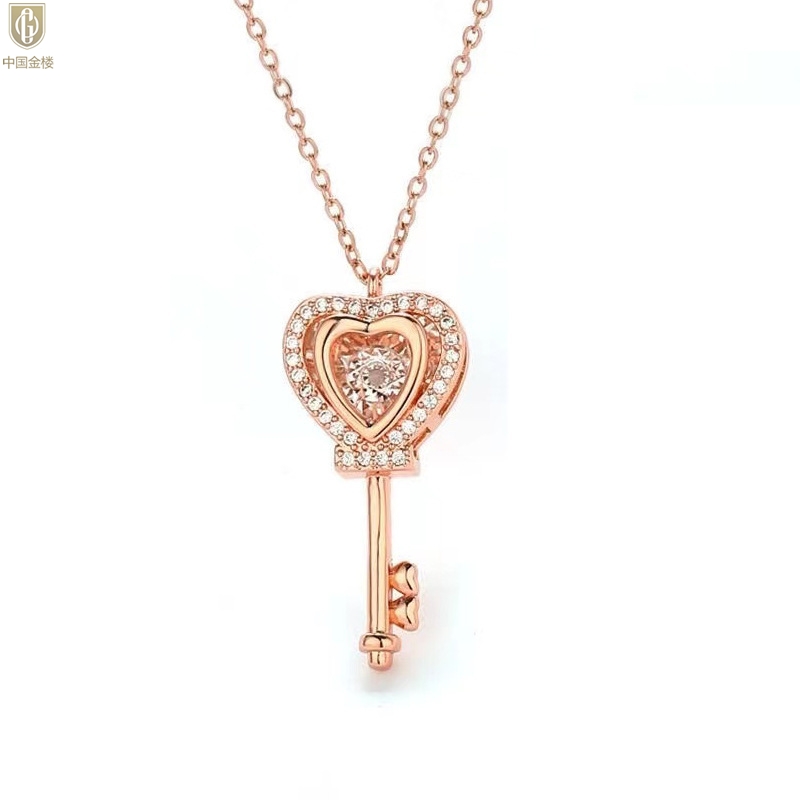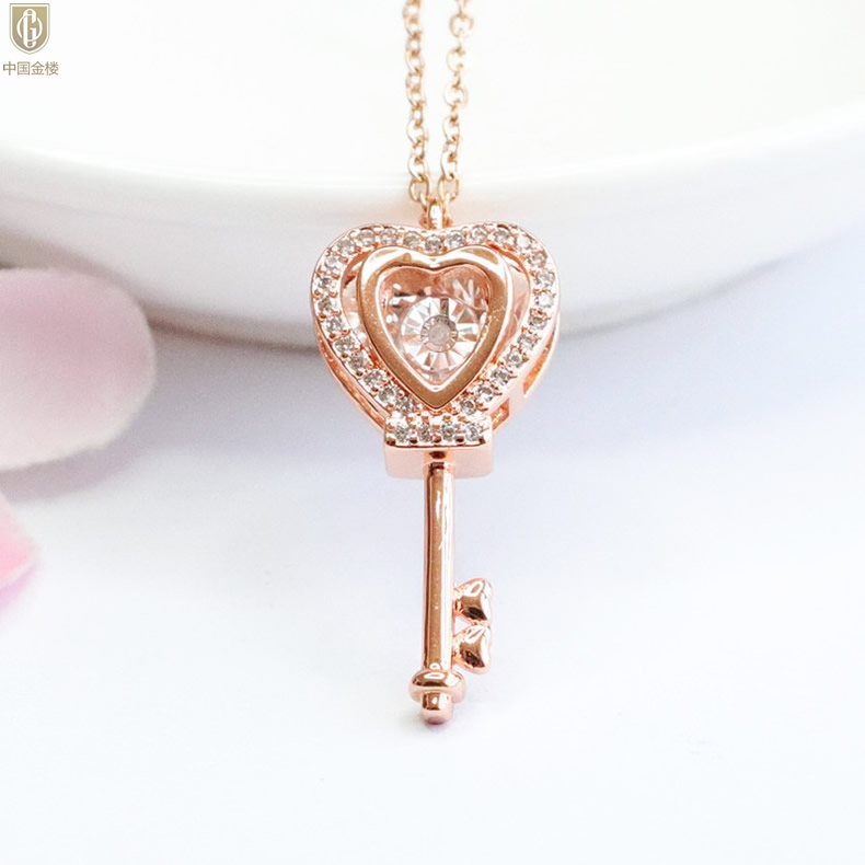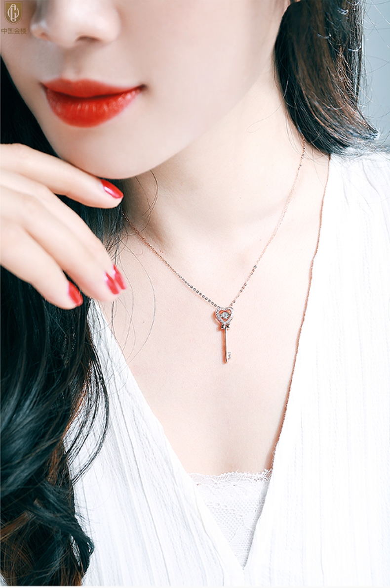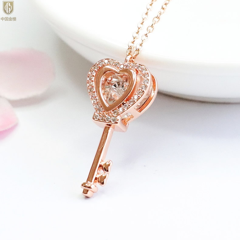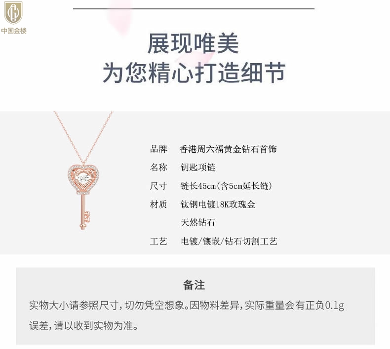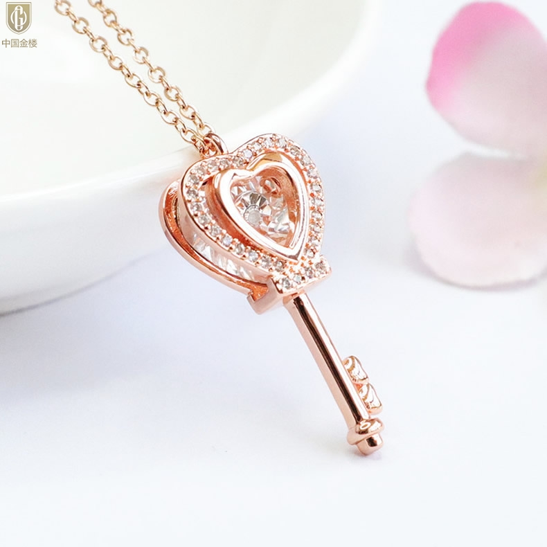 【品名】中国金楼18K镶钻南非真钻灵动爱心钥匙
