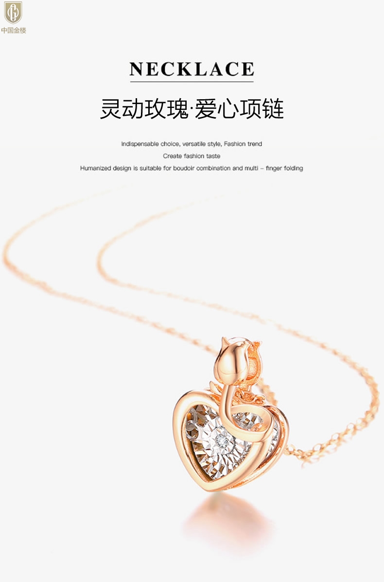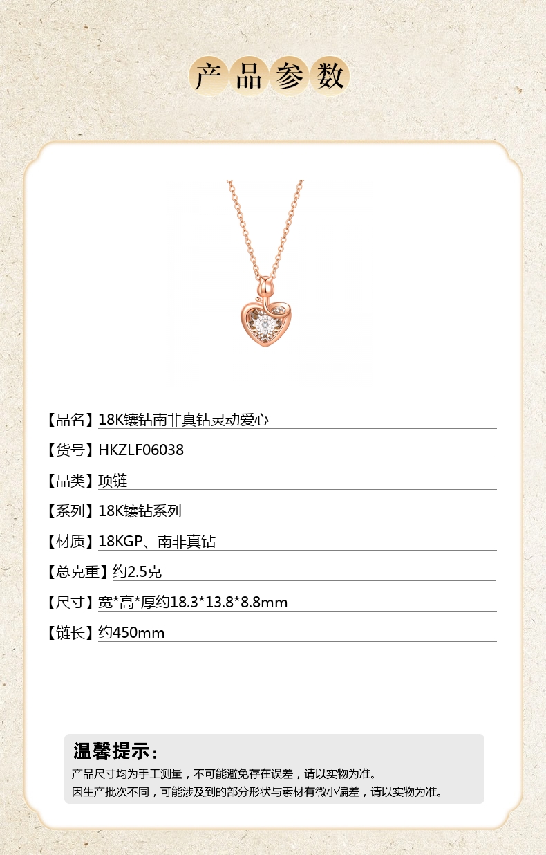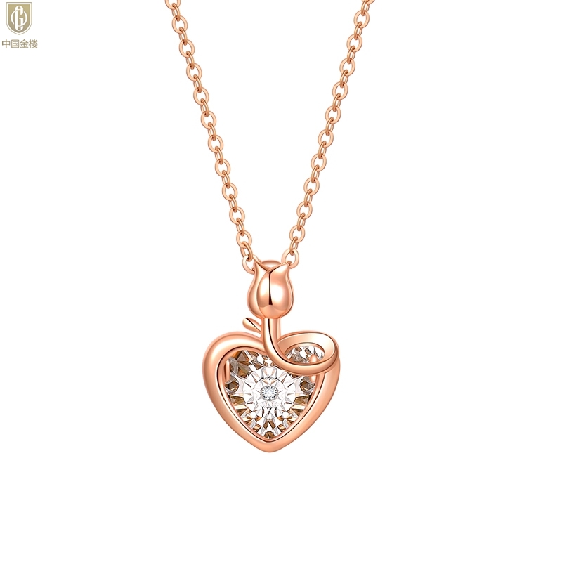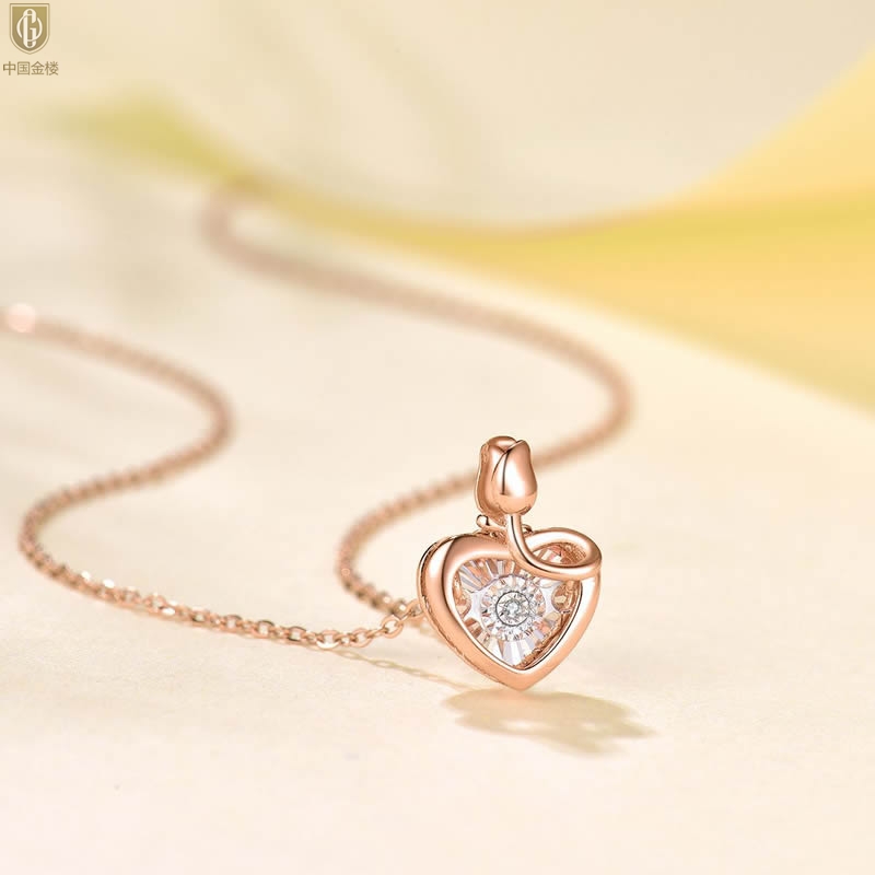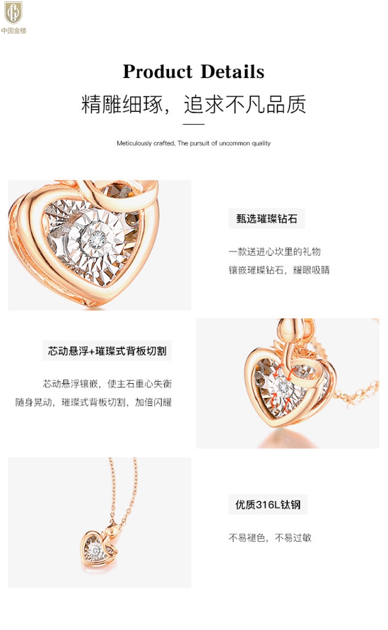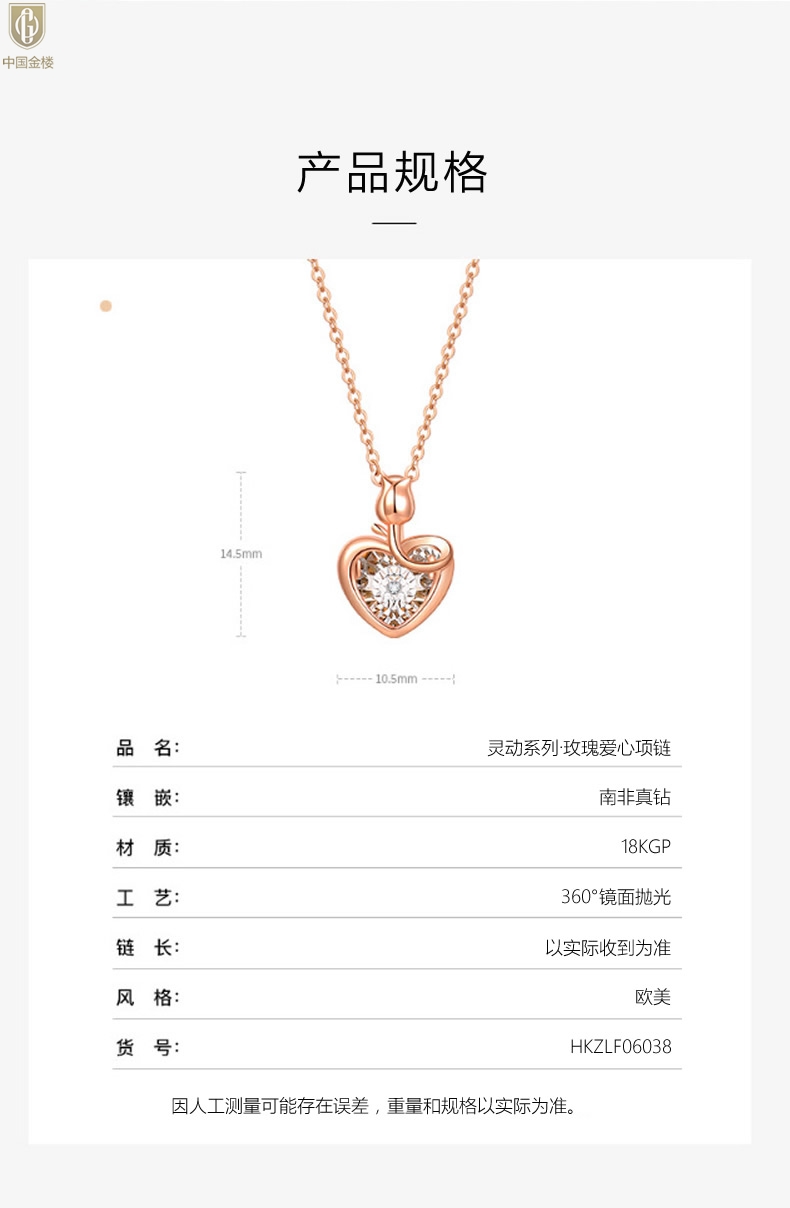 【品名】中国金楼18K镶钻南非真钻灵动爱心