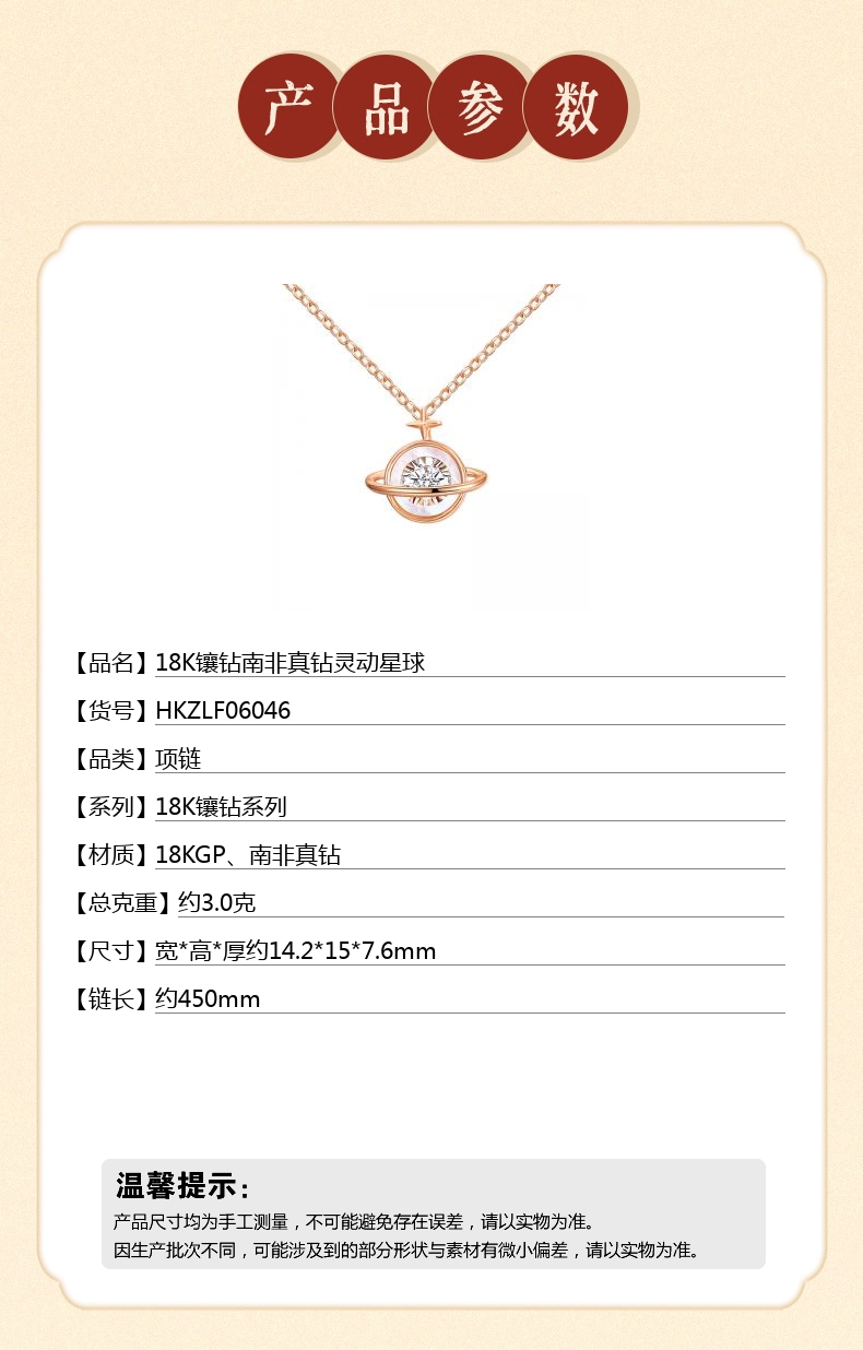 【品名】中国金楼18K镶钻南非真钻灵动星球