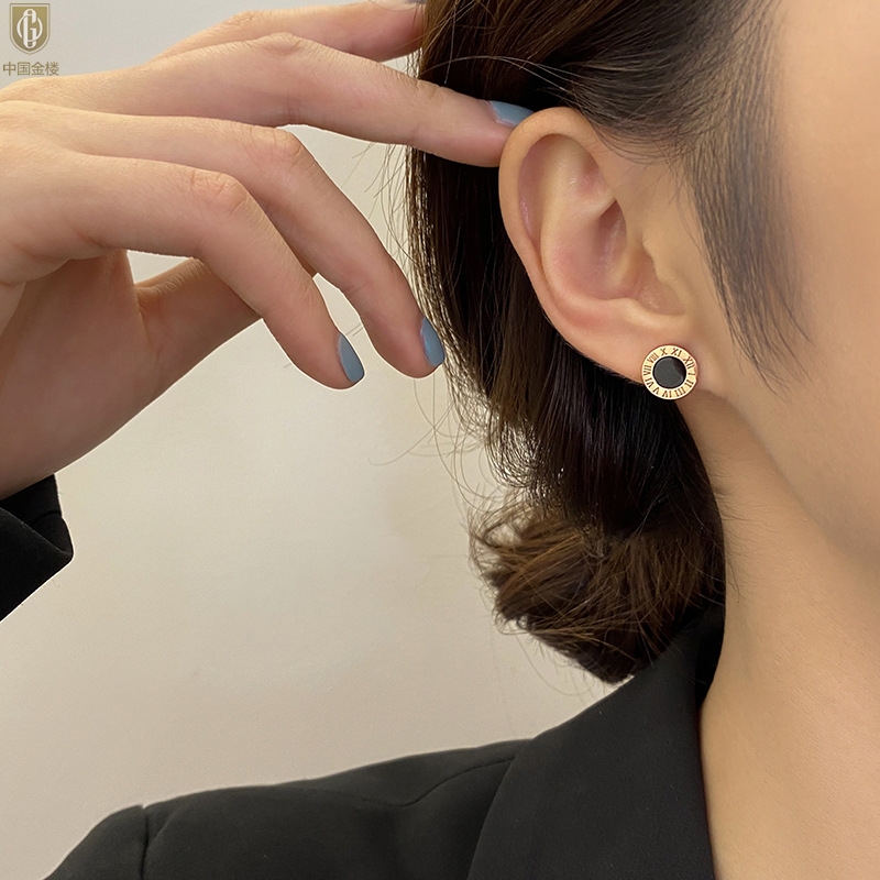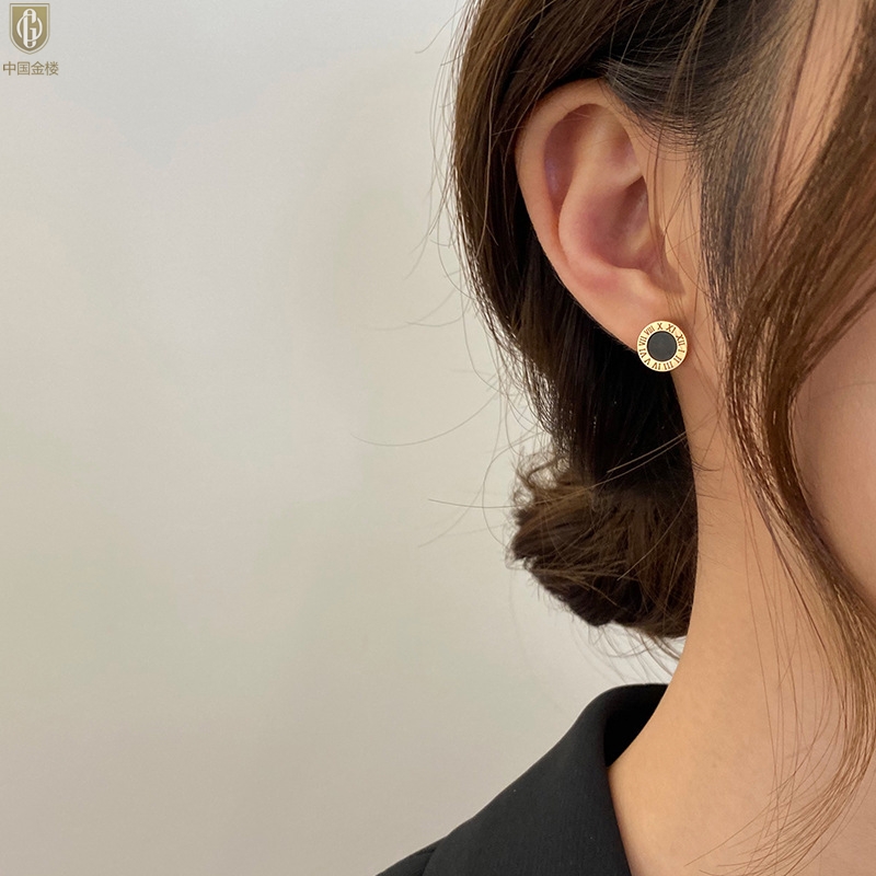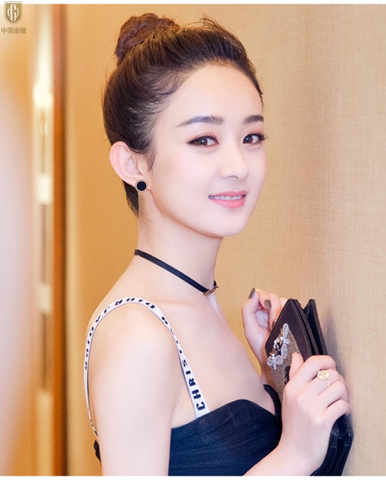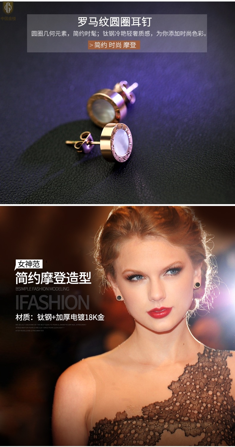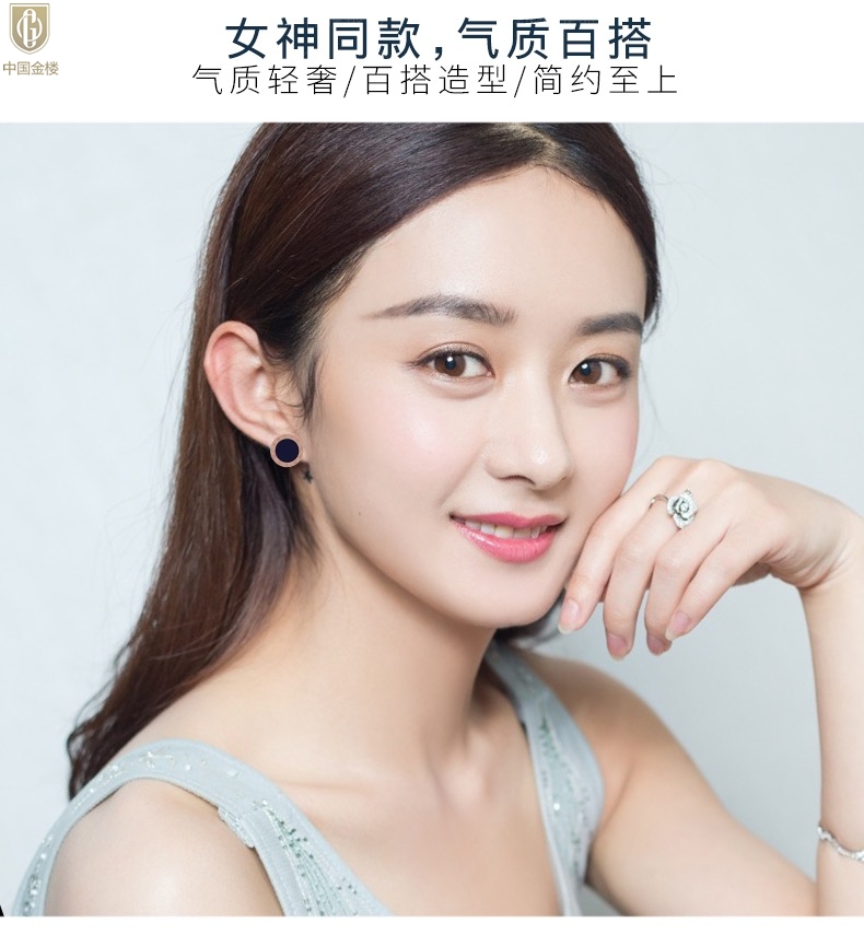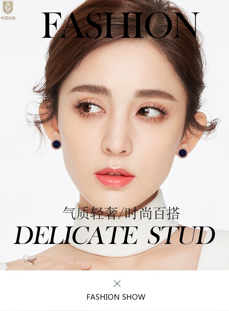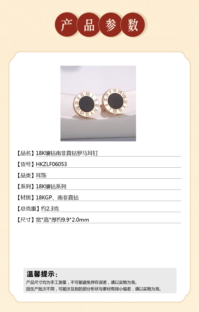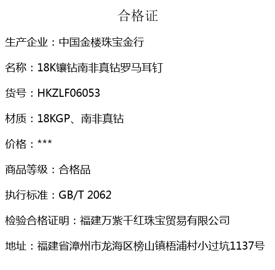 【品名】中国金楼18K镶钻南非真钻罗马耳钉