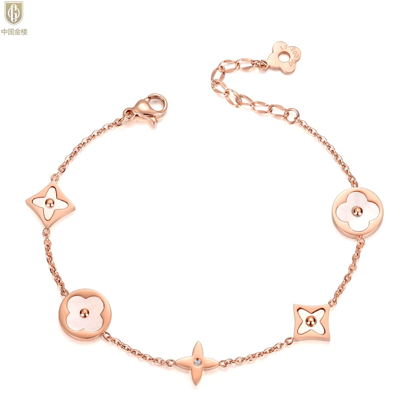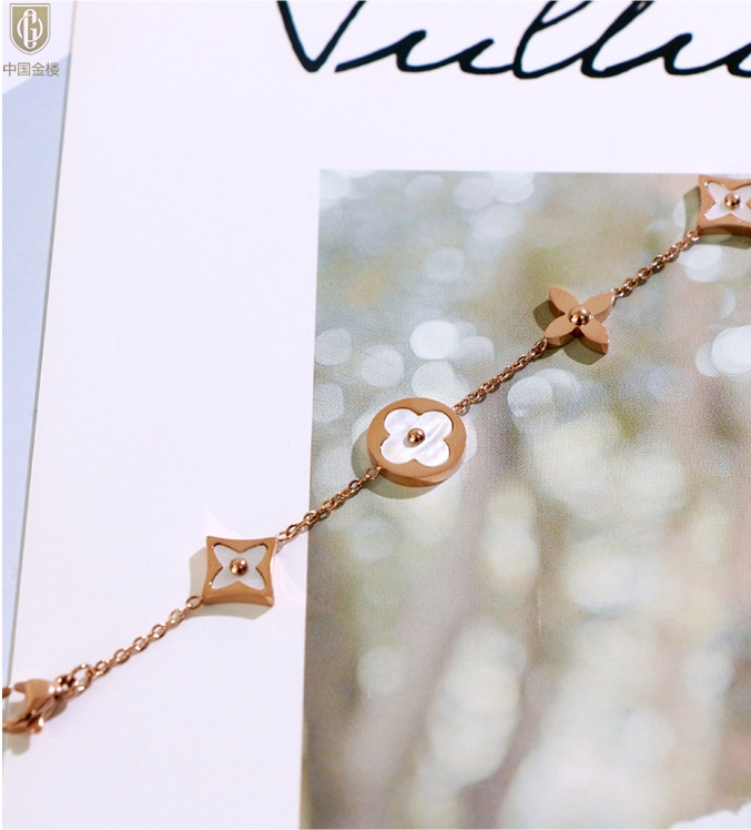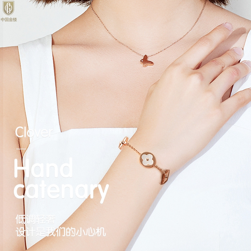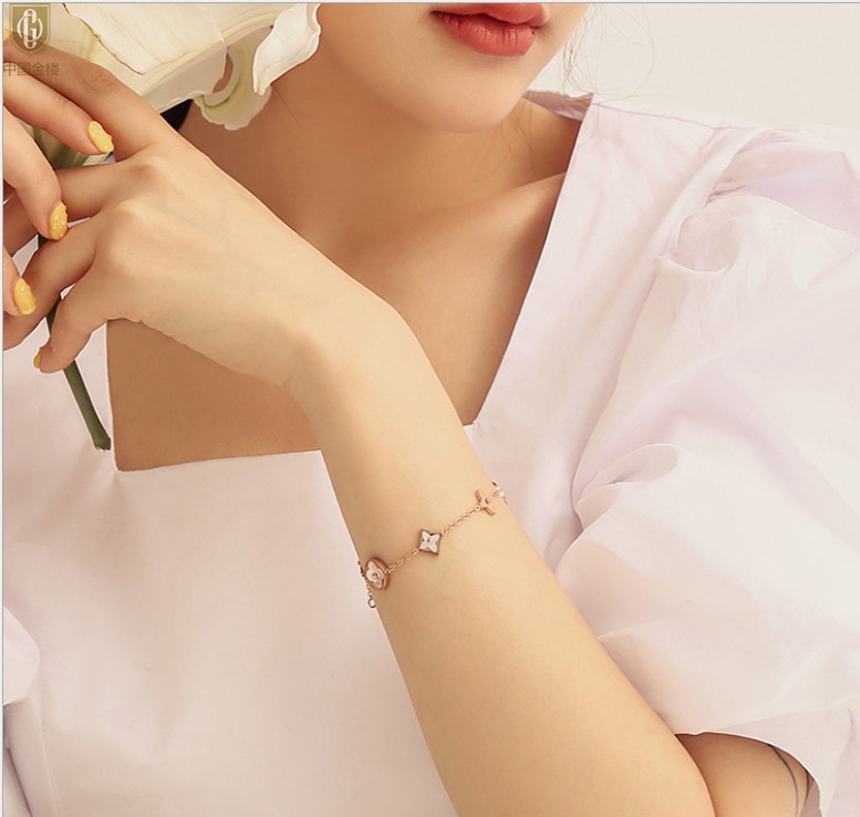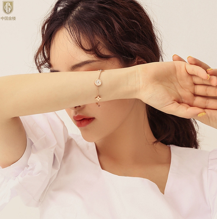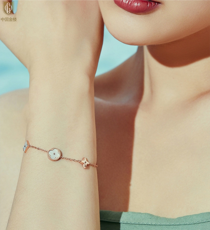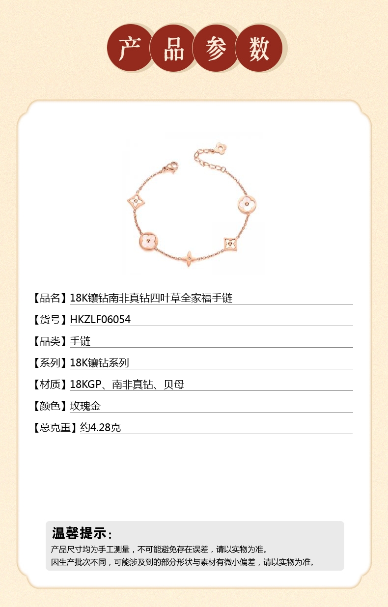 【品名】中国金楼18K镶钻南非真钻四叶草全家福手链