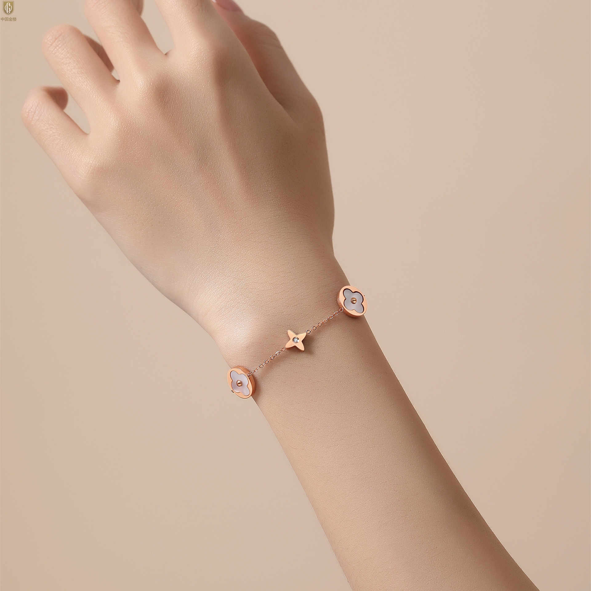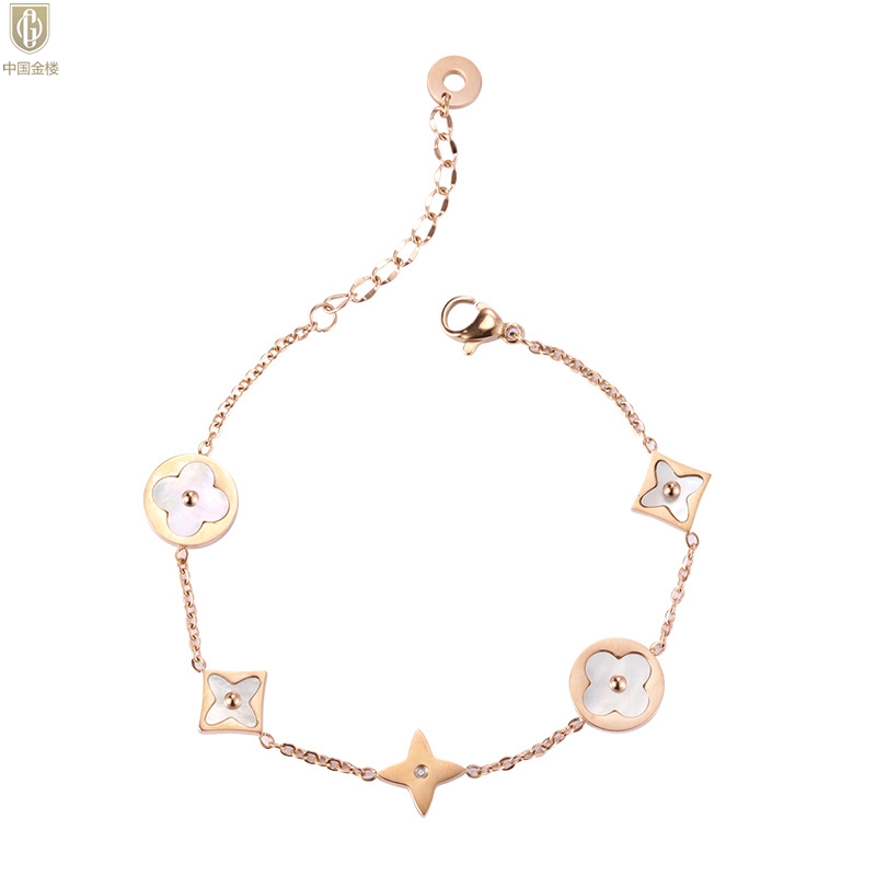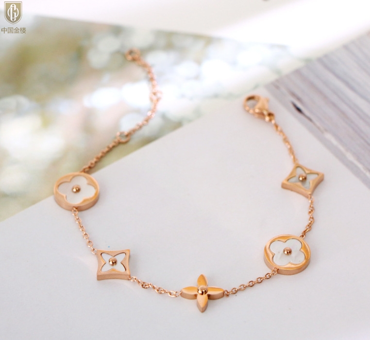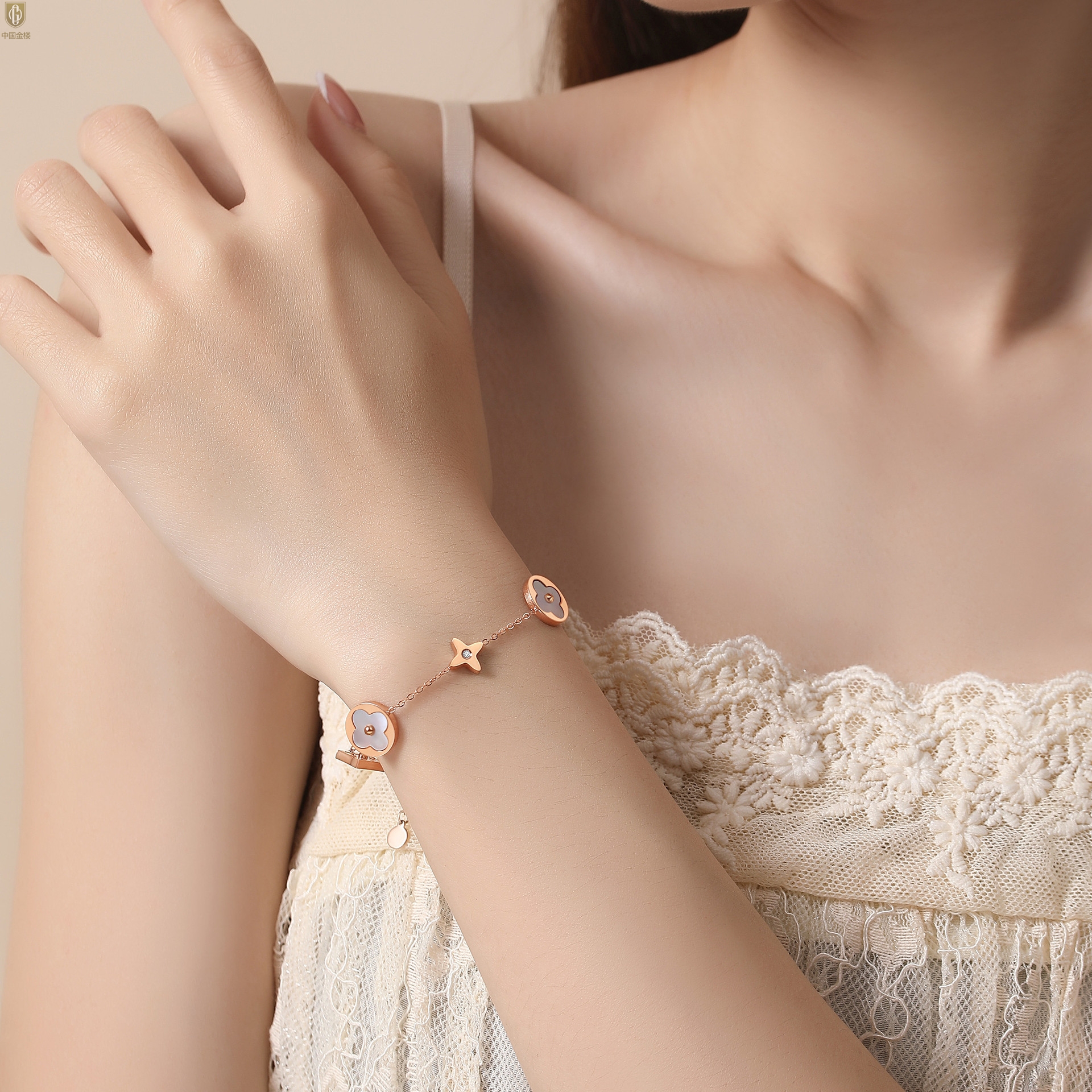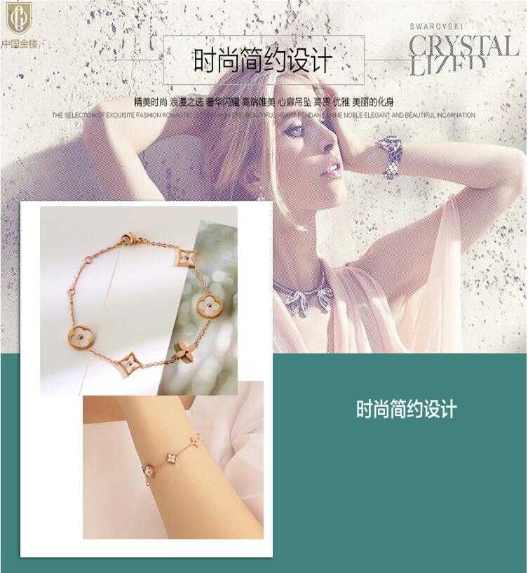【品名】中国金楼18K镶钻南非真钻四叶草全家福手链