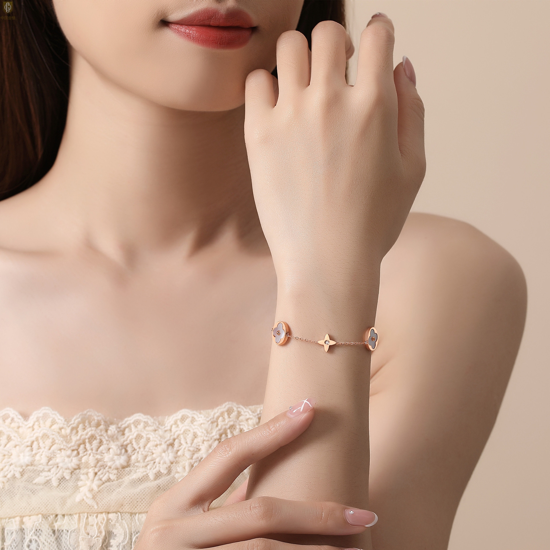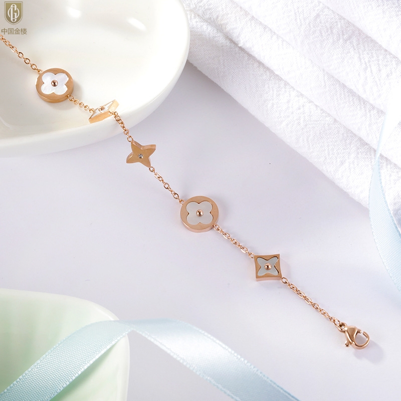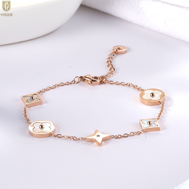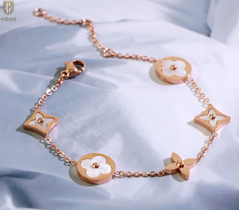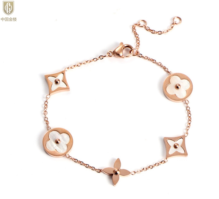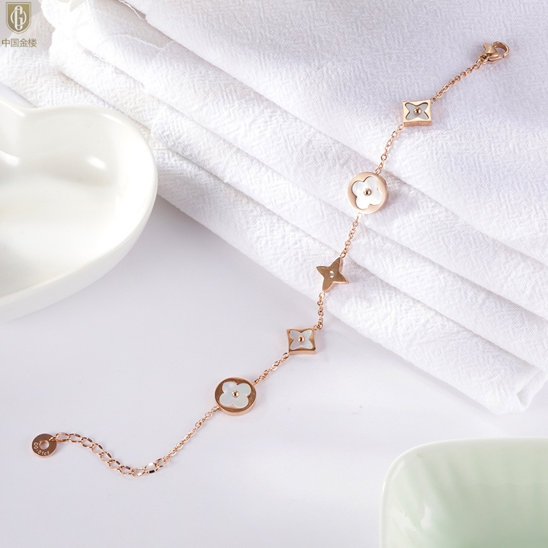 【品名】中国金楼18K镶钻南非真钻四叶草全家福手链
