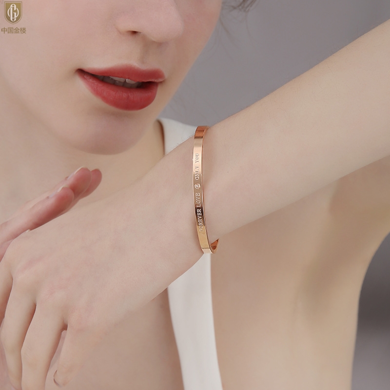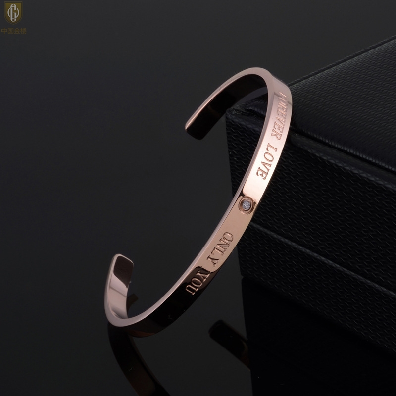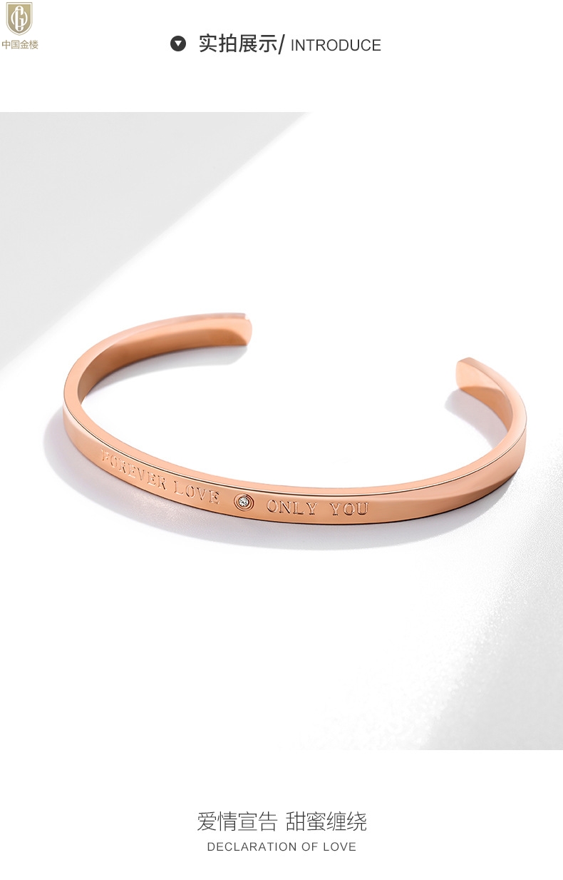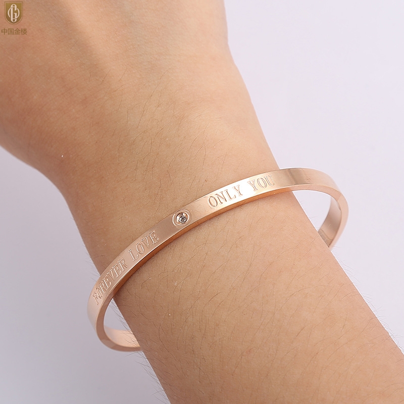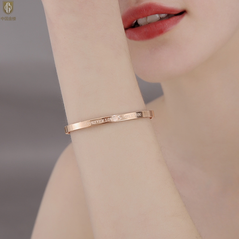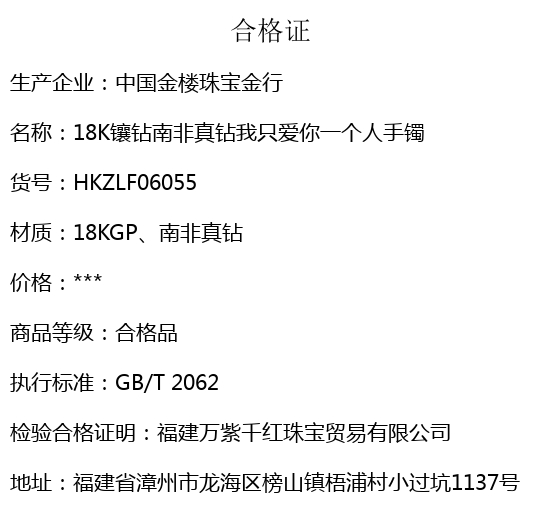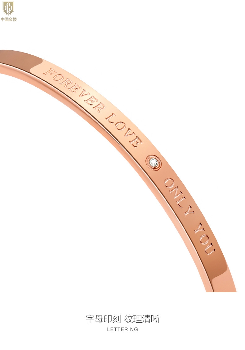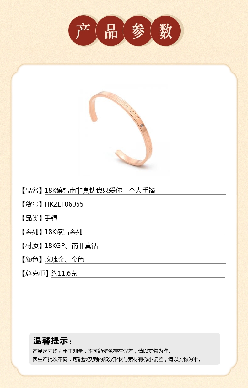 【品名】中国金楼18K镶钻南非真钻我只爱你一个人手镯
