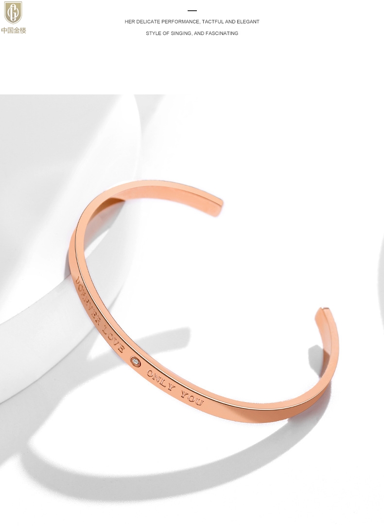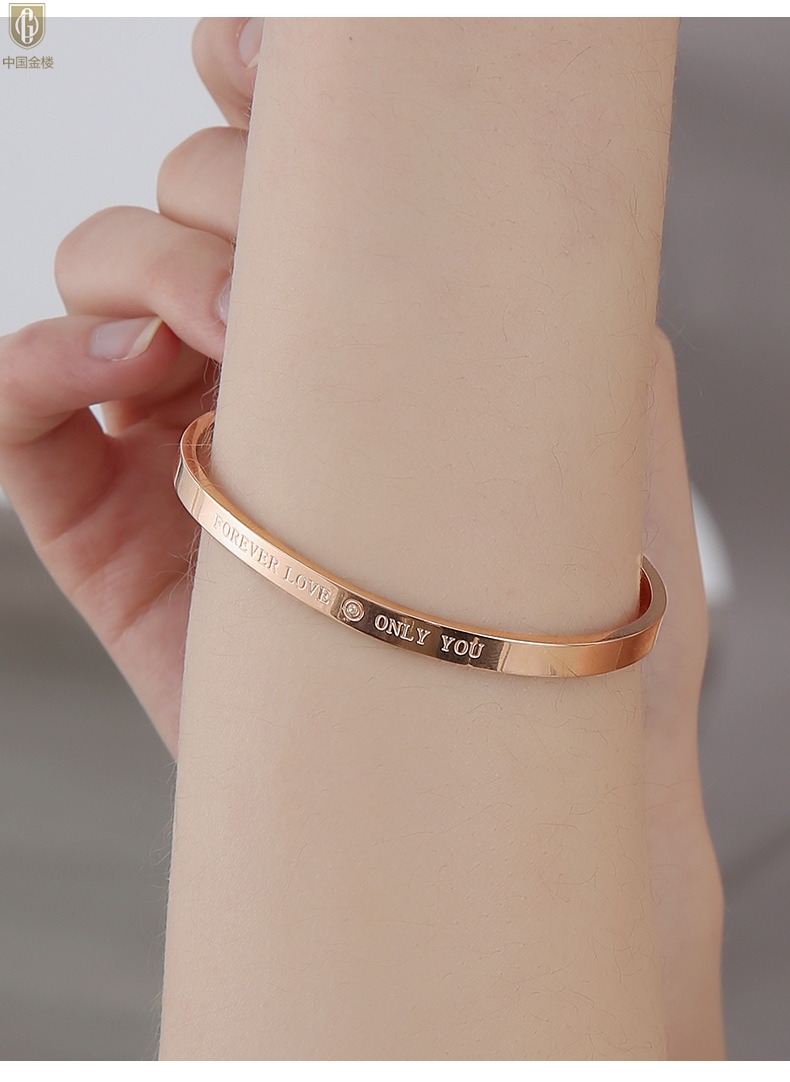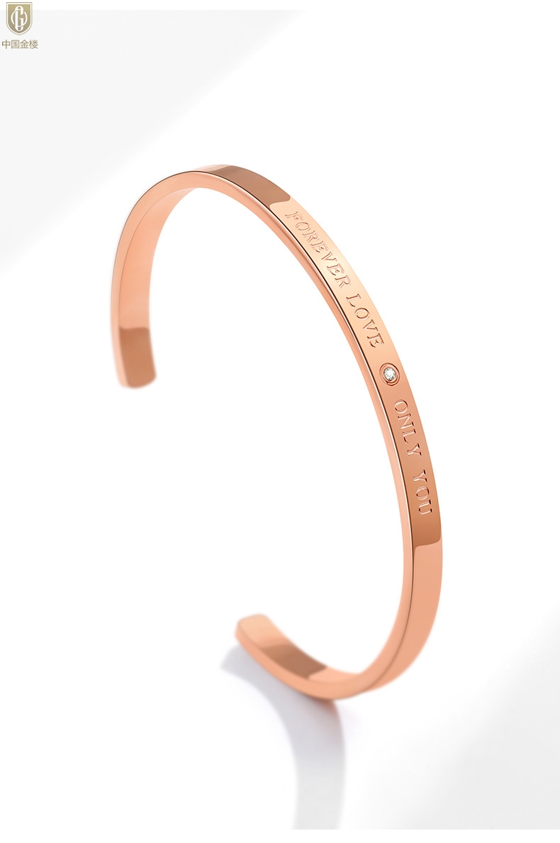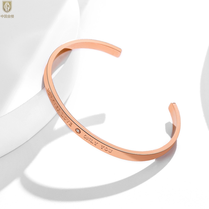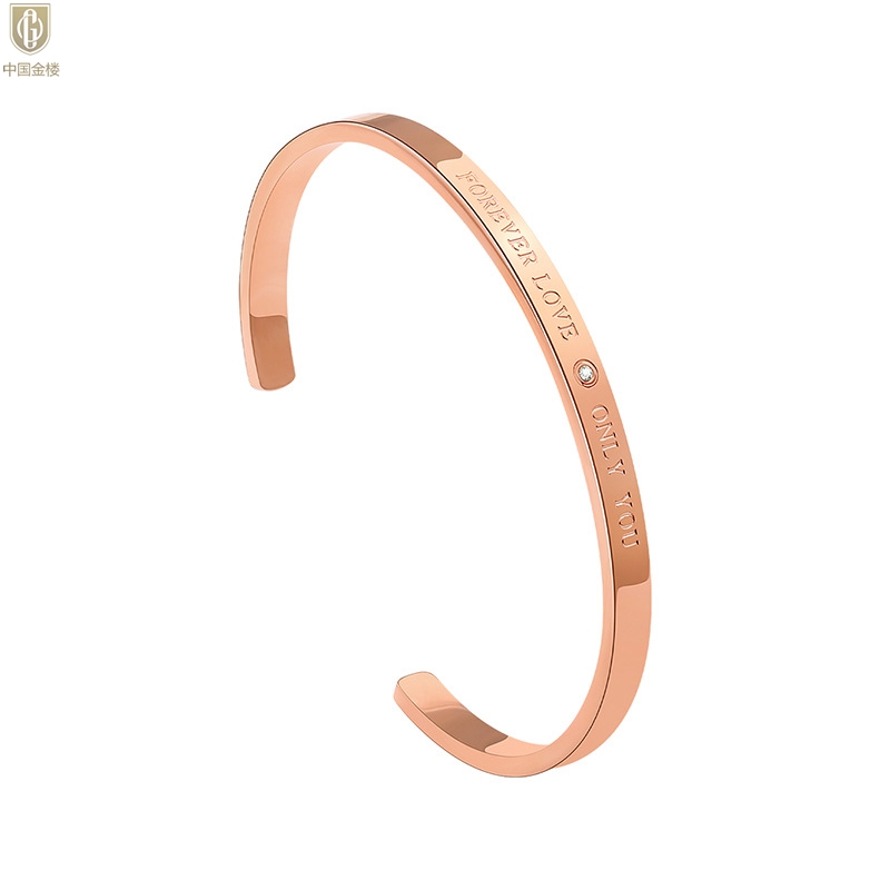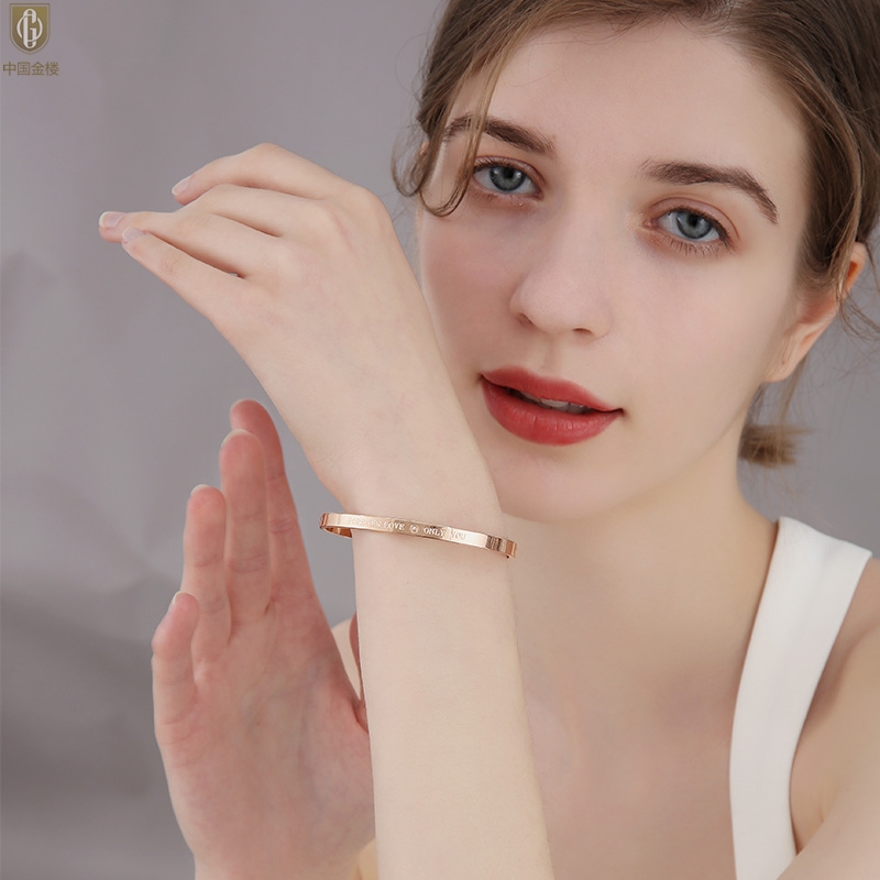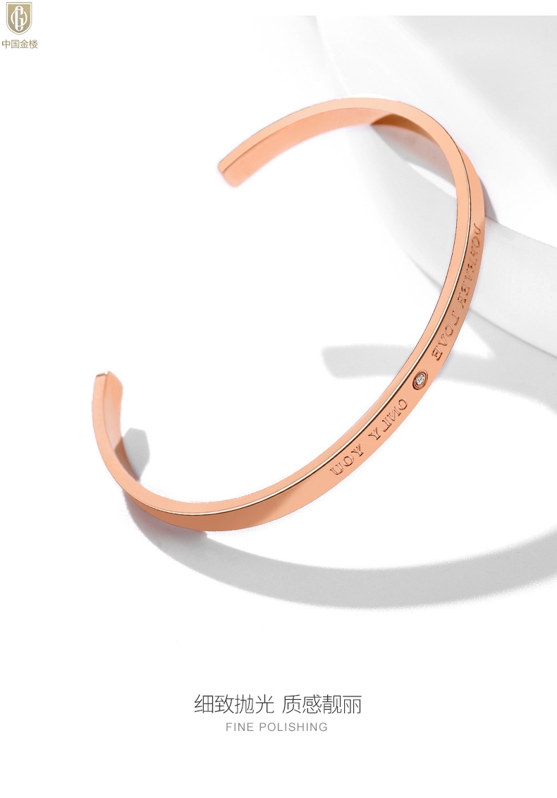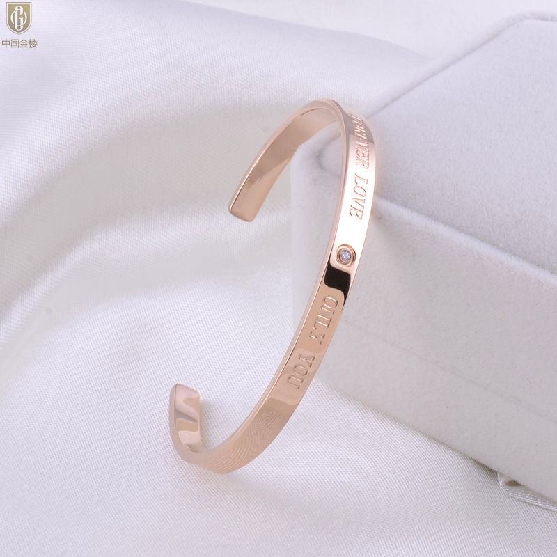 【品名】中国金楼18K镶钻南非真钻我只爱你一个人手镯