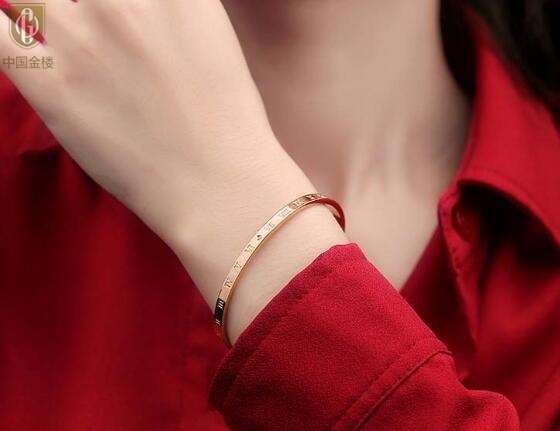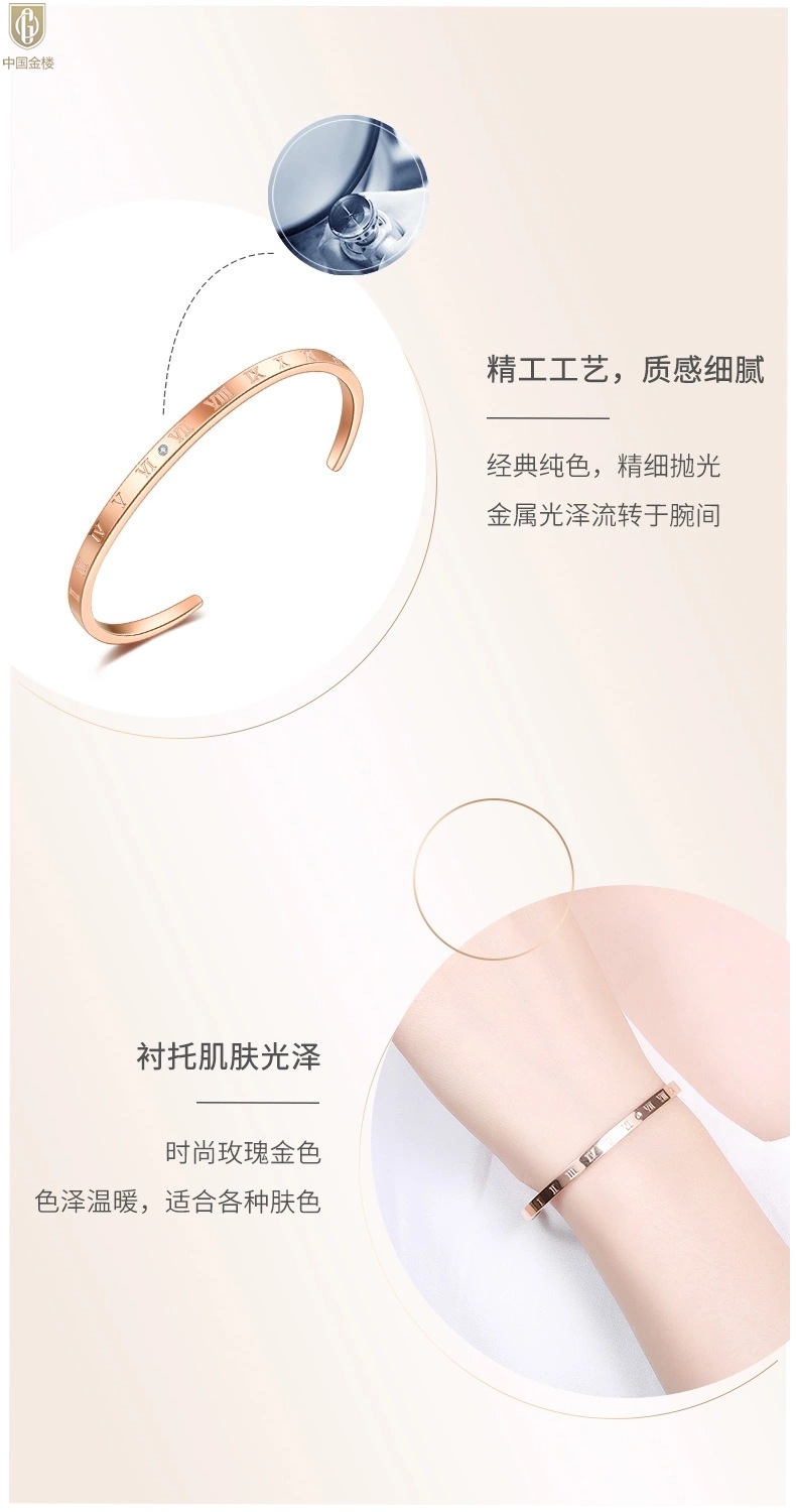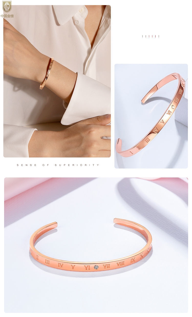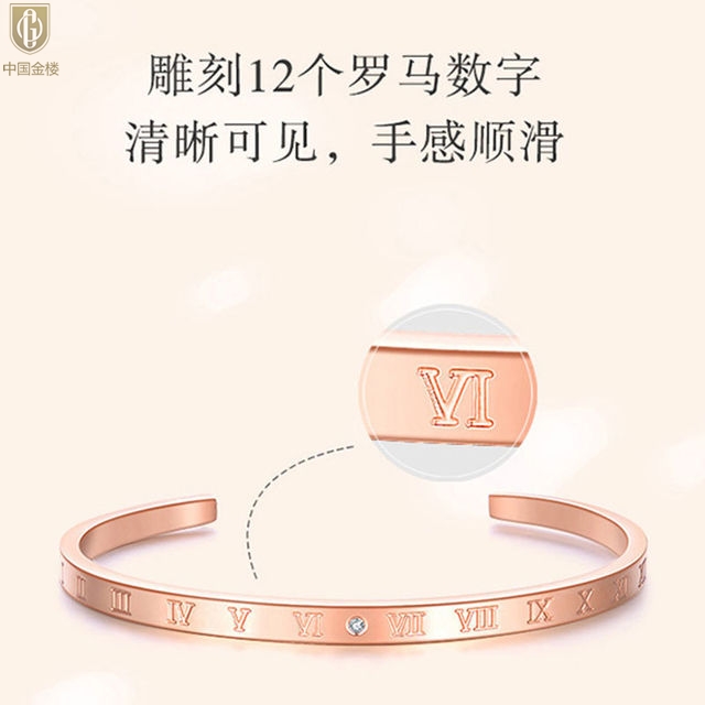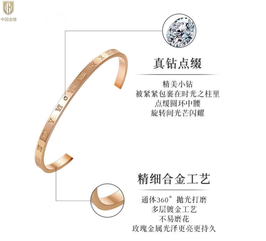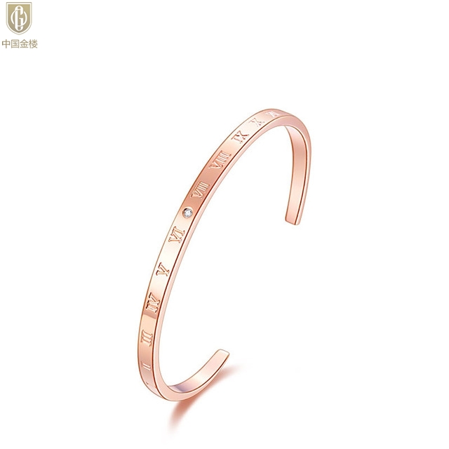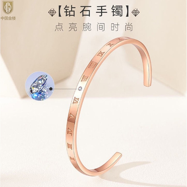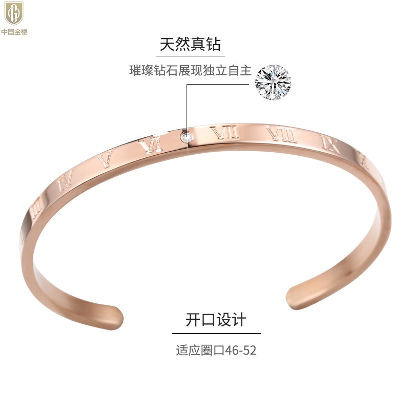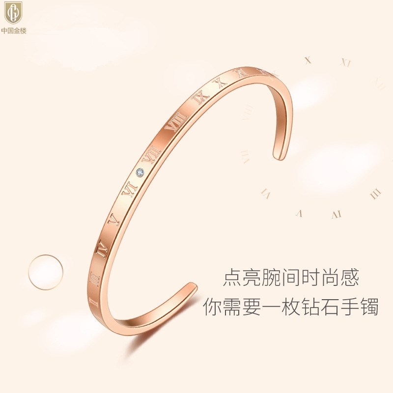 【品名】中国金楼18K镶钻南非真钻罗马手镯
