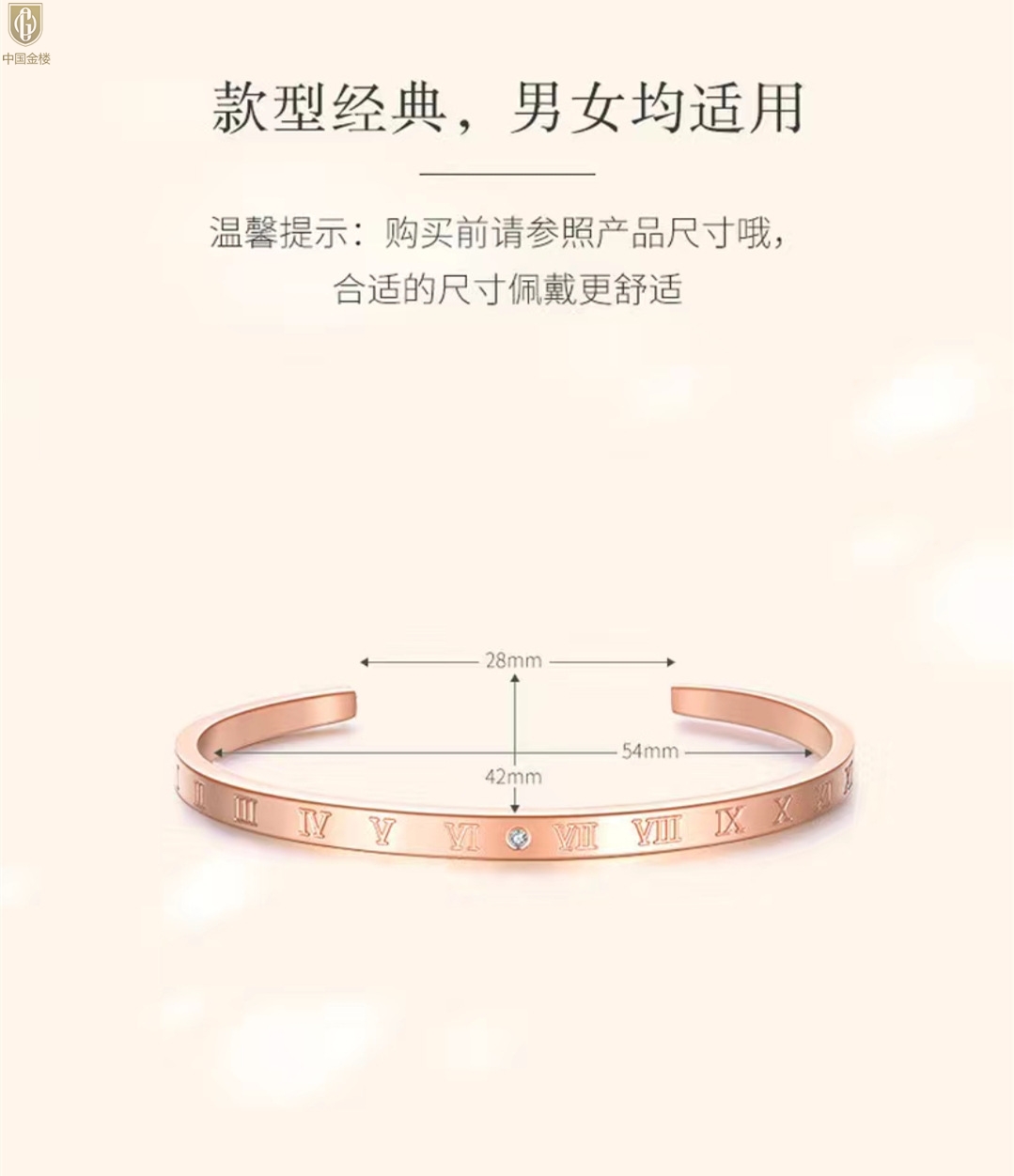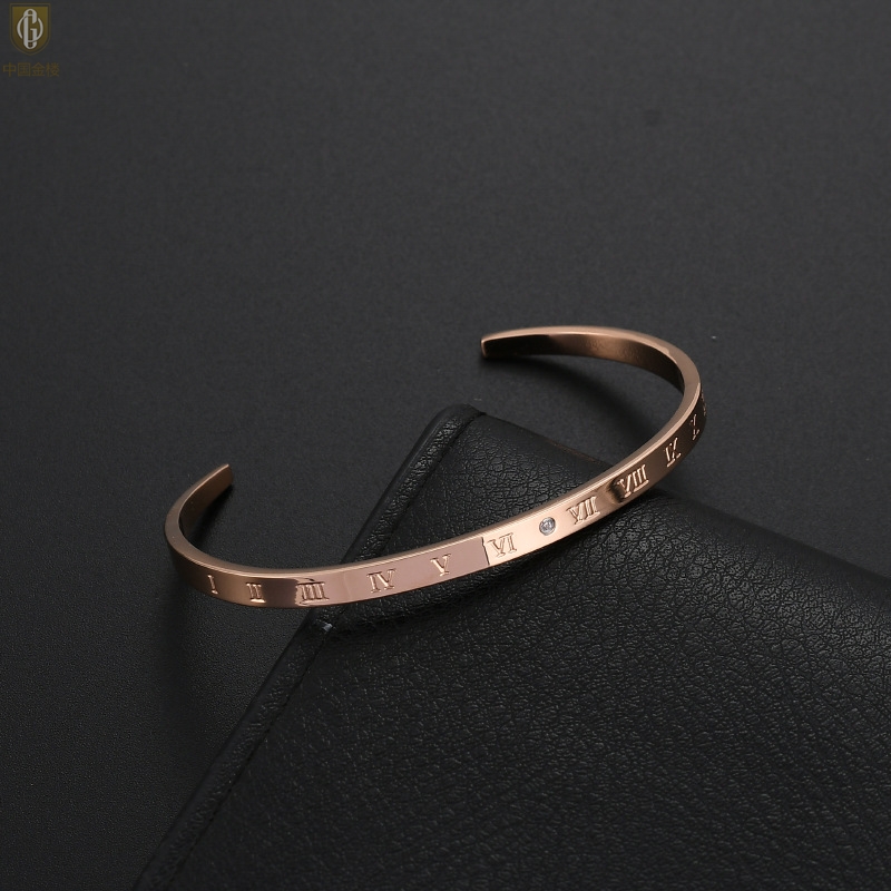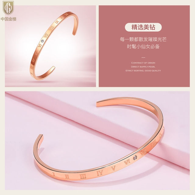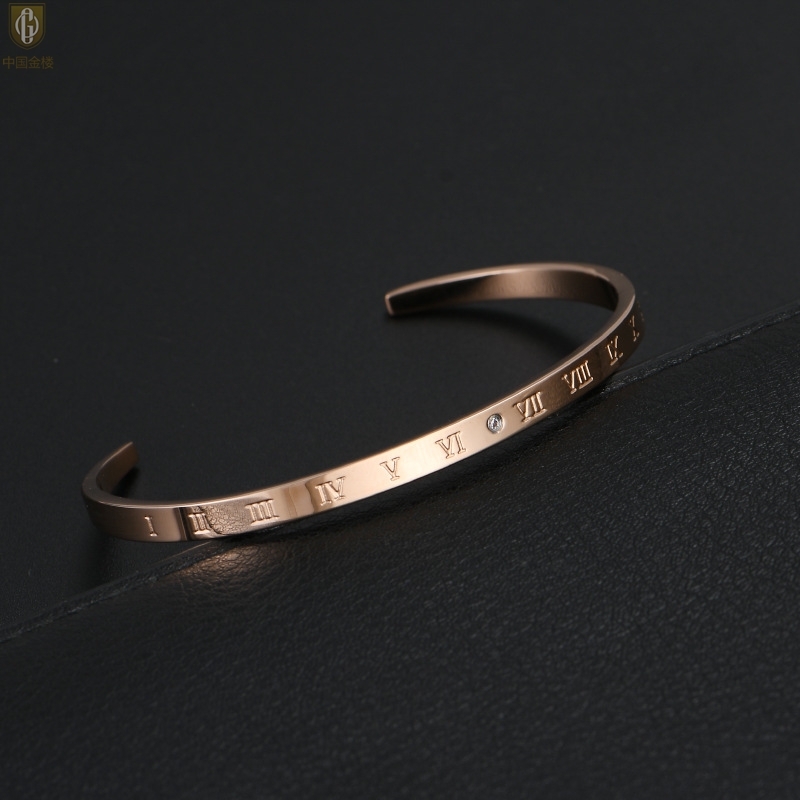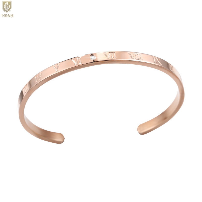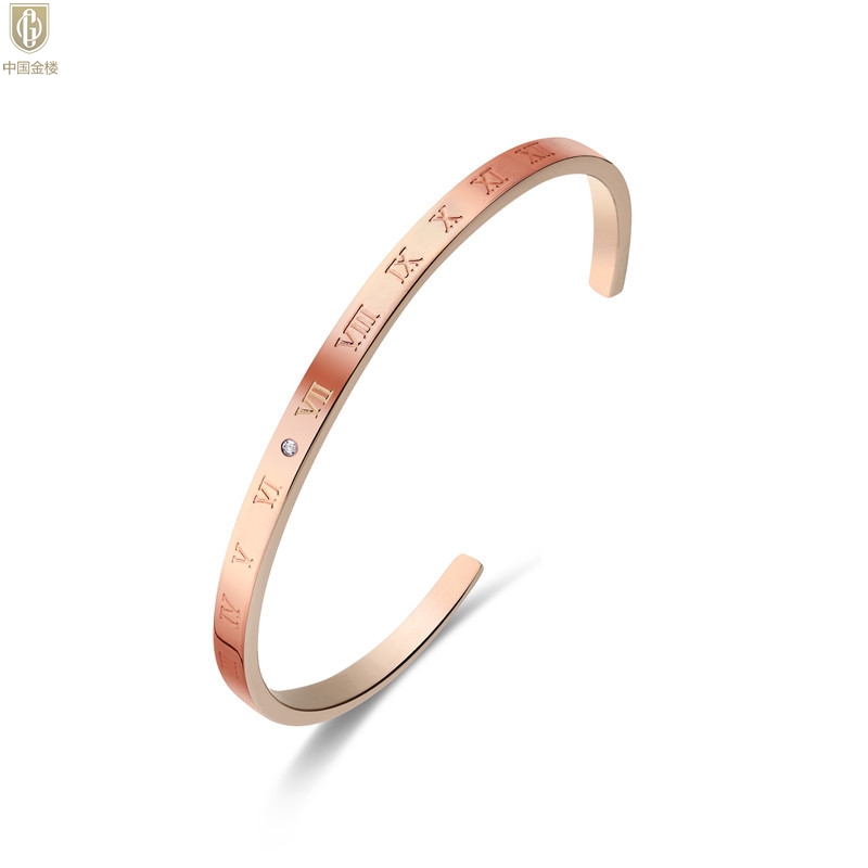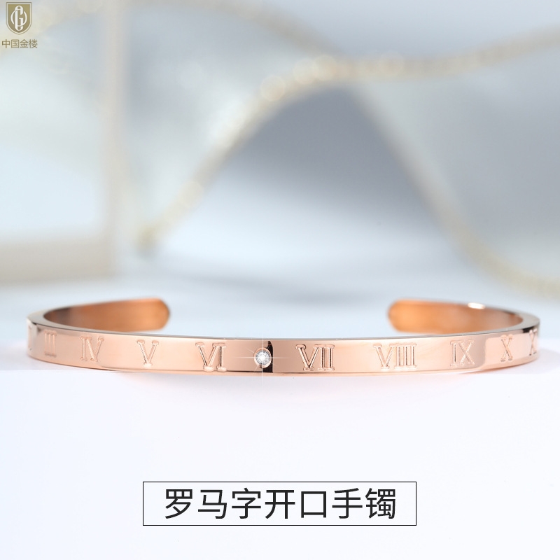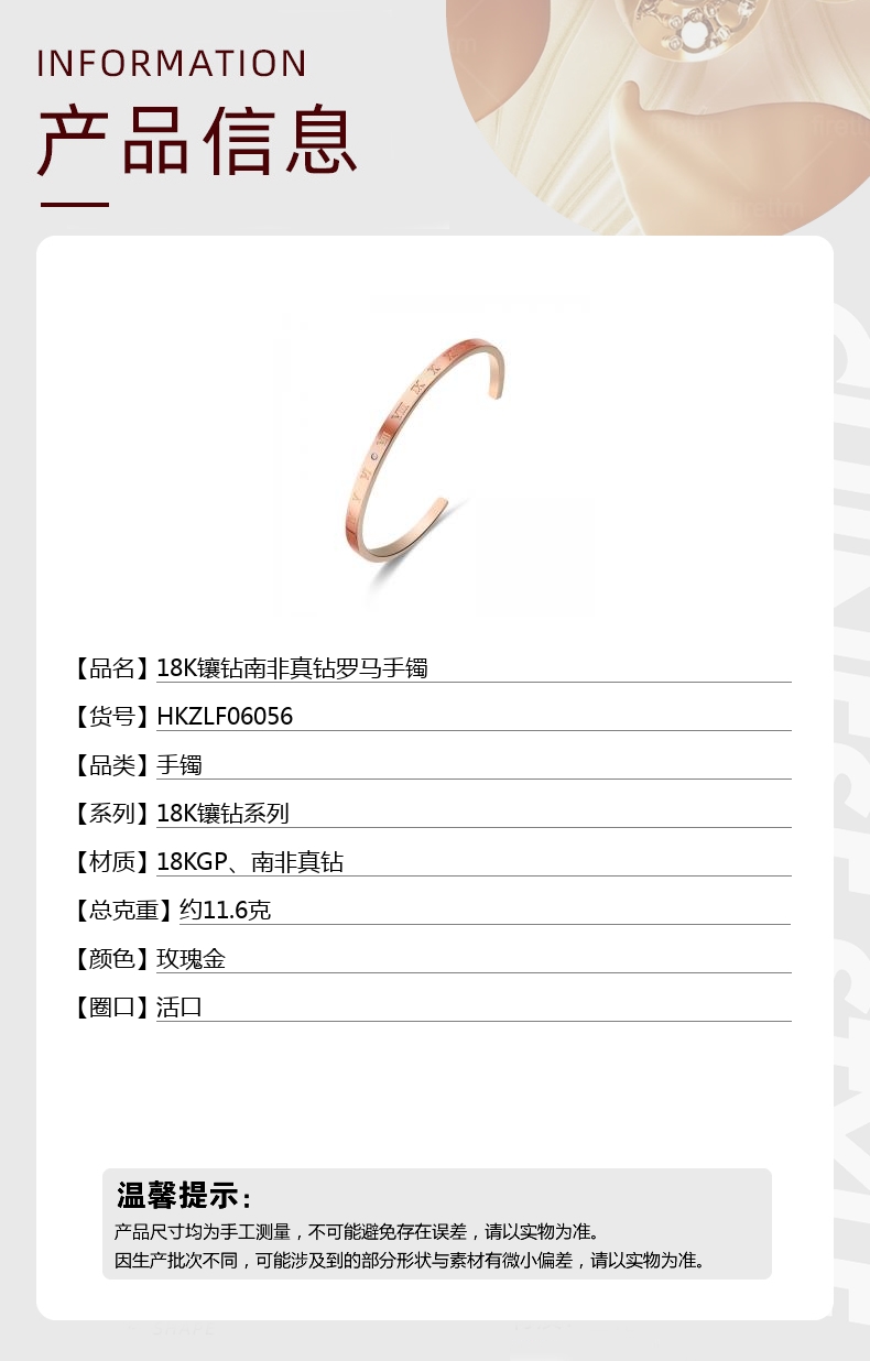【品名】中国金楼18K镶钻南非真钻罗马手镯