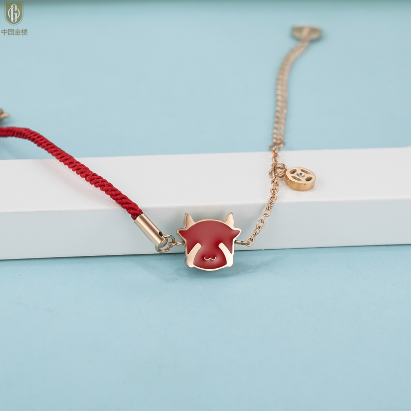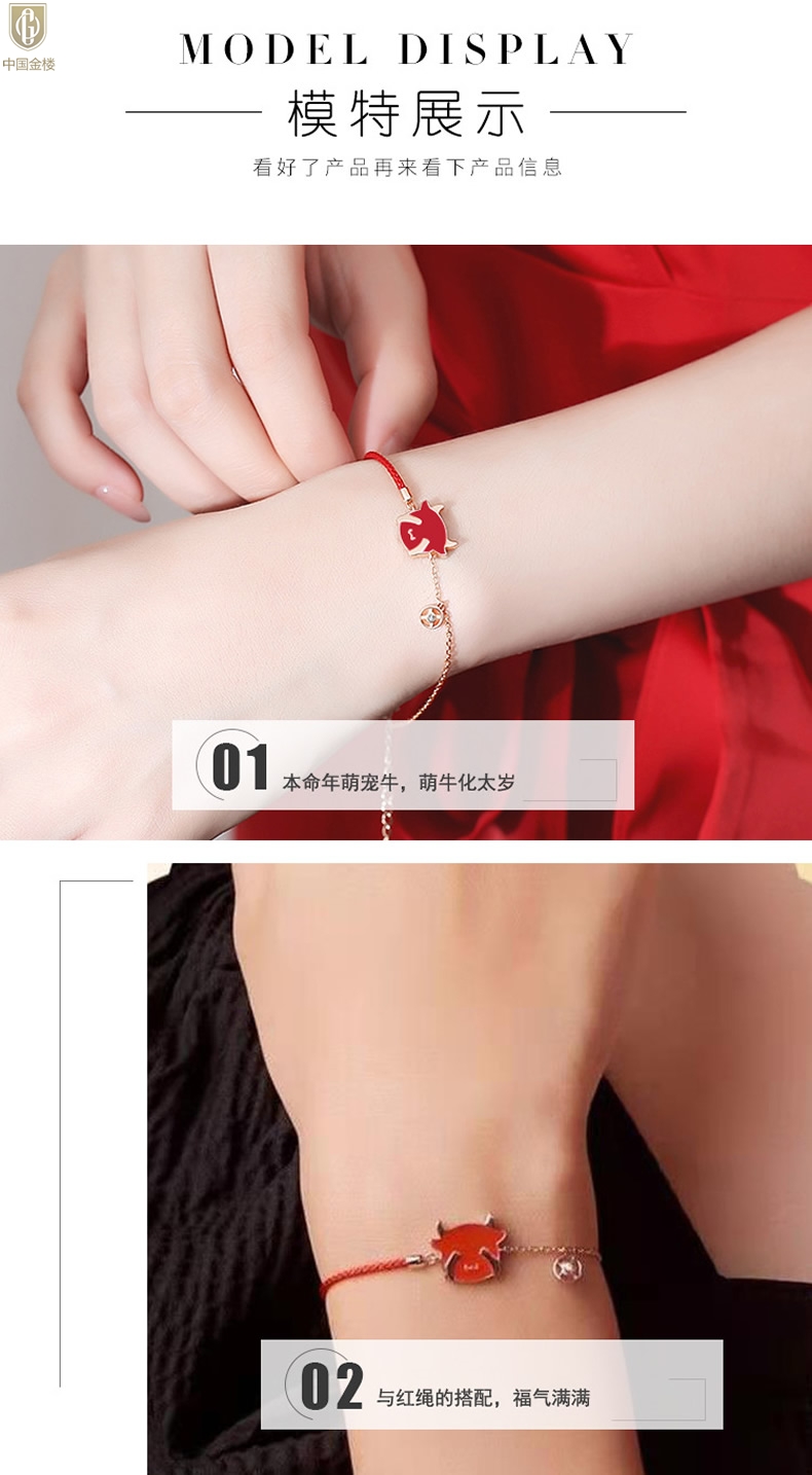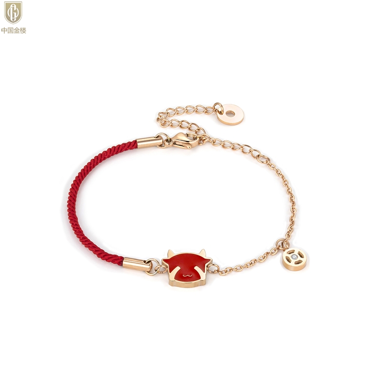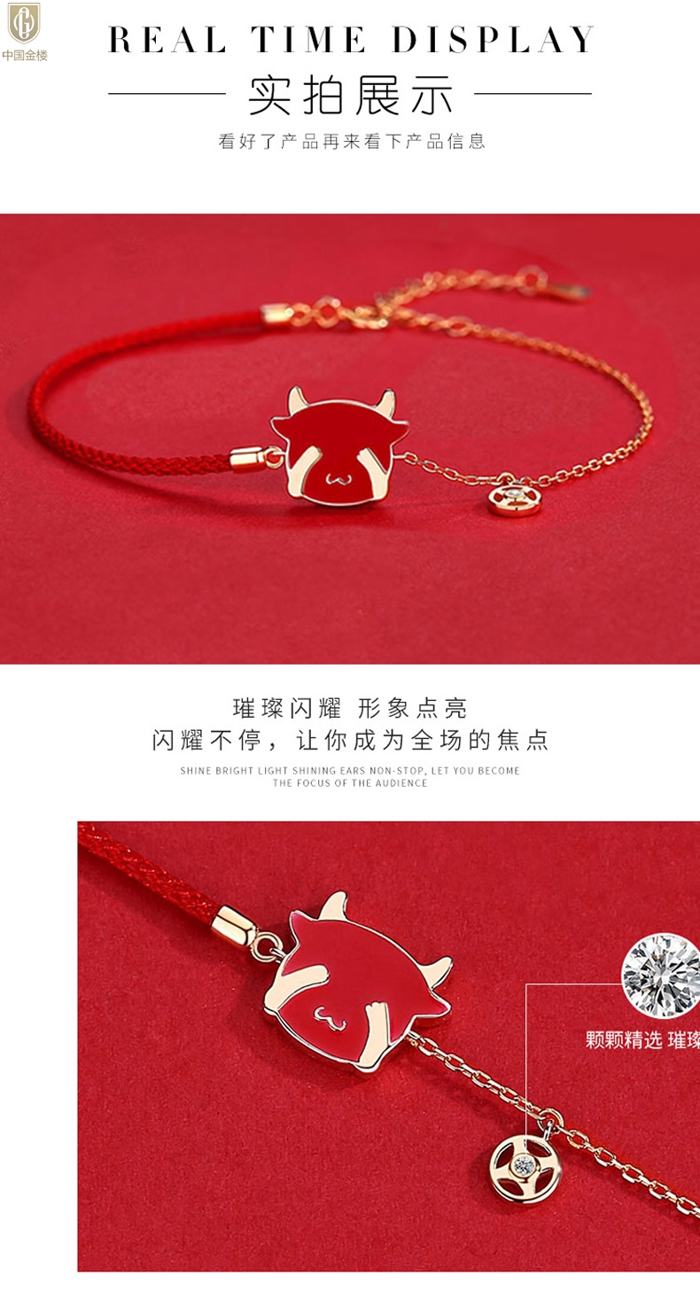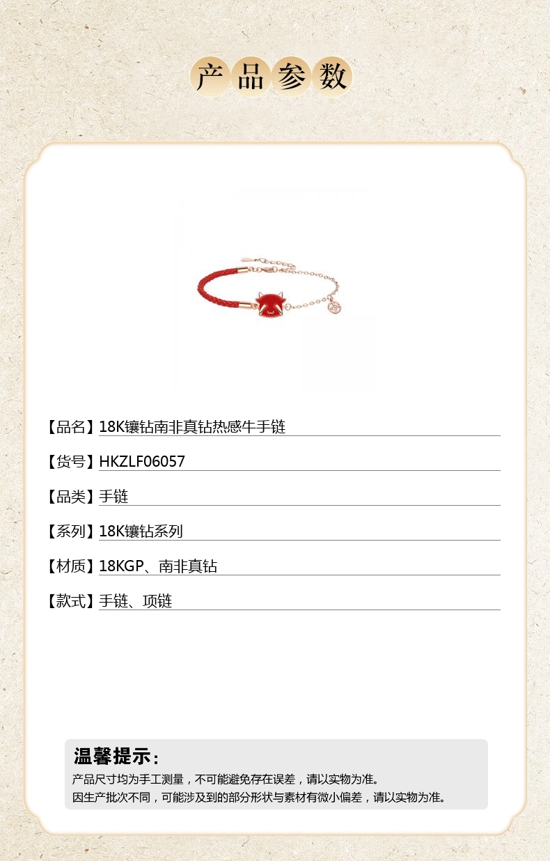 【品名】中国金楼18K镶钻南非真钻热感牛手链