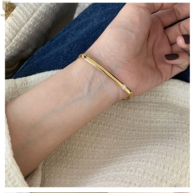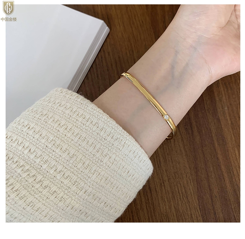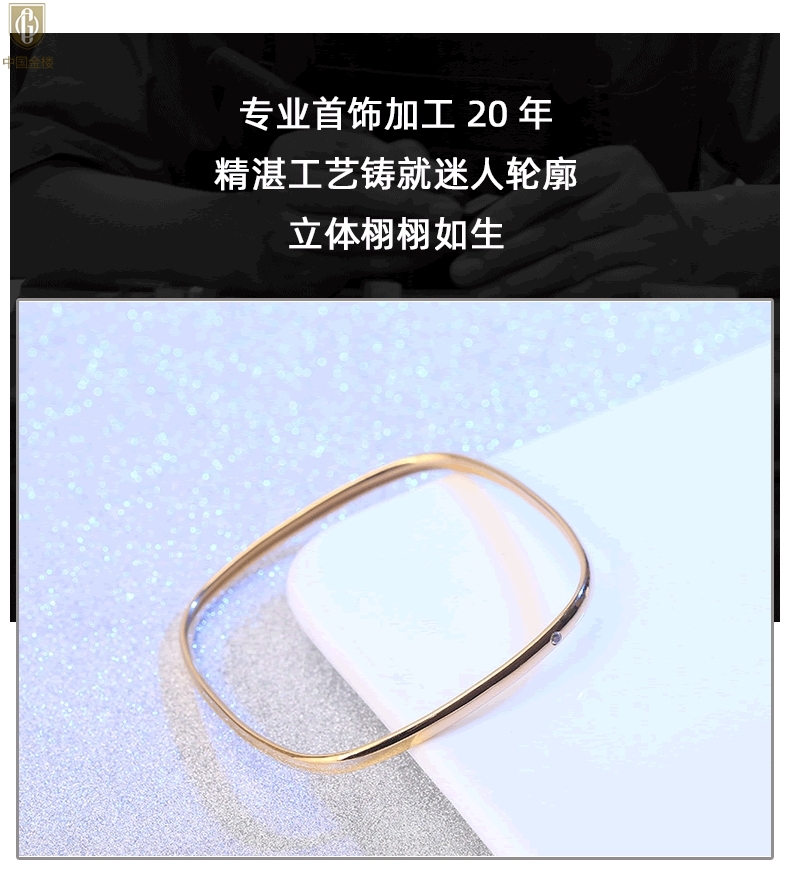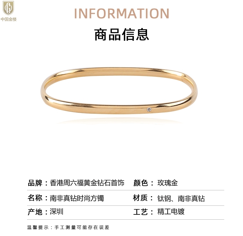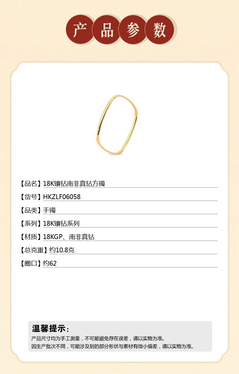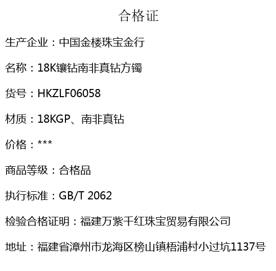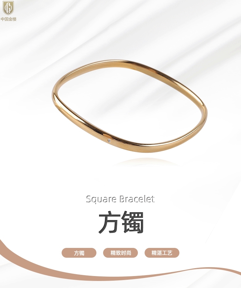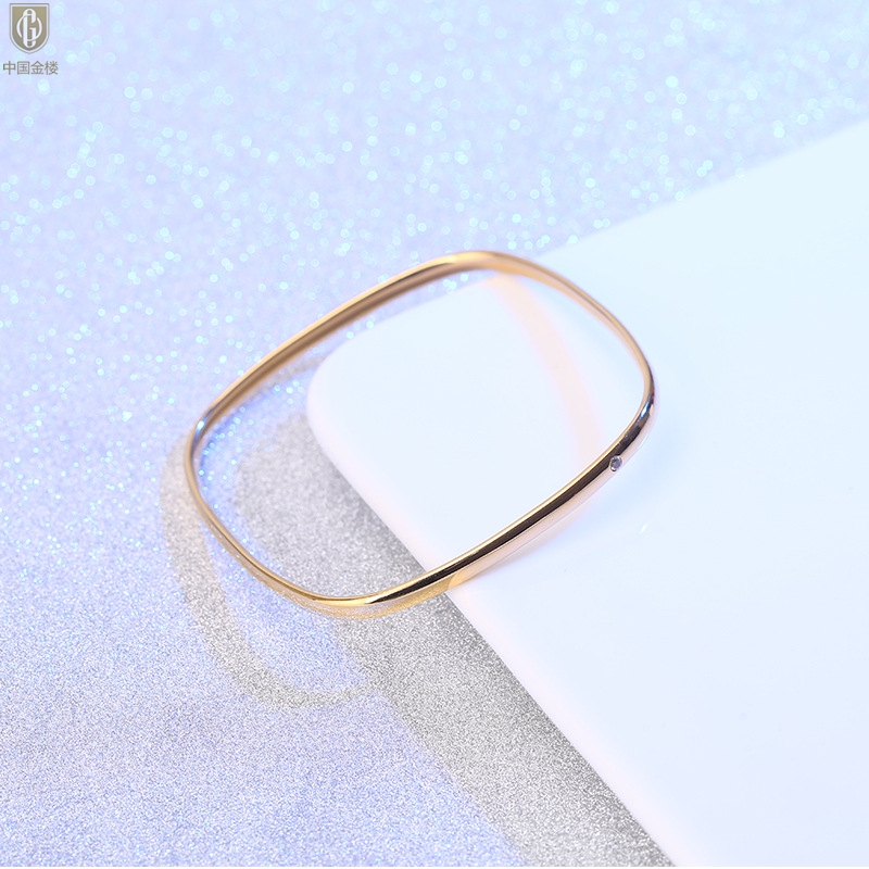 【品名】中国金楼18K镶钻南非真钻方镯