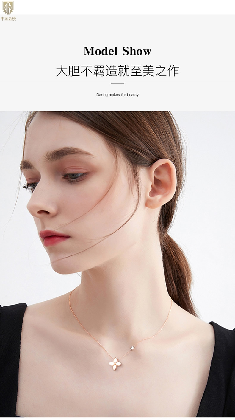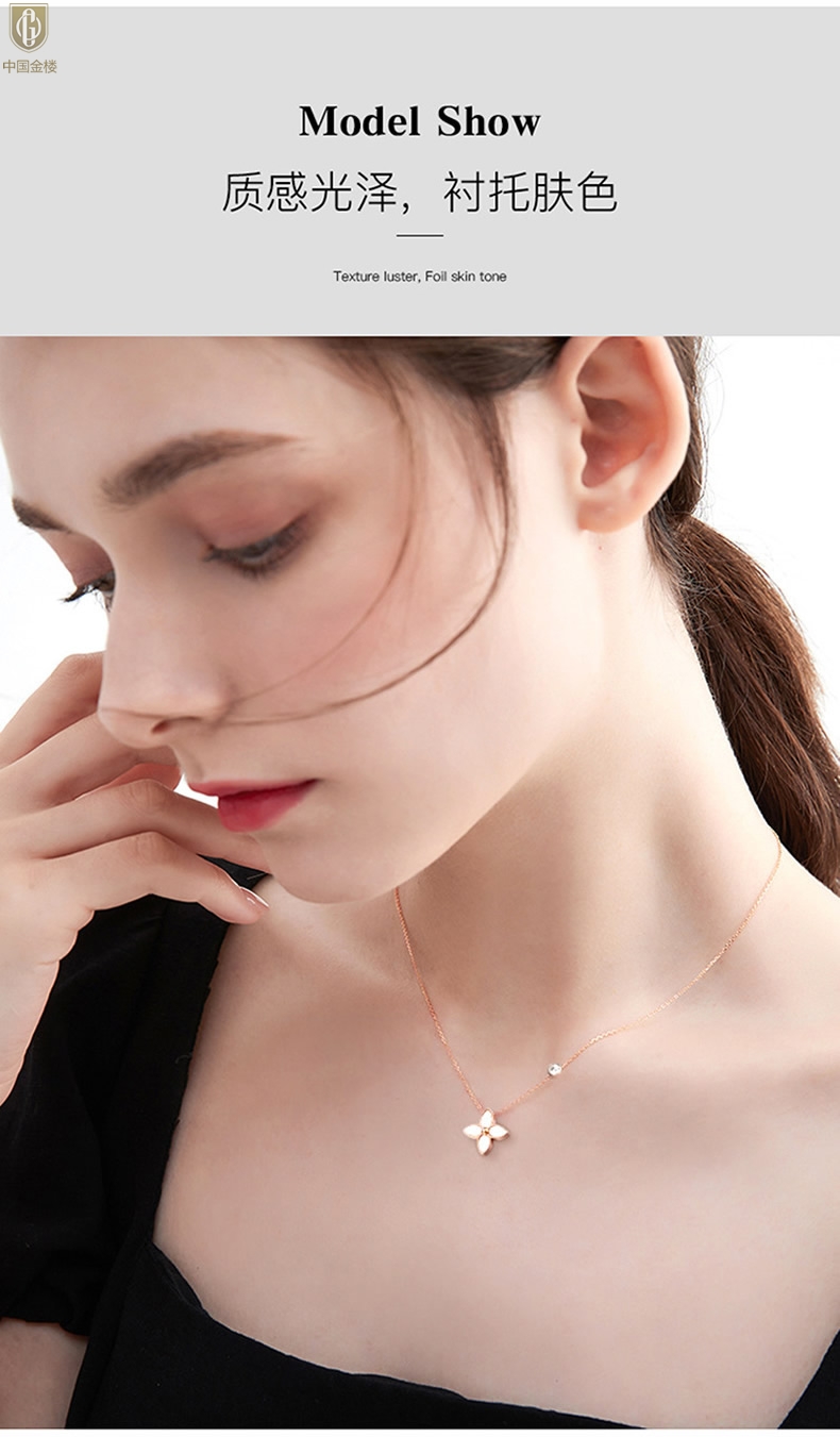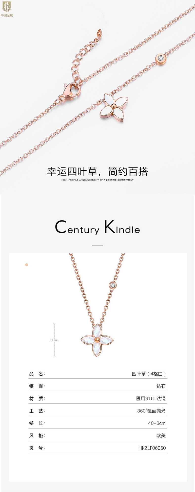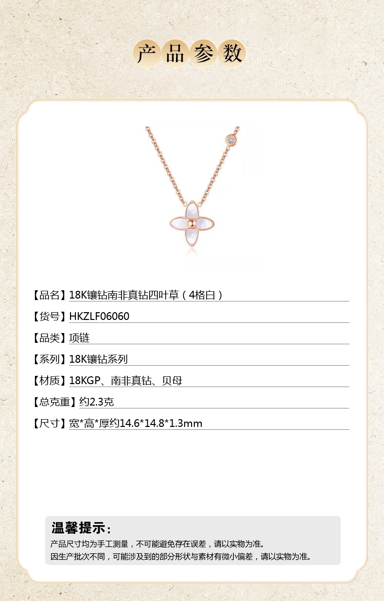 【品名】中国金楼18K镶钻南非真钻四叶草(4格白)