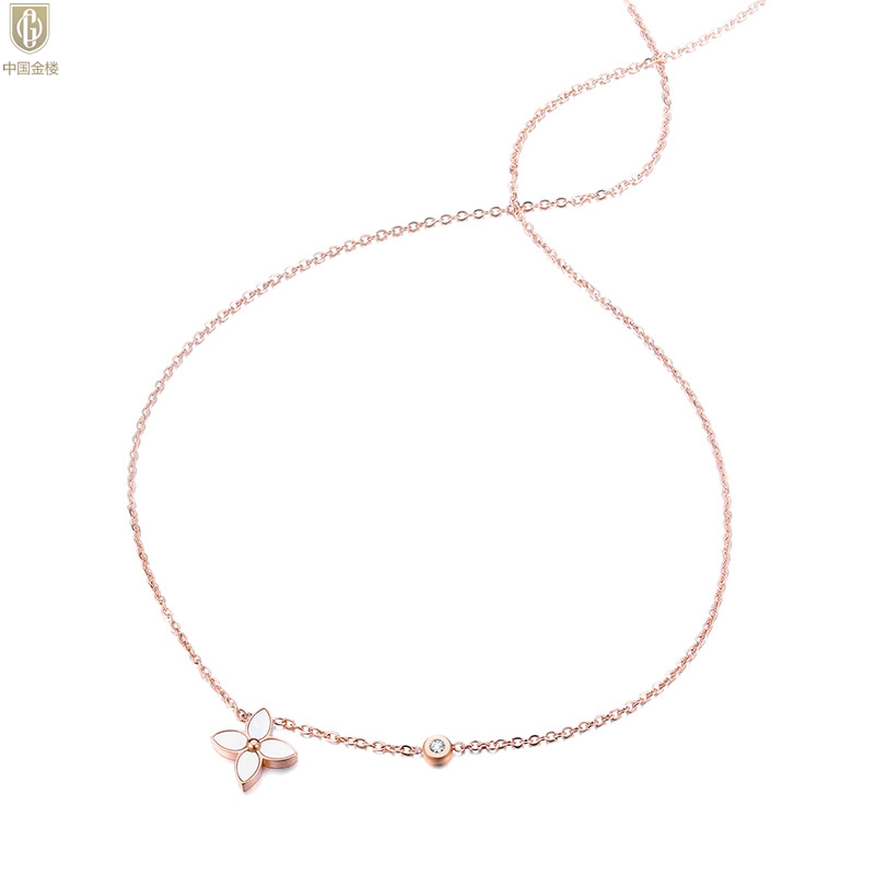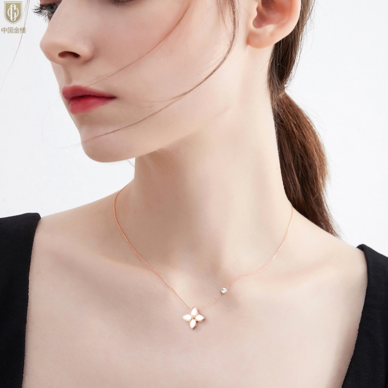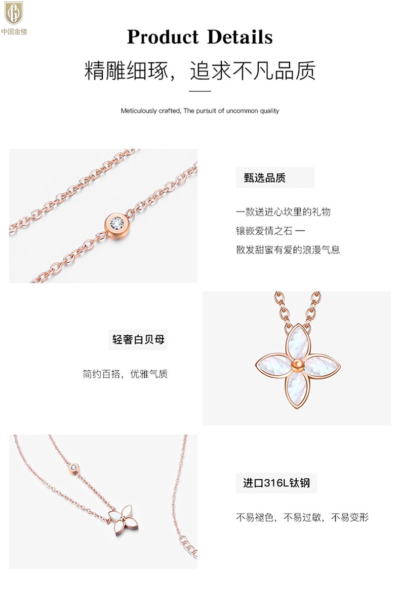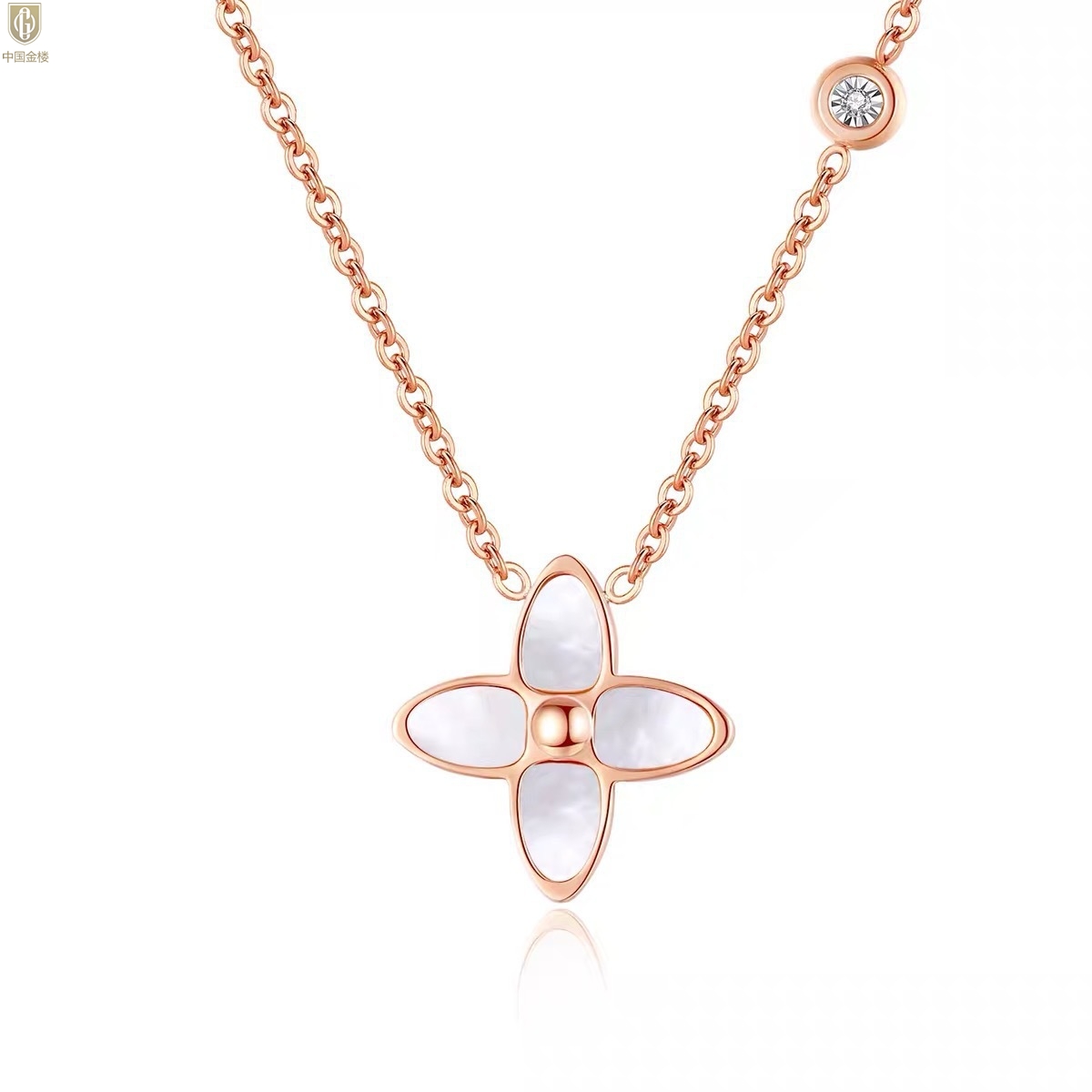 【品名】中国金楼18K镶钻南非真钻四叶草(4格白)