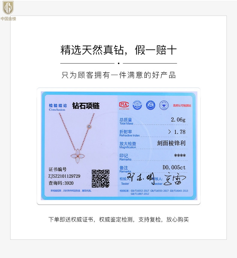【套装包含】首饰+礼品盒+礼品袋+国检证书+质保单+价签