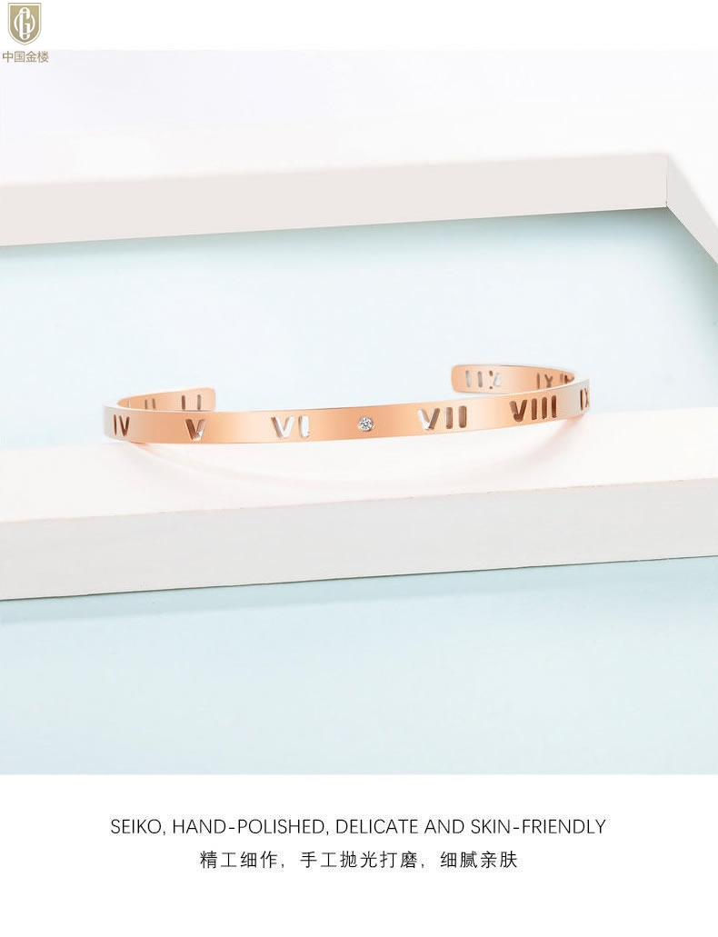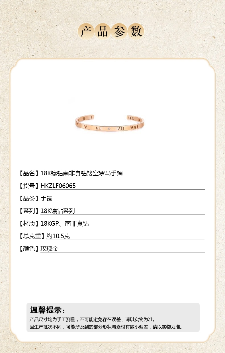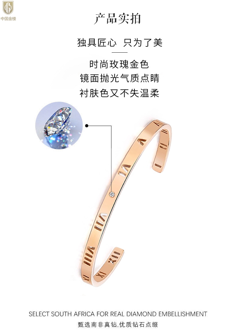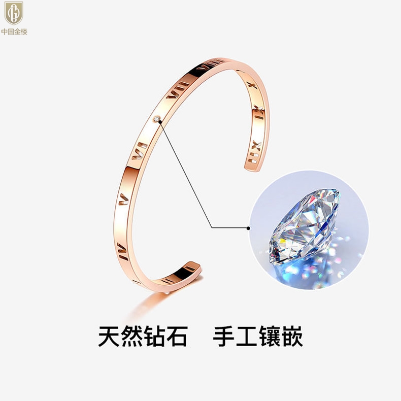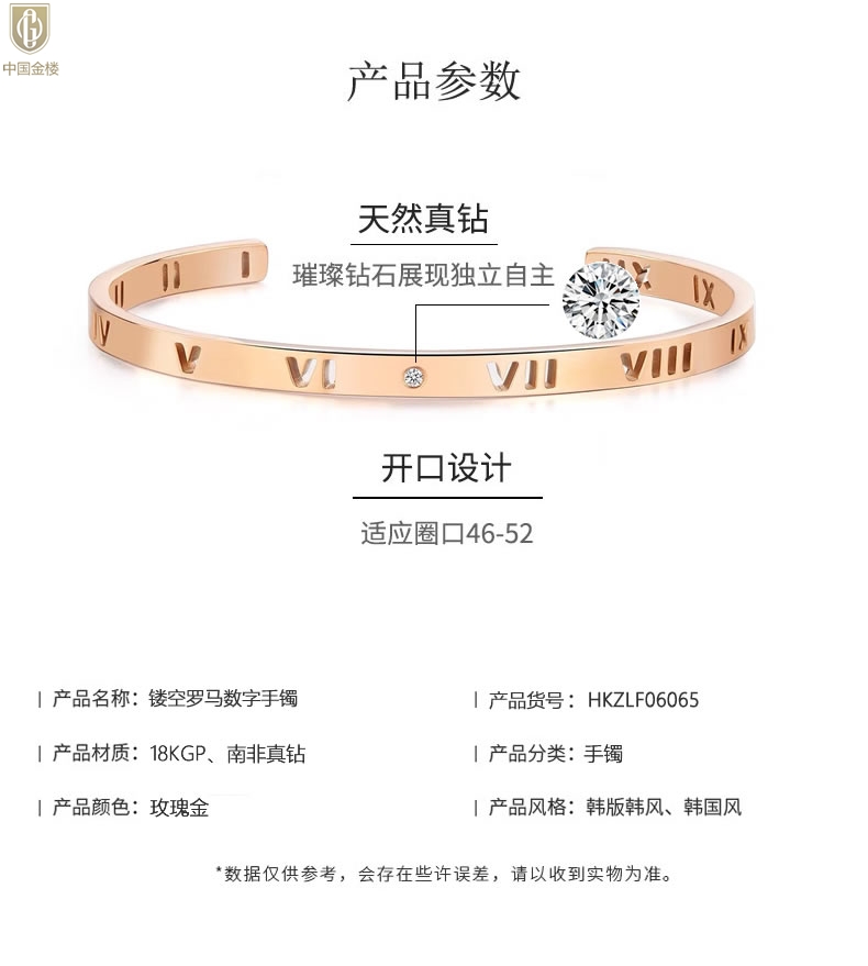 【品名】中国金楼18K镶钻南非真钻镂空罗马手镯